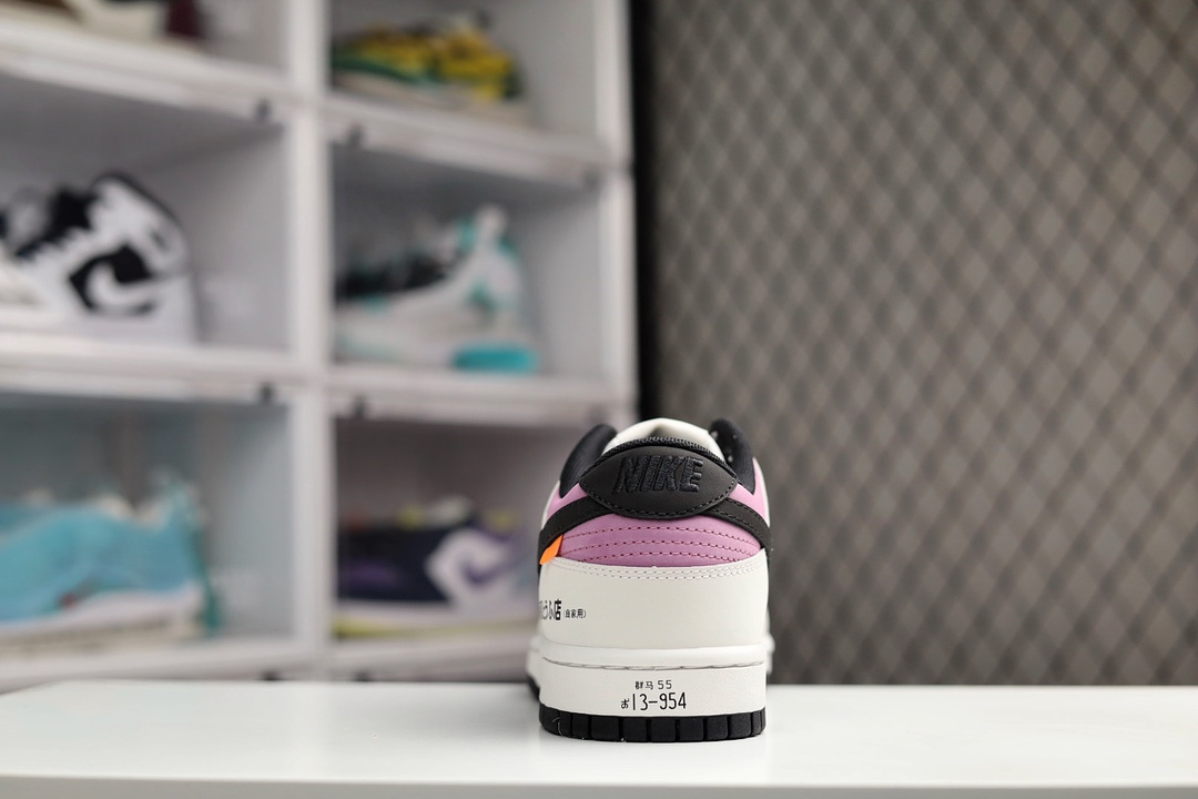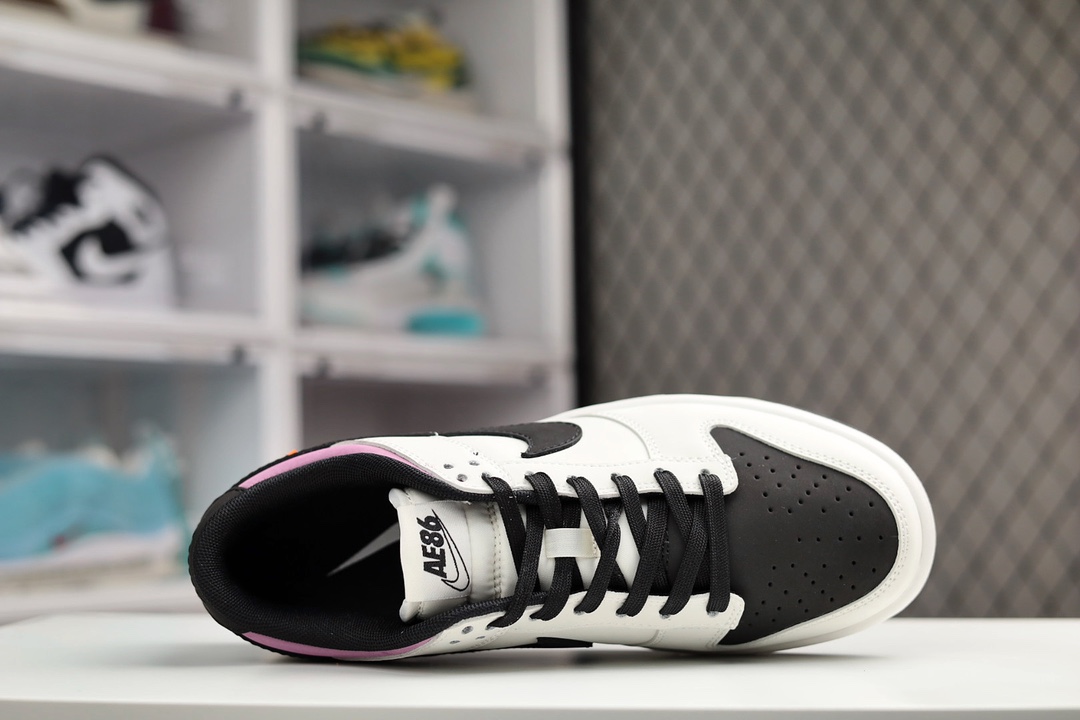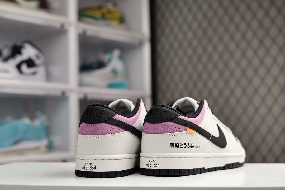 H5 NIKE DUNK SB “AE 86” 头文字D配色方面还原了「熊猫」 AE86 的黑白双拼设计,不过磨砂皮面的质感看起来似乎是更加偏向灰色。最经典「藤原とうふ店」字样在后跟侧面得到忠实还原,后跟处中底上还印有「群马 55 13-954」的车牌号。鞋侧 Swoosh Logo 末端的橙色标签则呼应车尾灯,丰富的动画元素细节让整双鞋极具辨识度