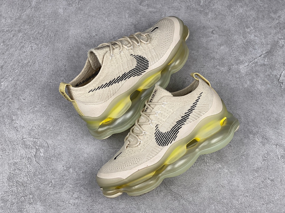 I0 男女鞋真标半码制原楦原纸版数据开发采用全新多种Flyknit织法编织鞋面材质TPU托盘支撑中板搭载全掌巨型Air Max球状透明缓震气垫外置橡胶外底最狂野气垫来袭,打造新世代大气垫全新耐克Nike Air Max Scorpion Flyknit”Phantom/Black/Light Cream”天蝎座系列2022款超级大气垫系列前卫增高低帮休闲运动慢跑鞋“针织奶白黑钩子”