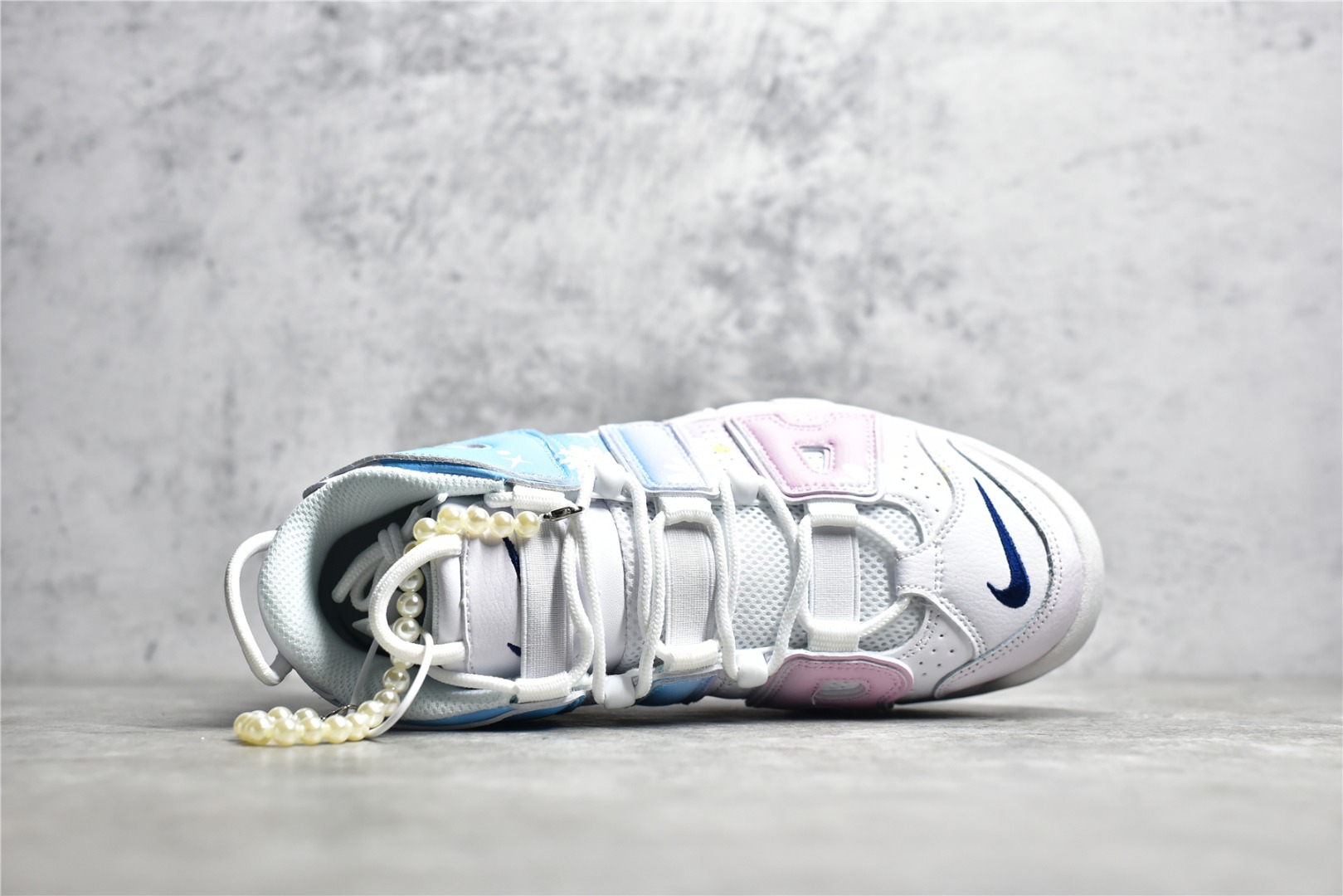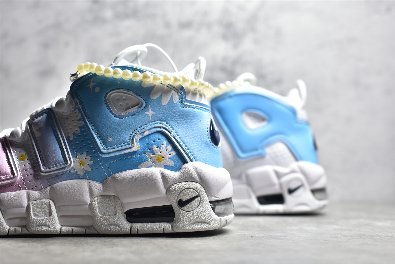 I0 纯原版本 Nike Air More Uptempo GS 520主题 渐变小雏菊高帮复古篮球鞋女款 蓝粉