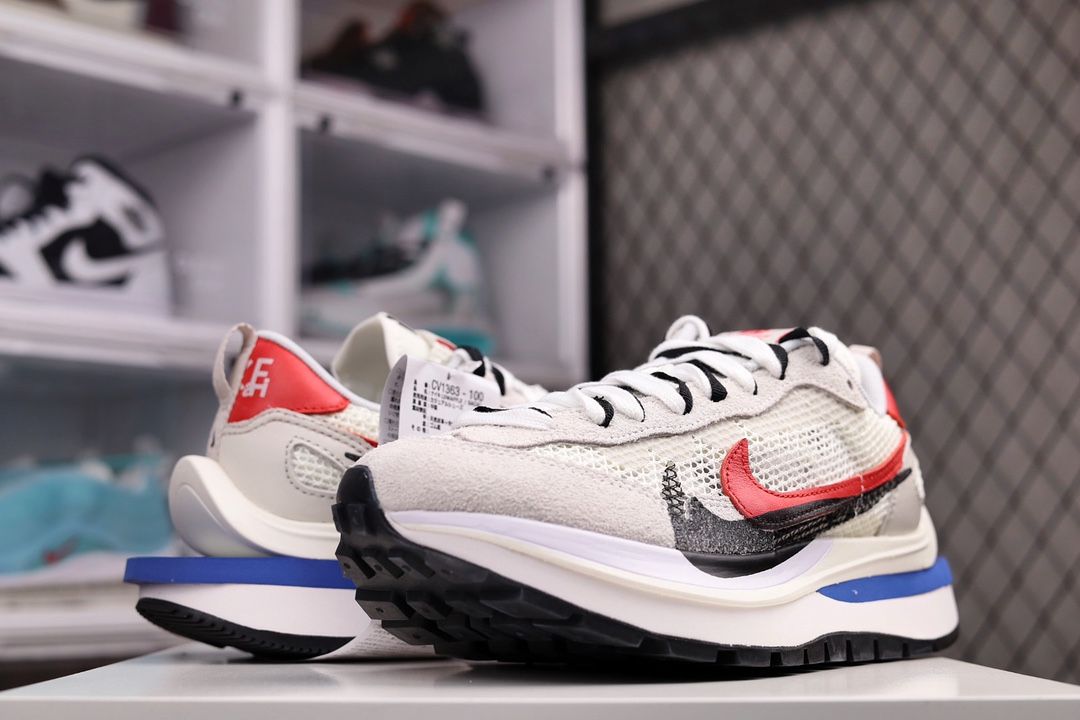 J0 独家订单 全新升级版本 原厂裸鞋级别 硬核顶流Sacai x NK VaporWaffle 3.0 白红华夫三代潮流走秀 超级联名网红款纯正灵魂版型 原厂材料 原厂工艺原厂飞织网纱 进口贝利甩纹牛皮 鞋身采用香州长绒反毛皮 色卡一致双鞋舌东莞百宏织麦舌标 正确中底独特解构四重MD+RB组合原装大底一切遵循公司货最高工艺完美打造 货号:CV1363- F5 E尺码:36-46