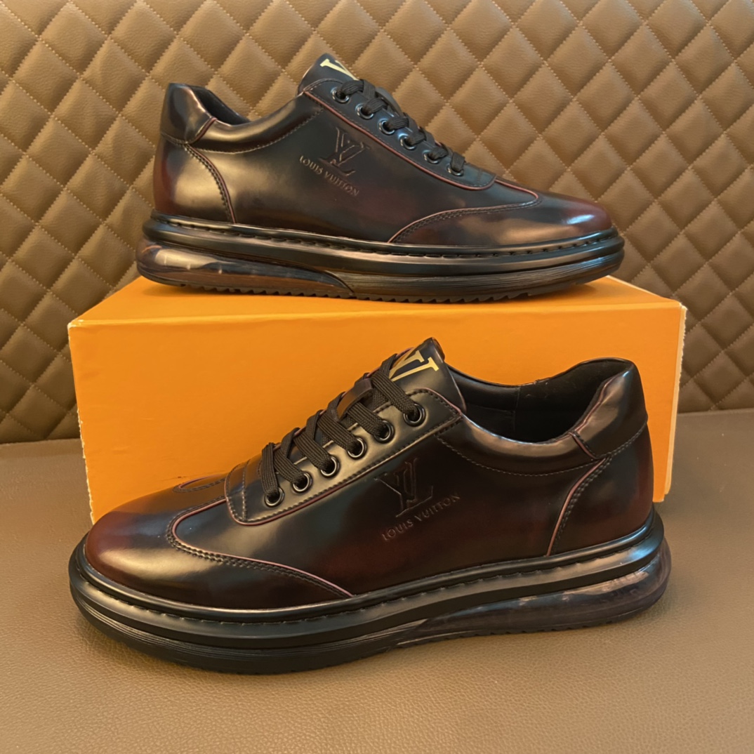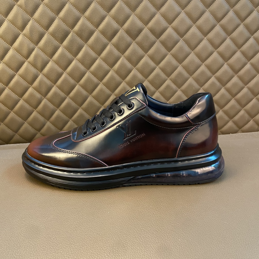 J0 LOUlS VUlTTON路易威登~独特现风运动鞋。LV专柜代购休闲鞋商务皮鞋 正装皮鞋 男士2022专柜同步发售,意大利进口原版品牌精选头层柔软牛皮。 羊皮内里 拒绝脱色磨脚鞋底:原厂特供原版底,。法国懒人风格设计 套脚 贴原单品质 超舒服原版底 。就好像实物拍摄实物更赞 适合户外司机驾车完美 高品质板鞋,男装男鞋码数:38-44 45可定做 棕红色 黑色 选