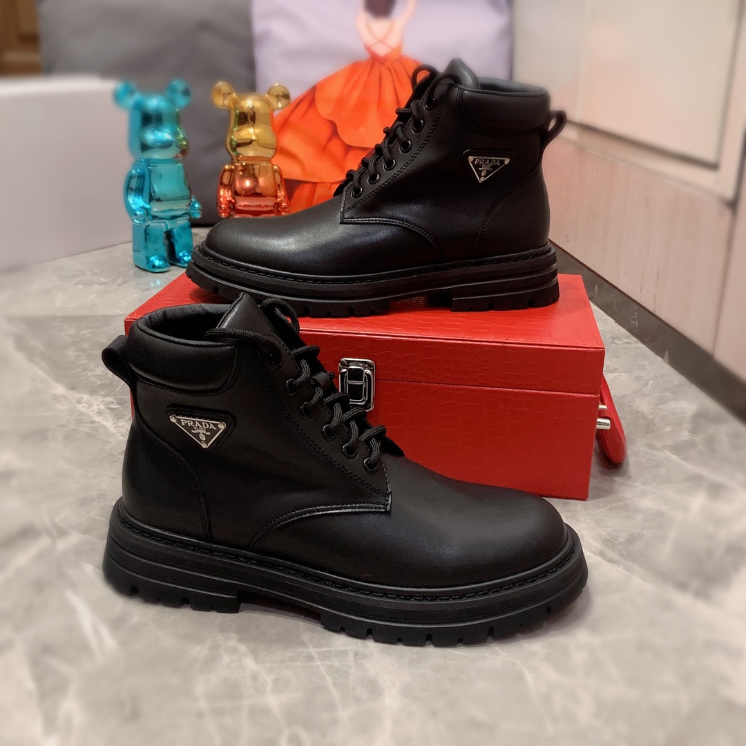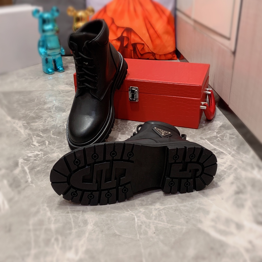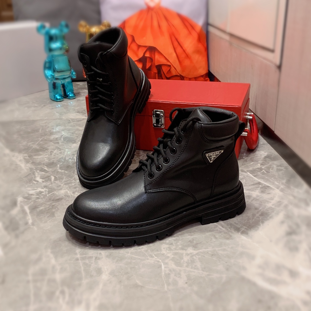 高帮靴 J0 Prada 普拉达 最新爆款休闲皮鞋靴子, 顶端品牌[勾引]奢侈~代购,顶级~质量。专柜同卖产品[强]鞋面選用进口透气牛皮材质透气羊皮内里精细做工。原版个性时尚柔软橡膠耐磨防滑大底,上脚轻巧舒适,实物拍摄實物更好看,0122广州码: 38-44,黑色