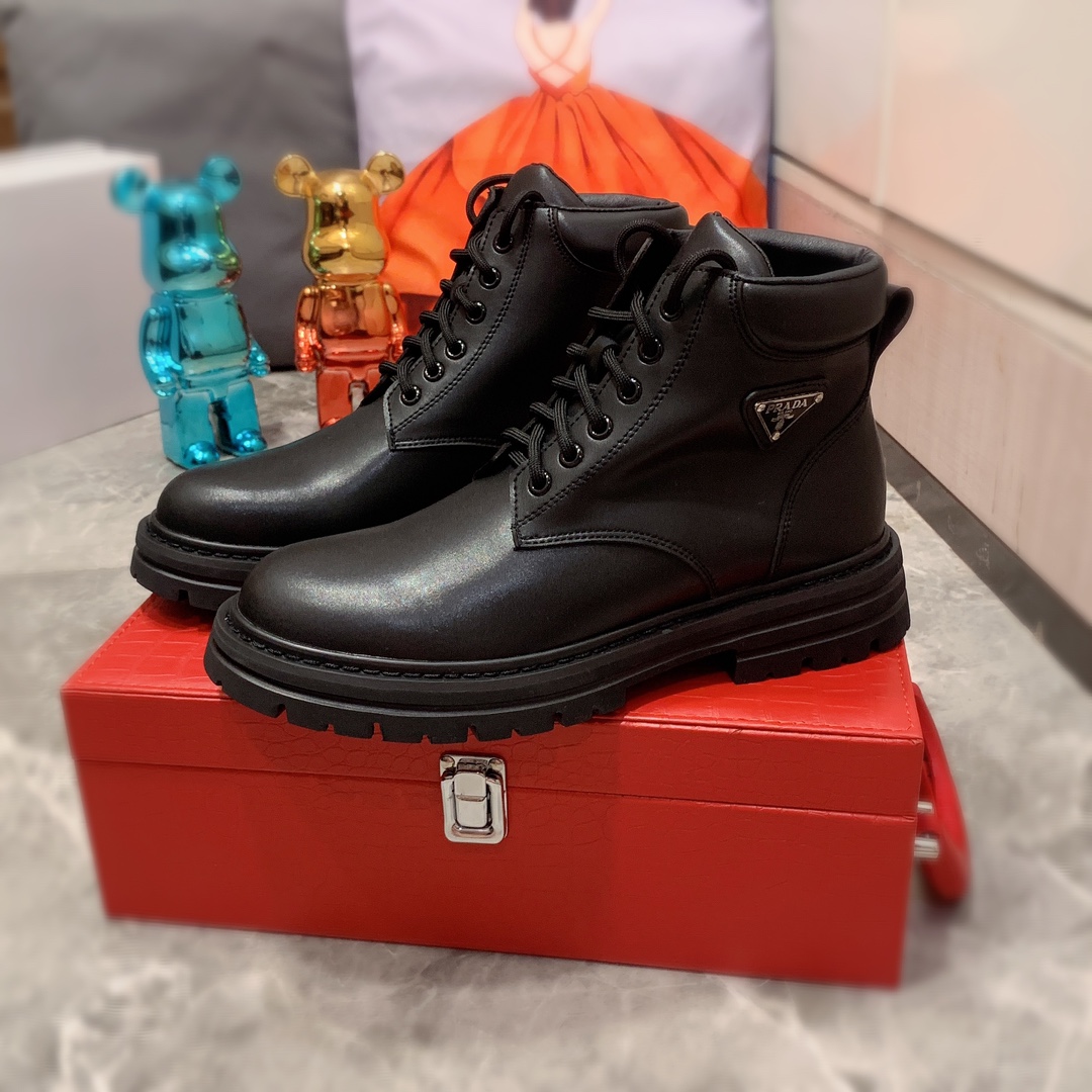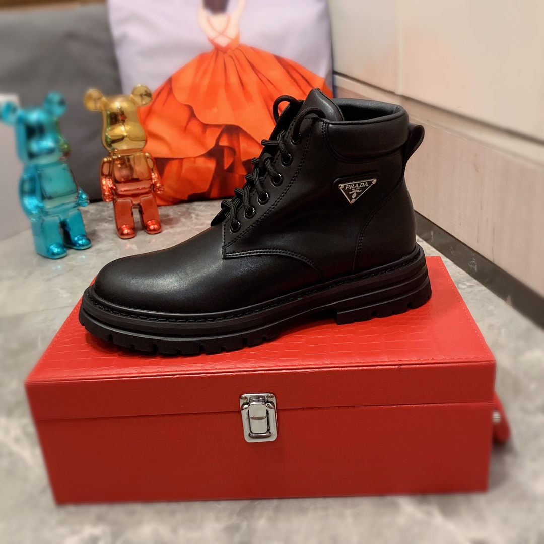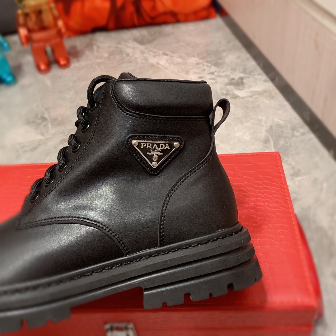 高帮靴 J0 Prada 普拉达 最新爆款休闲皮鞋靴子, 顶端品牌[勾引]奢侈~代购,顶级~质量。专柜同卖产品[强]鞋面選用进口透气牛皮材质透气羊皮内里精细做工。原版个性时尚柔软橡膠耐磨防滑大底,上脚轻巧舒适,实物拍摄實物更好看,0122广州码: 38-44,黑色