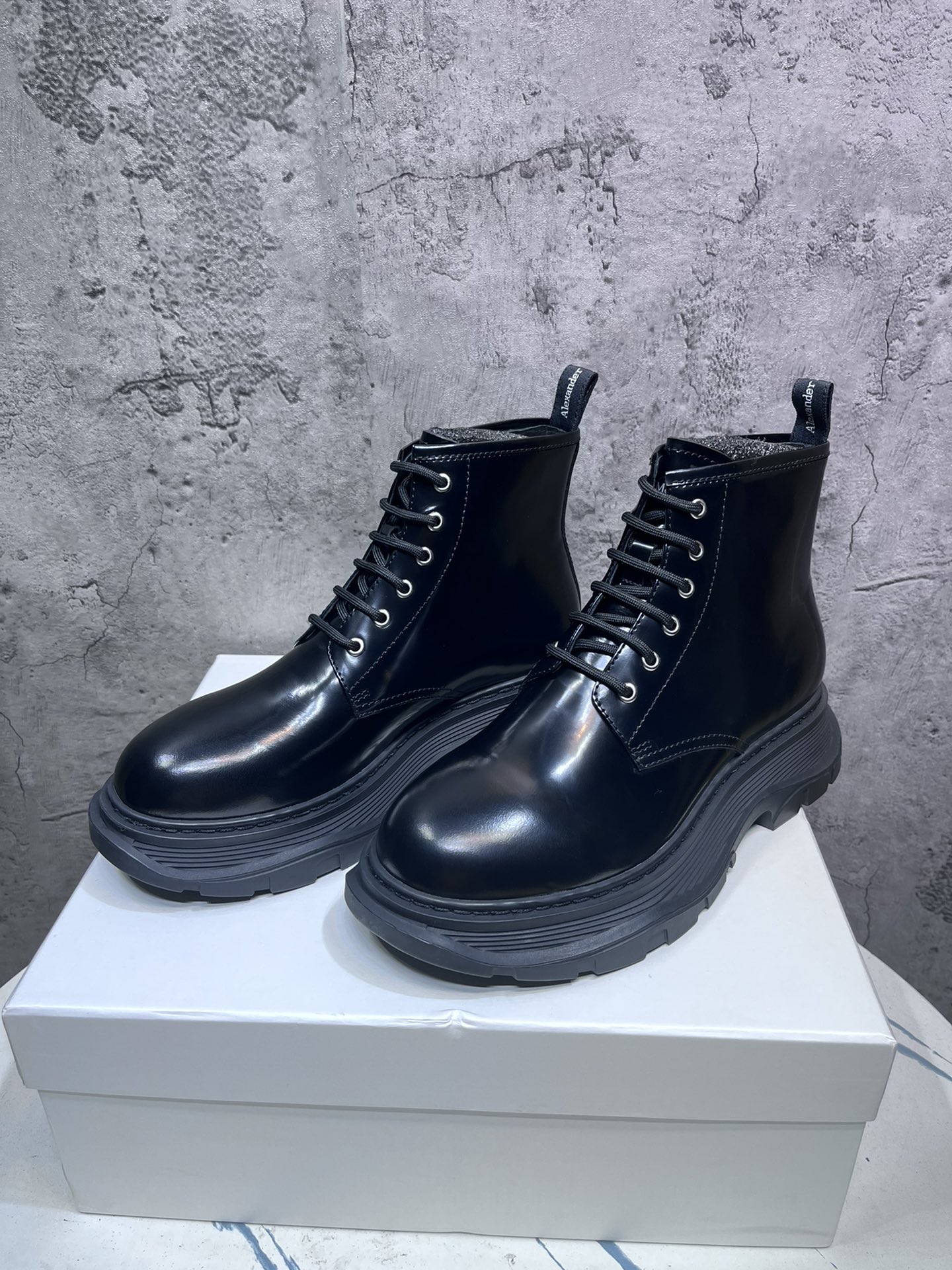 2022顶级版Alexander Mcqueen 麦昆 Mc Queen德比男鞋,切而西靴 原版开模,一比一复刻,原版白色鞋盒 布袋手提袋 全套包装、多送一副鞋带面料:进口牛皮面,内里:牛皮垫脚:牛皮垫脚大底:原版开模橡胶底厚底设计 约4.5cm,码数39-45
