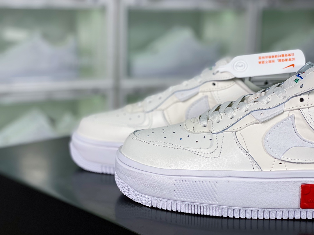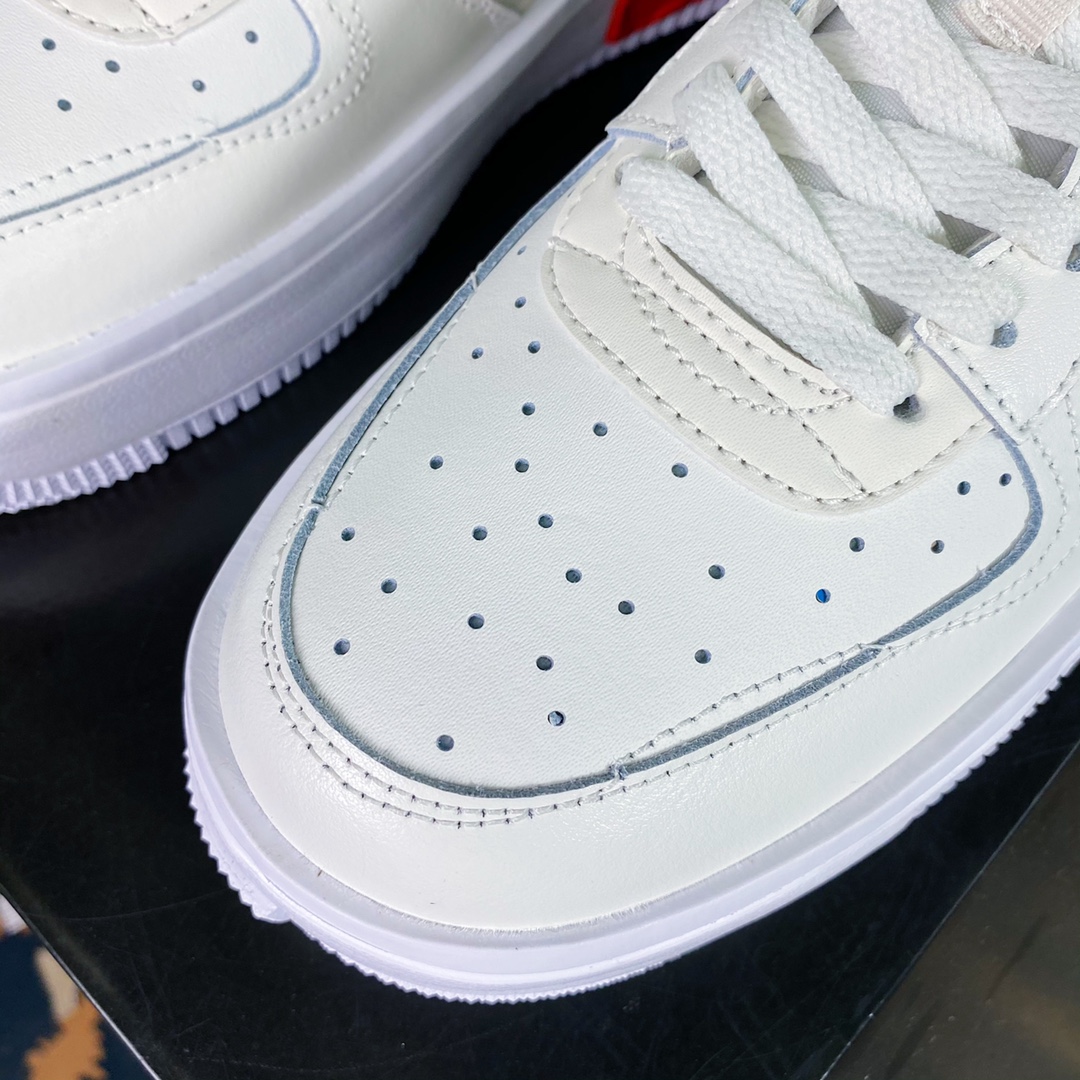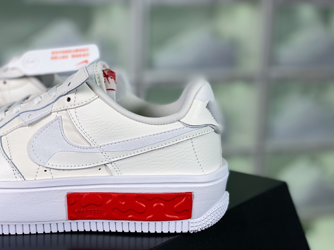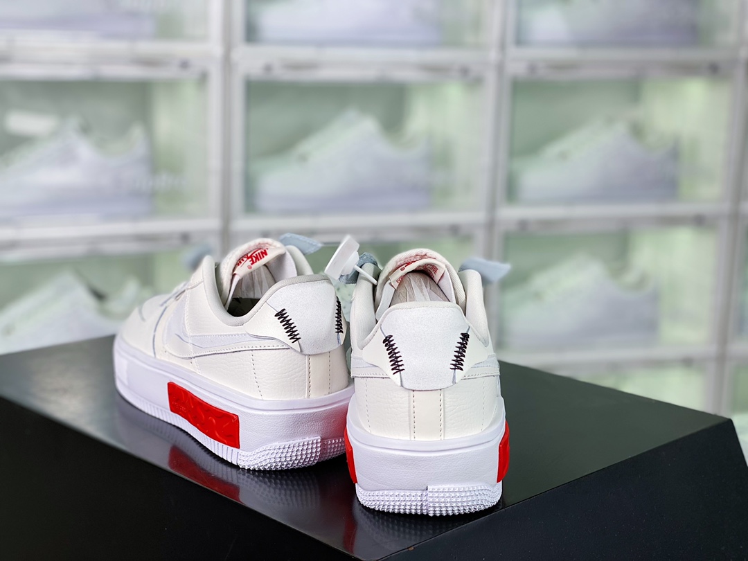 G0 男女鞋真标半码制原楦原纸版开发数据中采用React泡棉组合防滑RB橡胶外底炫酷拼接解构设计,全新耐克Nike Wmns Air Force 1 Fontanka”Sail White/Red”空军一号错位解构系列低帮轻量百搭休闲运动板鞋“皮革米白红”DH1 I5 -001