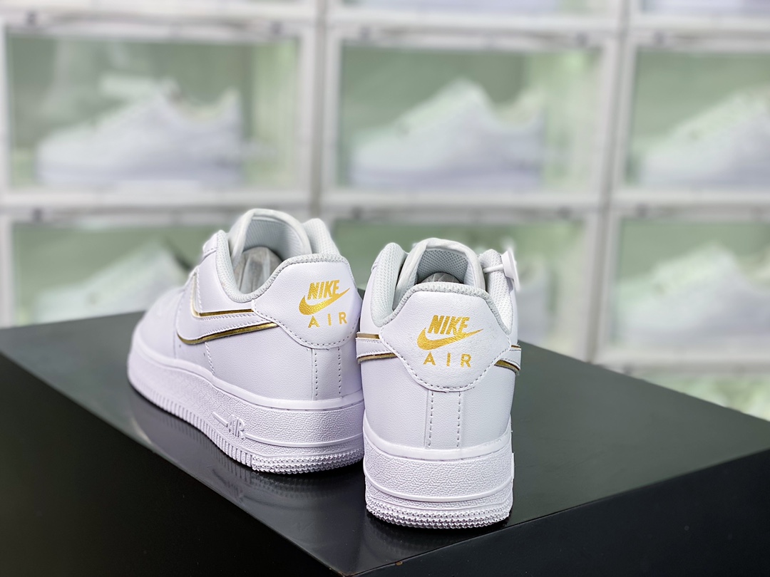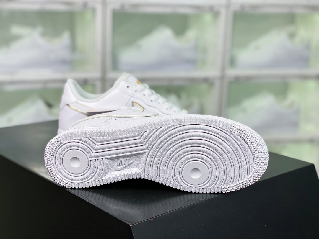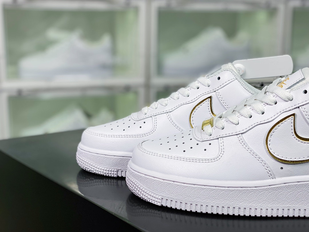 G0 男女鞋真标带半码升级原楦开发版型采用硬质头层荔枝纹皮革鞋面材质内置全掌air sole气垫官方新色,耐克Nike Air Force 1 ’07 Lv8 “White/Gold”空军一号经典低帮百搭休闲运动板鞋“皮革白金边钩”AO2132-102