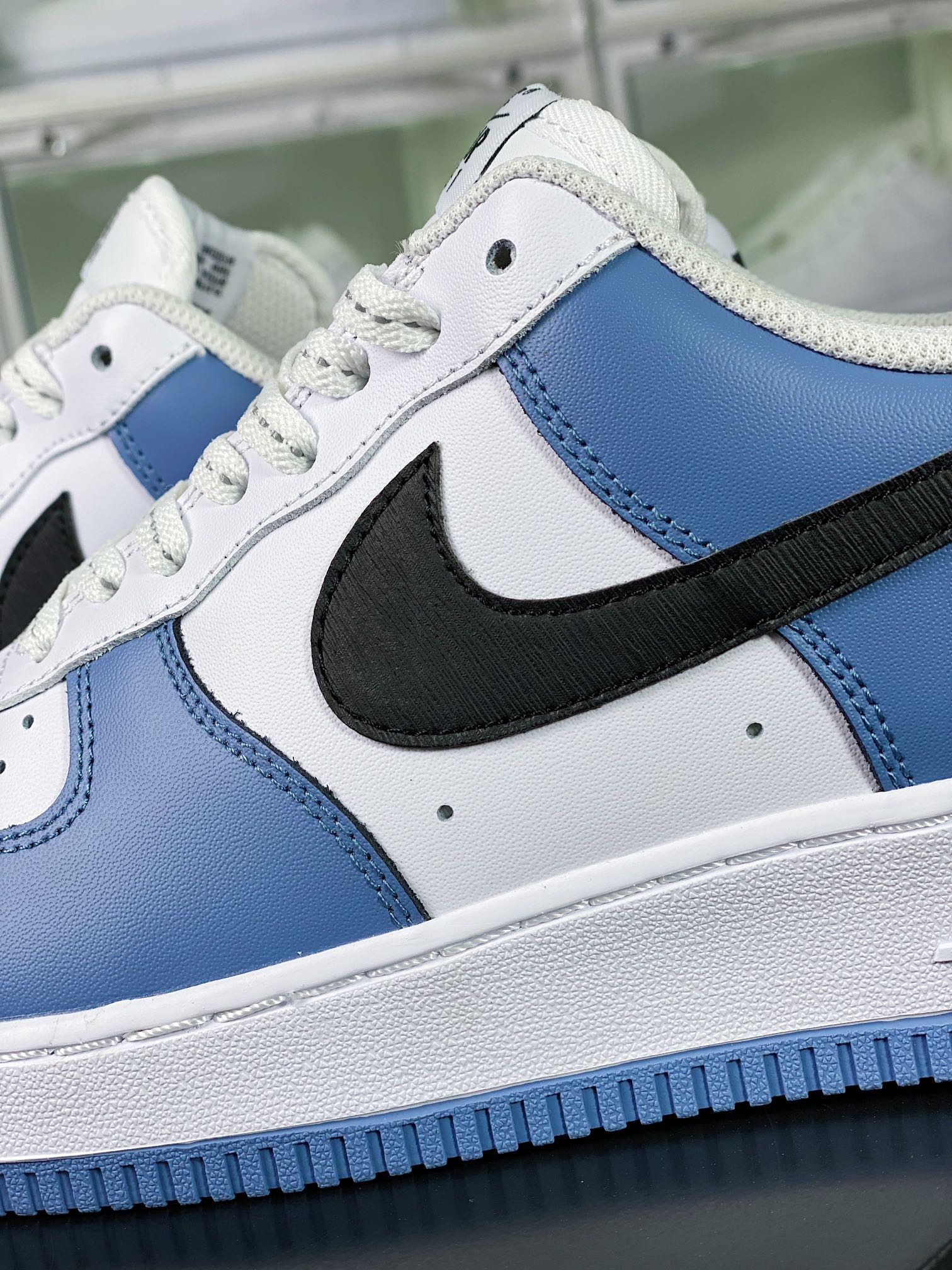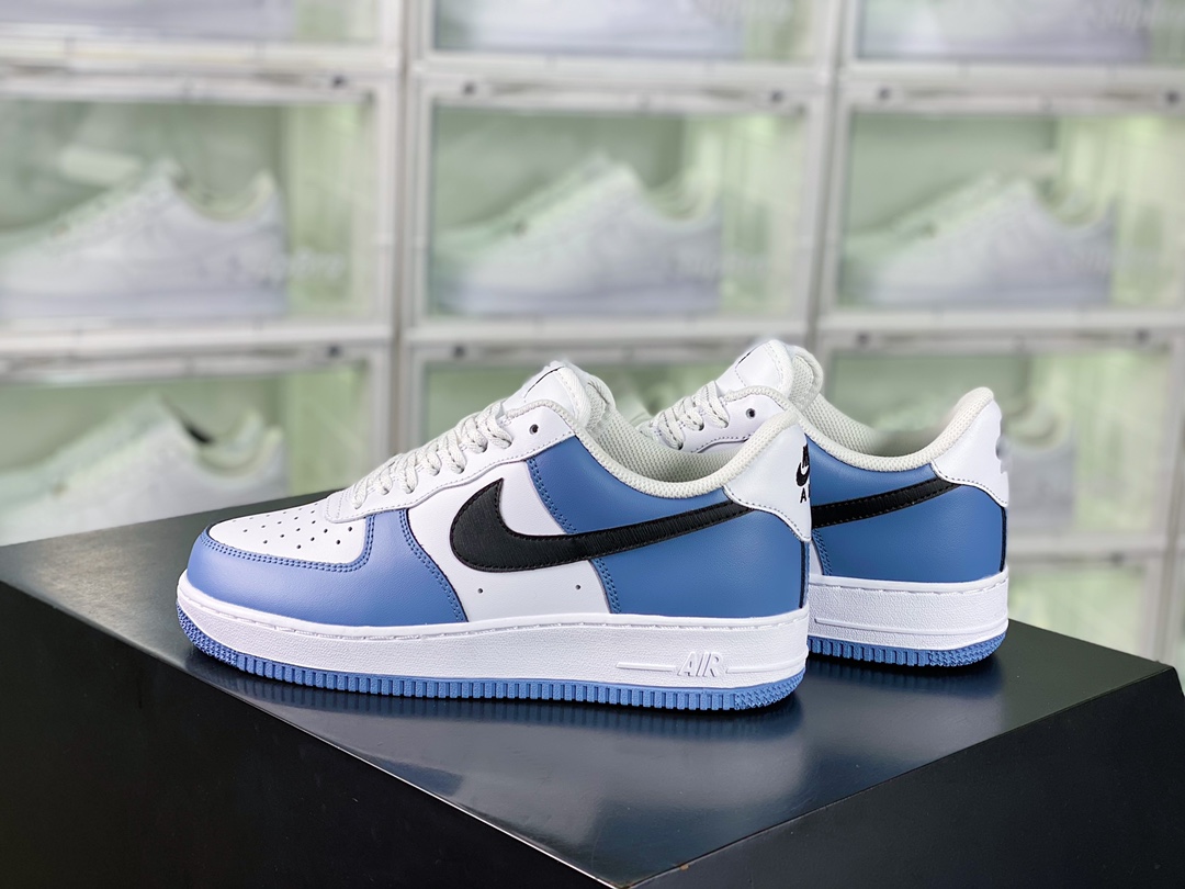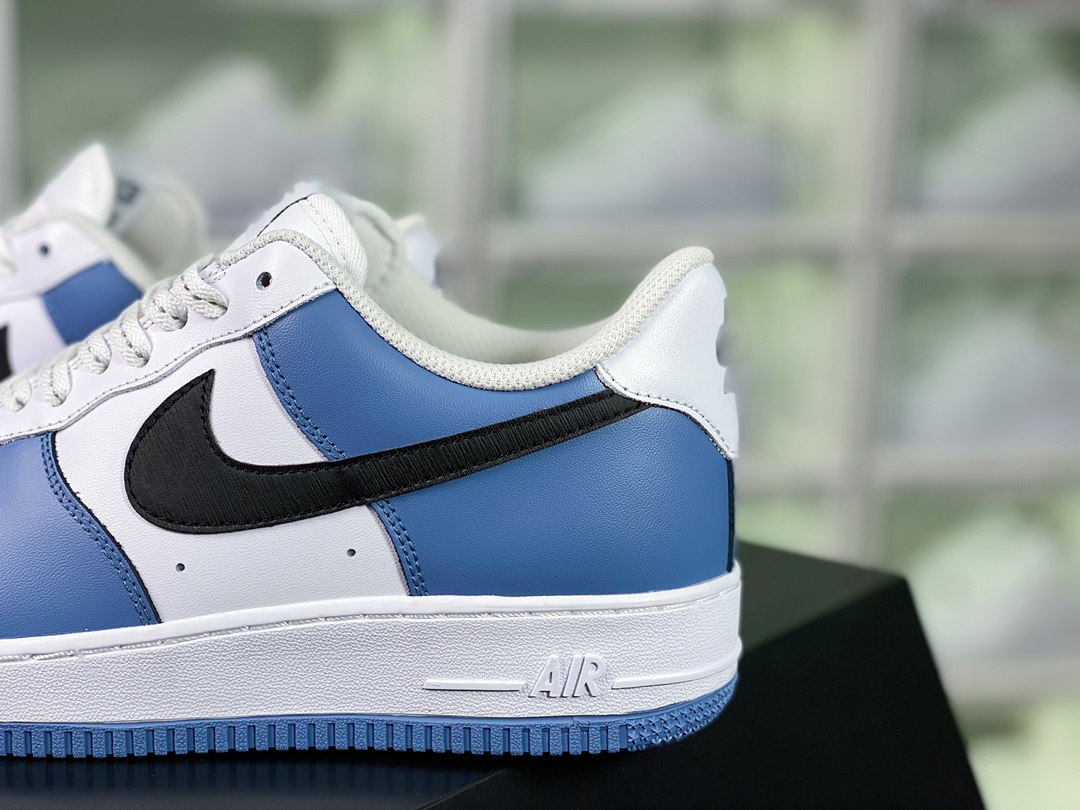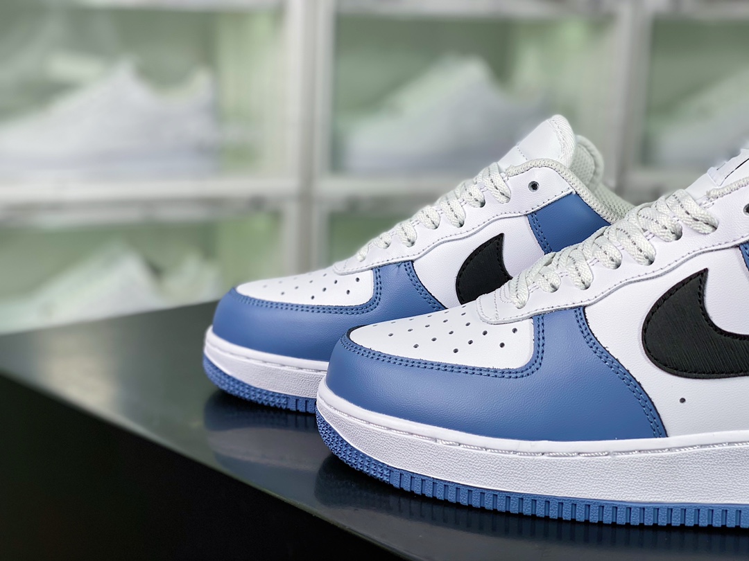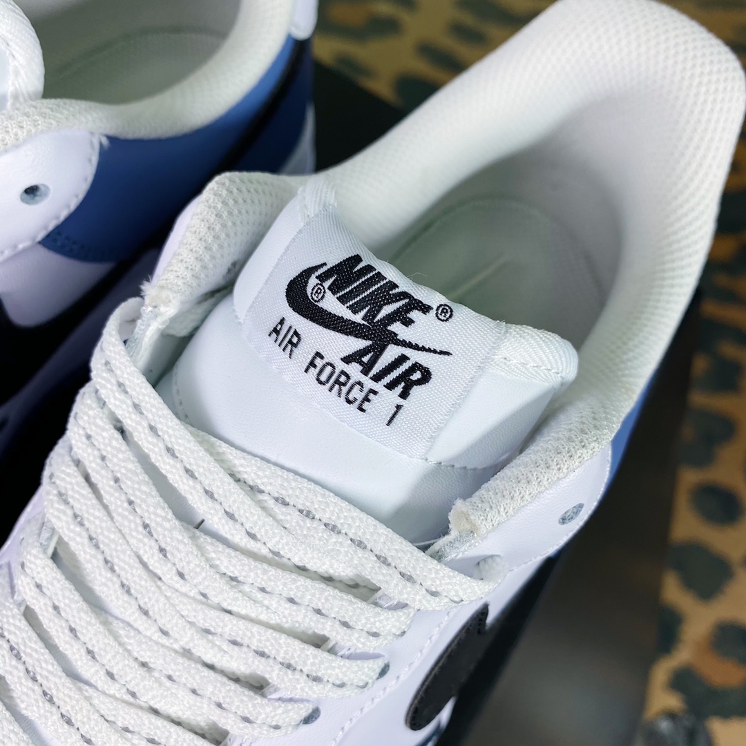 G0 男女鞋真标带半码升级原楦数据开发版型采用硬质粒面牛剖皮革鞋面材质内置全掌air sole气垫自由自造,By You专属定制个性鞋款,耐克Nike By You Air Force 1’07 Low Retro SP空军一号低帮经典百搭休闲运动板鞋“皮革拼接白黑深海蓝”CQ5059-109