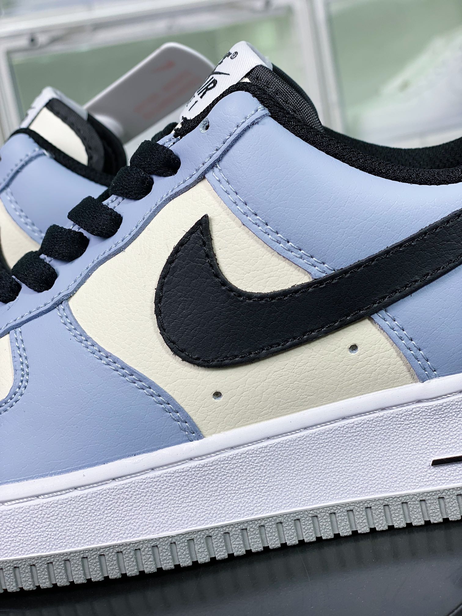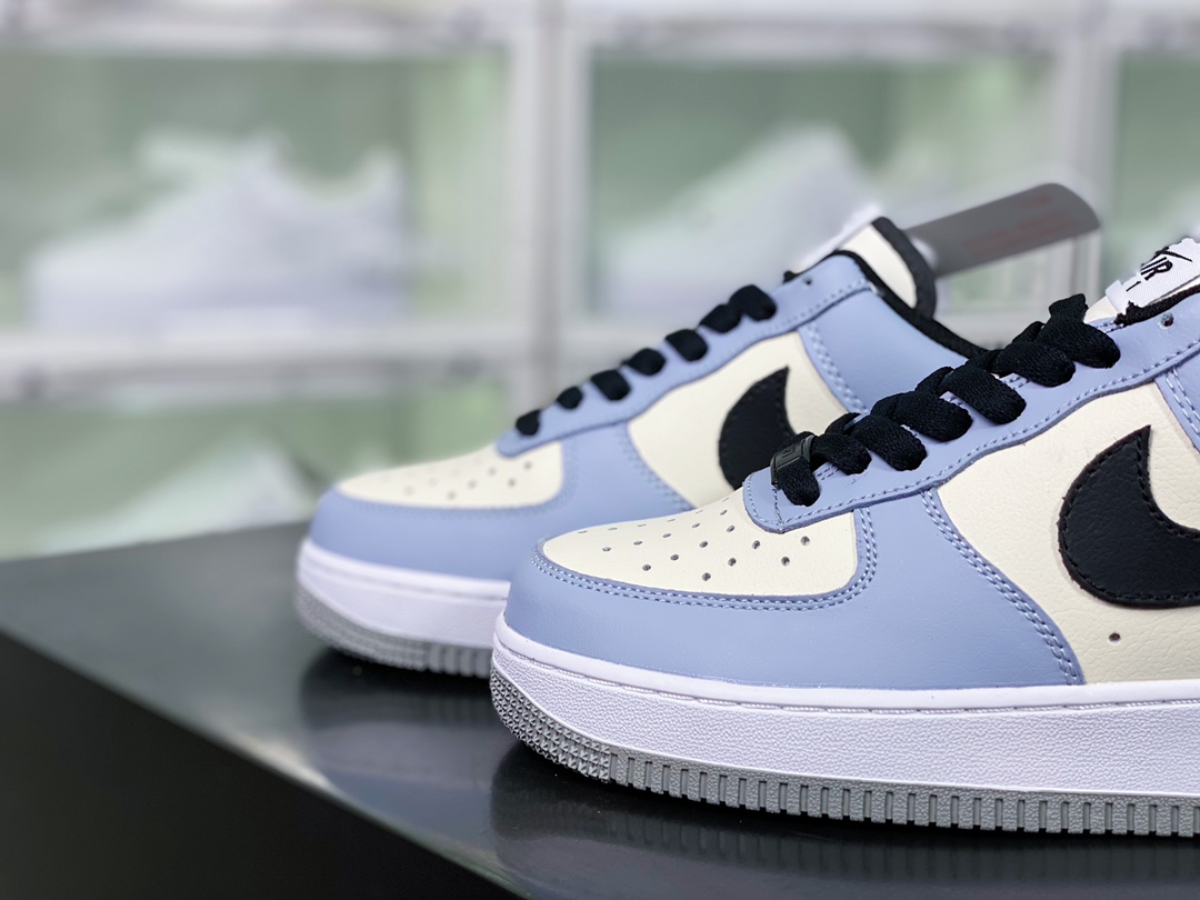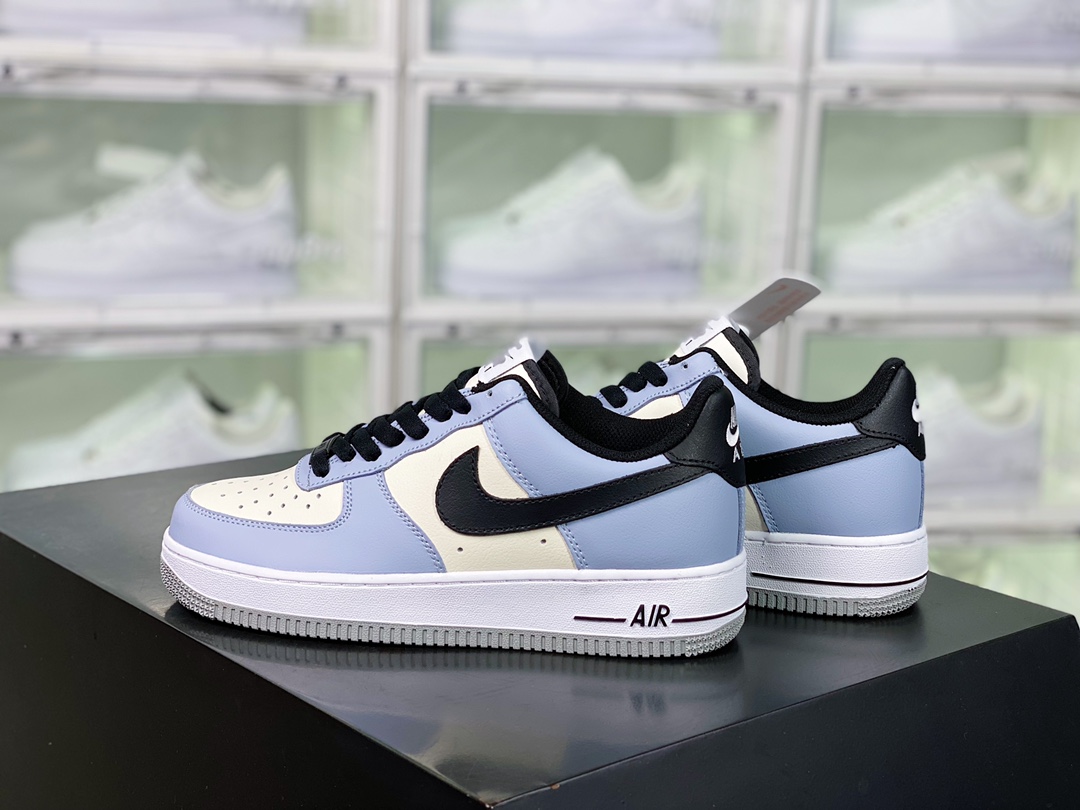 G0 男女鞋真标带半码升级原楦数据开发版型采用硬质粒面牛剖皮革鞋面材质内置全掌air sole气垫自由自造,By You专属定制个性鞋款,耐克Nike By You Air Force 1’07 Low Retro SP空军一号低帮经典百搭休闲运动板鞋“皮革拼接雾霾拿米白黑”CW2288- G0