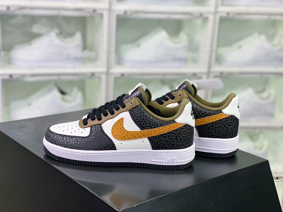 G0 男女鞋真标带半码升级原楦数据开发版型采用硬质牛剖皮革鞋面材质内置全掌Air Sole气垫全新官方配色,耐克Nike Air Force 1’07 Low”Black/White/Brown”空军一号经典低帮百搭休闲运动板鞋“皮革黑白棕石头纹”CW2288-118