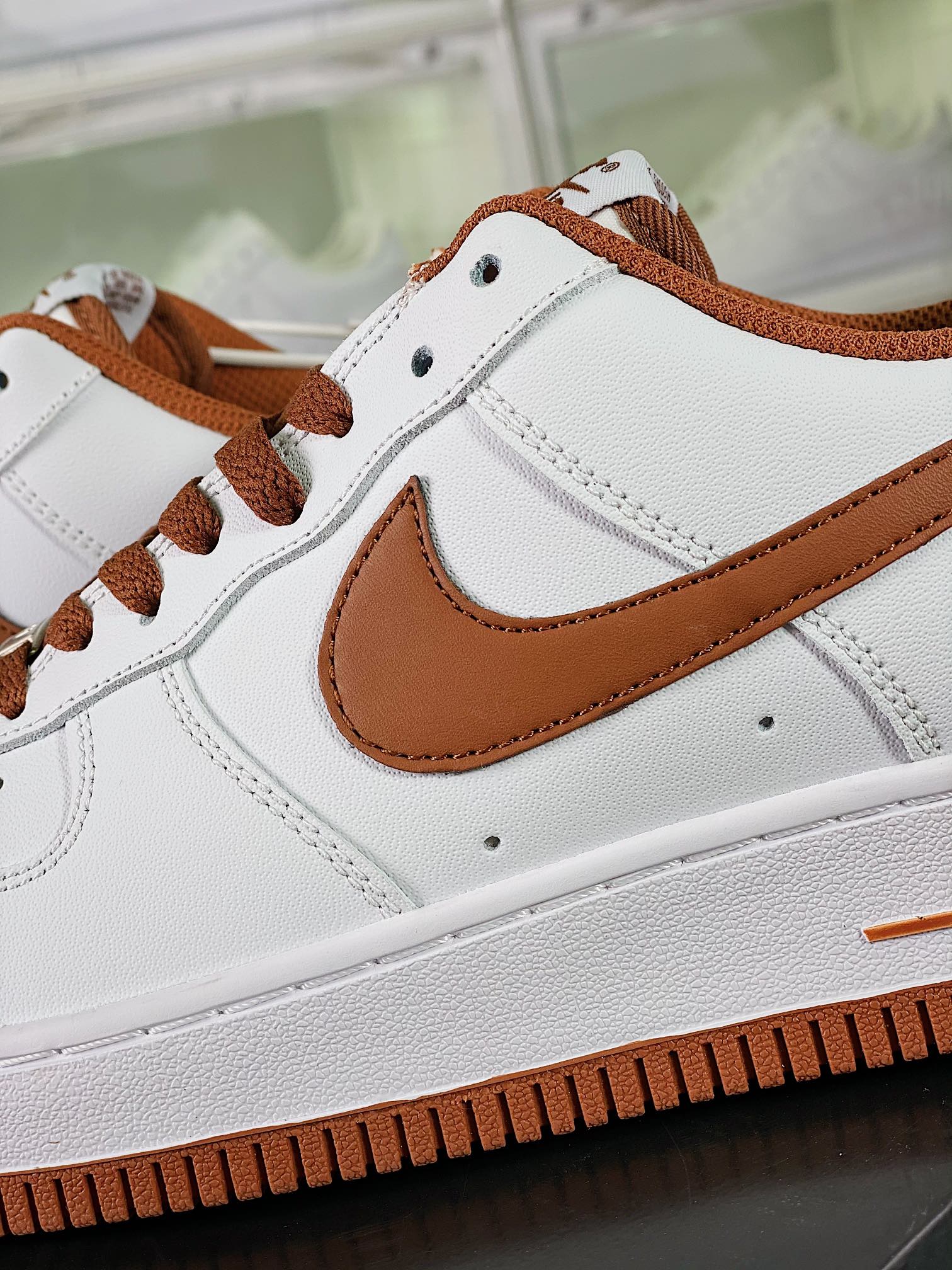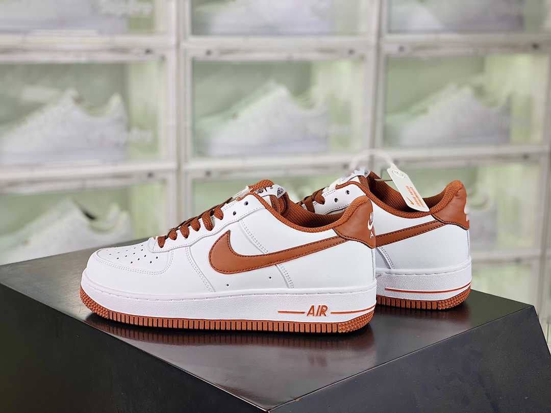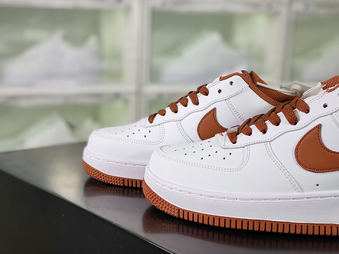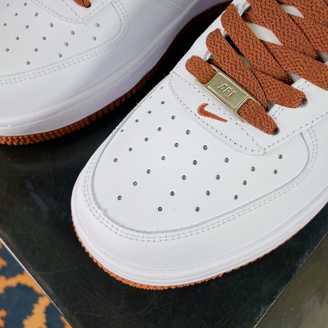 G0 男女鞋真标带半码原楦原纸版数据开发版型采用硬质牛培皮革鞋面材质内置全掌air sole气垫复古巧克力棕,耐克Nike Air Force 1’07 Low”White/“Pecan”空军一号经典低帮百搭休闲运动板鞋“皮革白巧克力棕”DH7561- F5