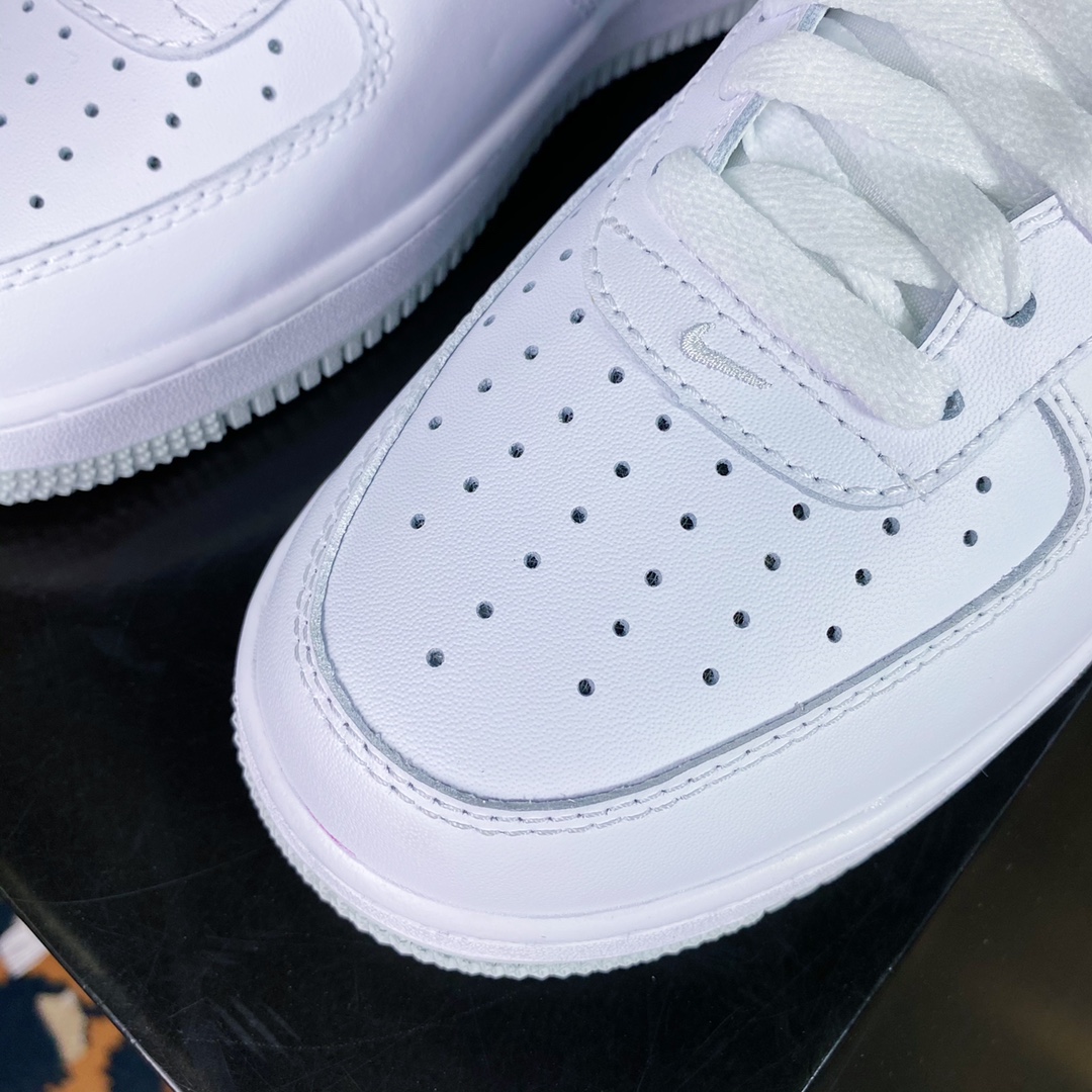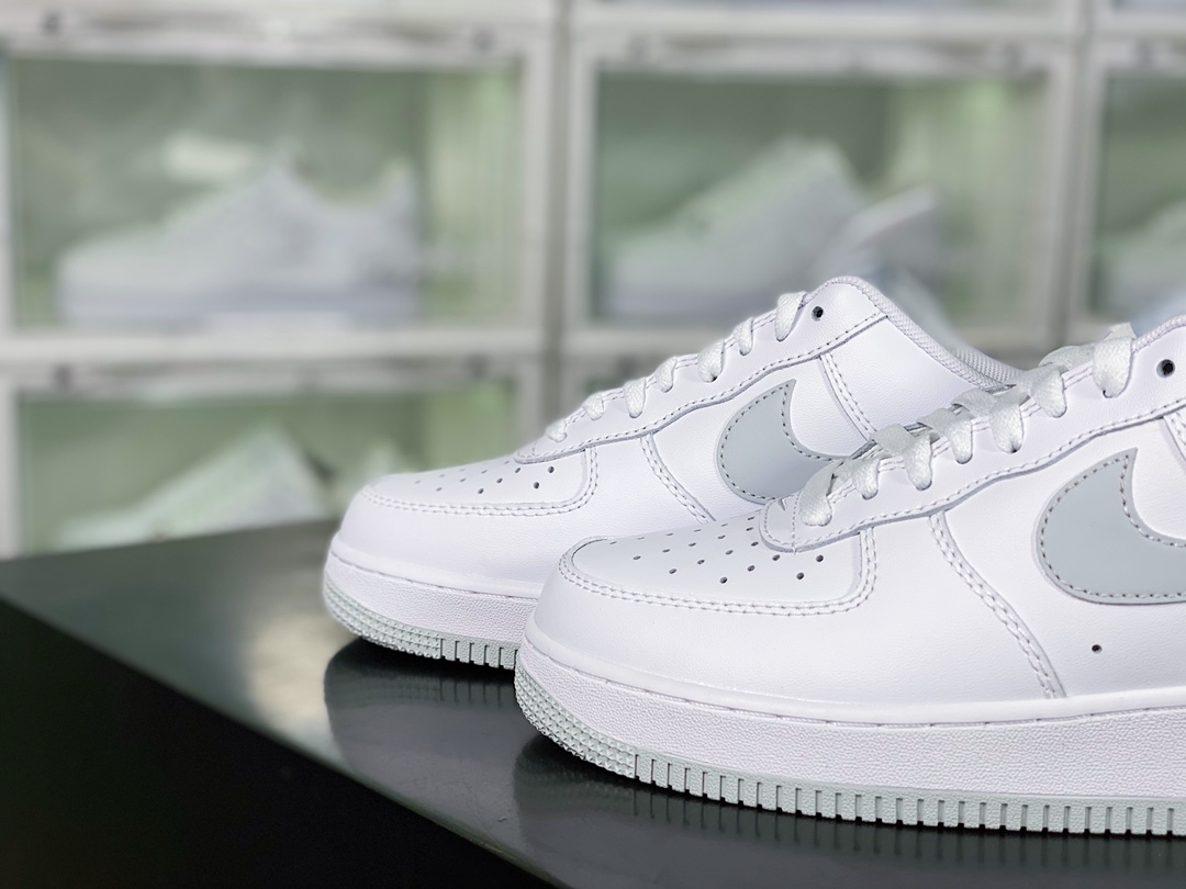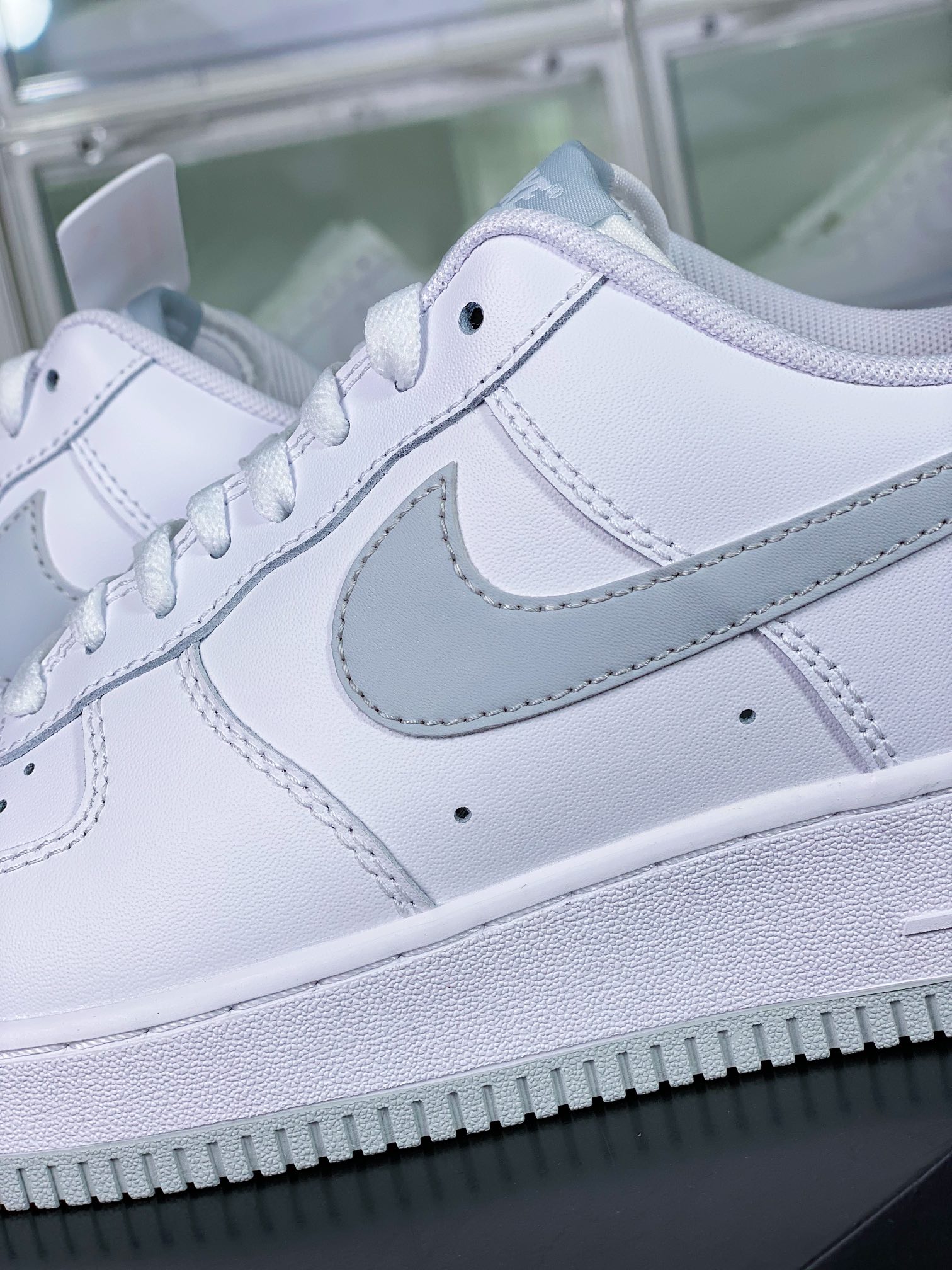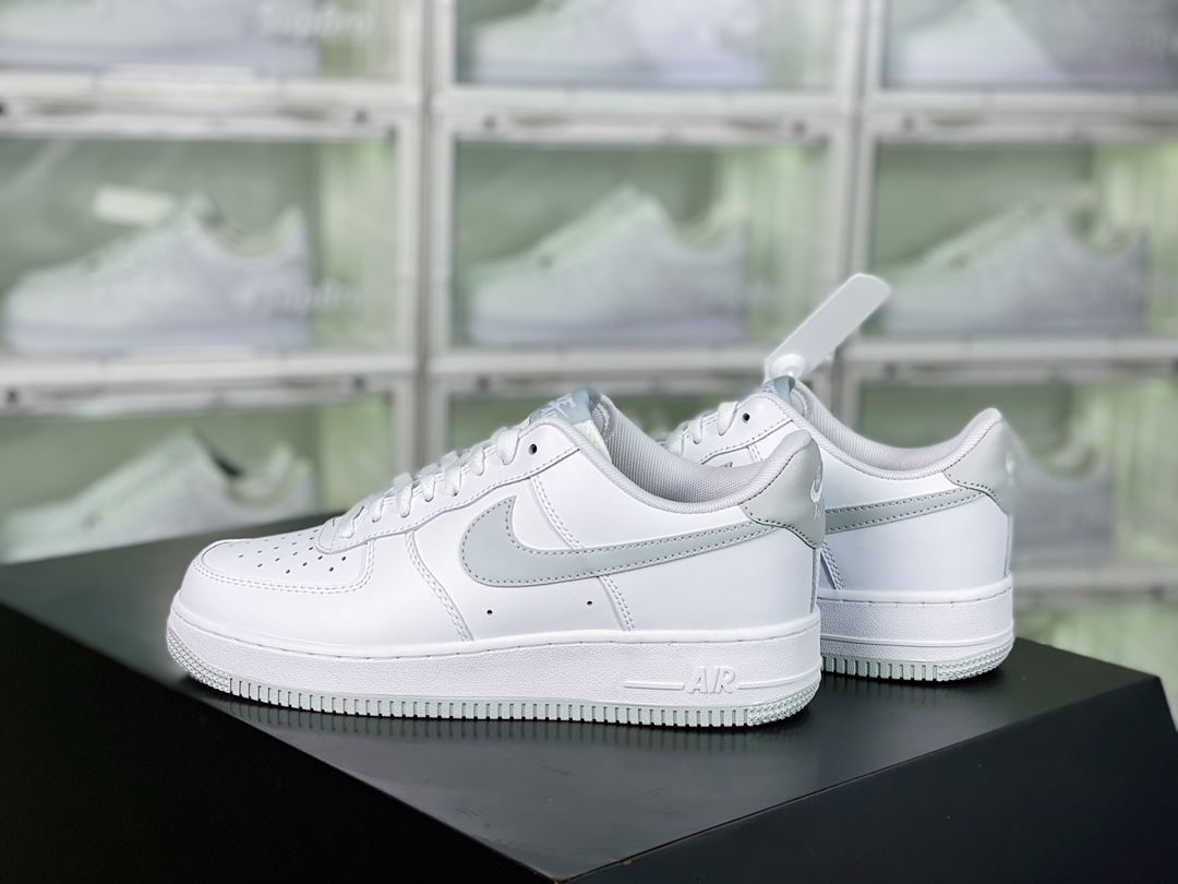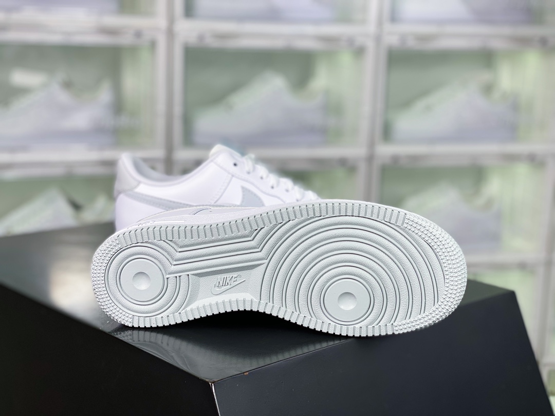 G0 男女鞋真标带半码原楦原纸版数据开发版型采用硬质荔枝纹牛培皮革鞋面材质内置全掌air sole气垫官方新色,耐克Nike Air Force 1’07 Low GS”White/Photon Dust”空军一号经典低帮百搭休闲运动板鞋“皮革白烟灰雾霾钩子”DC2911- F5