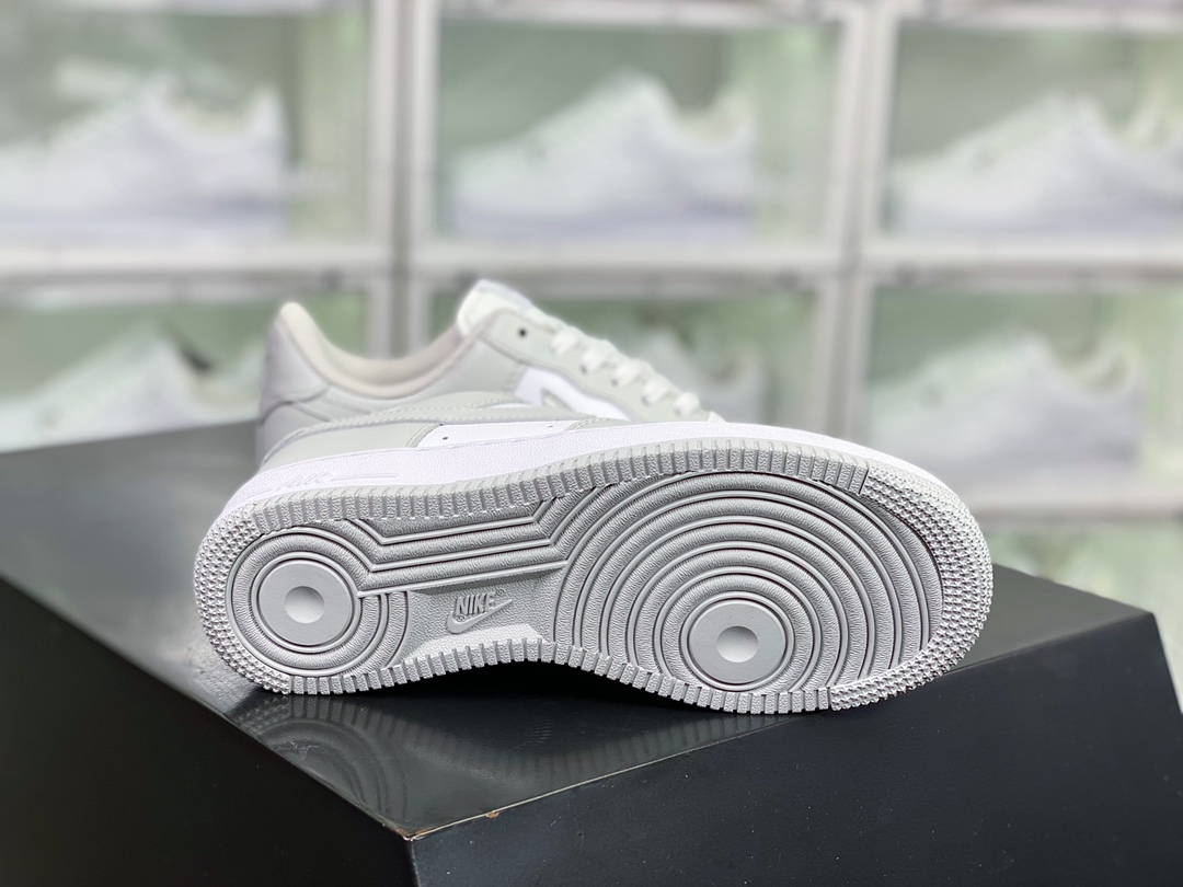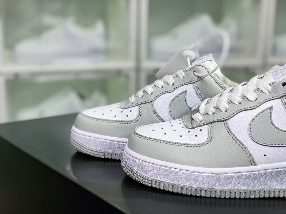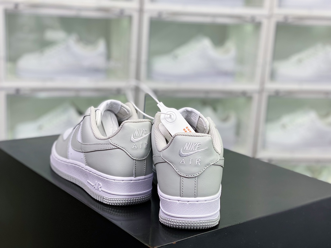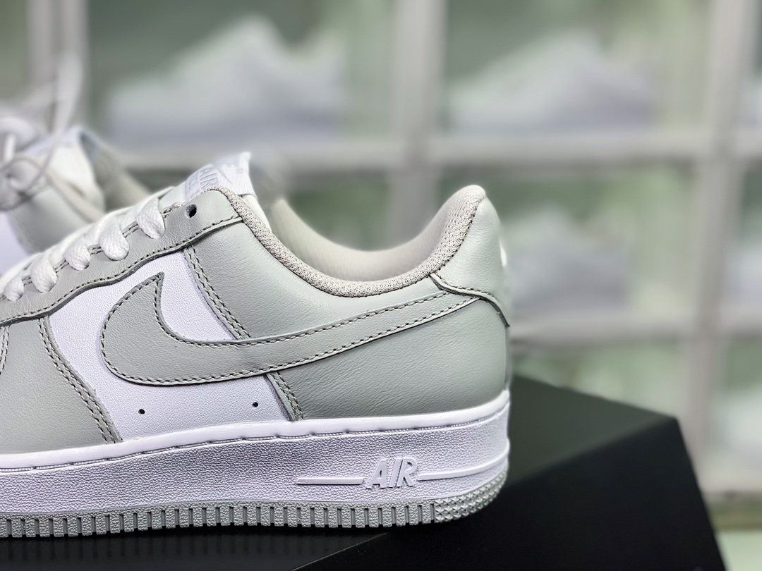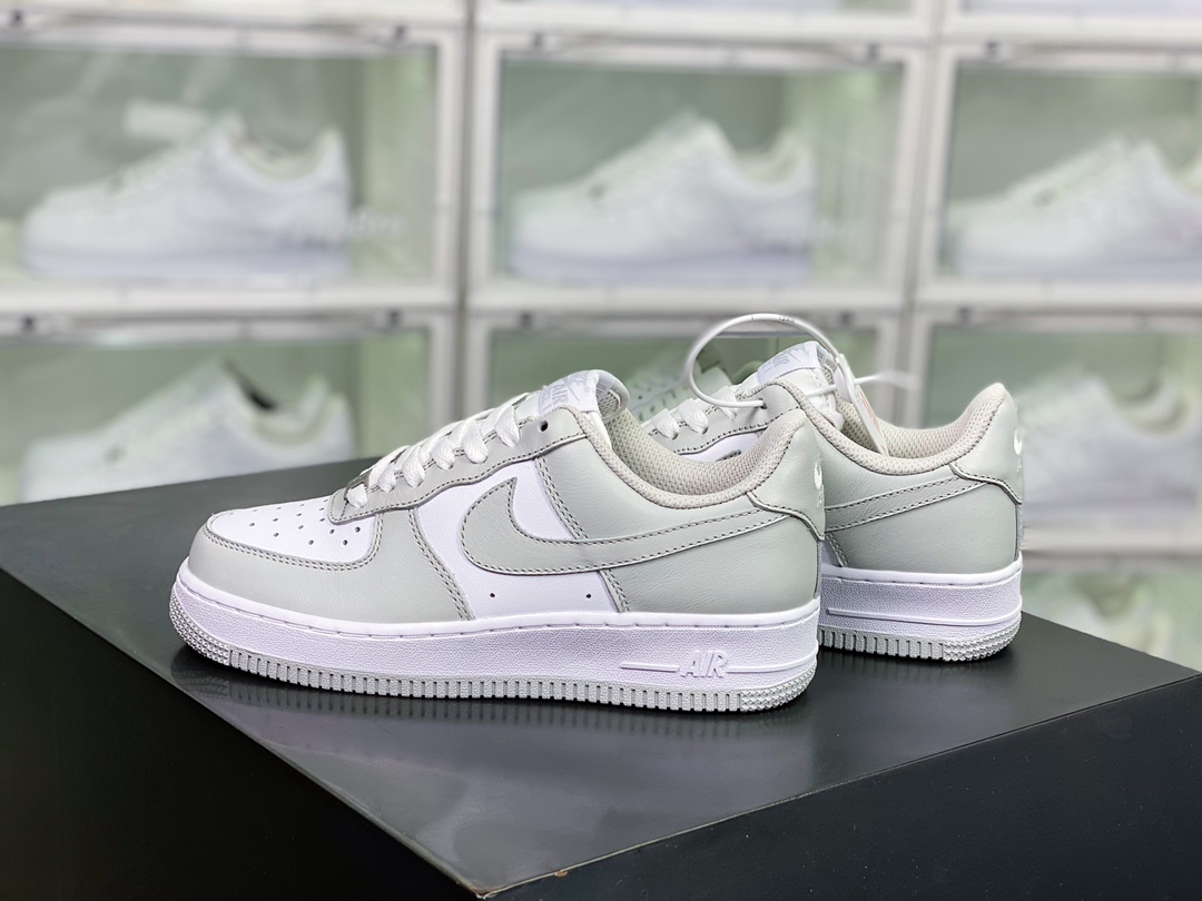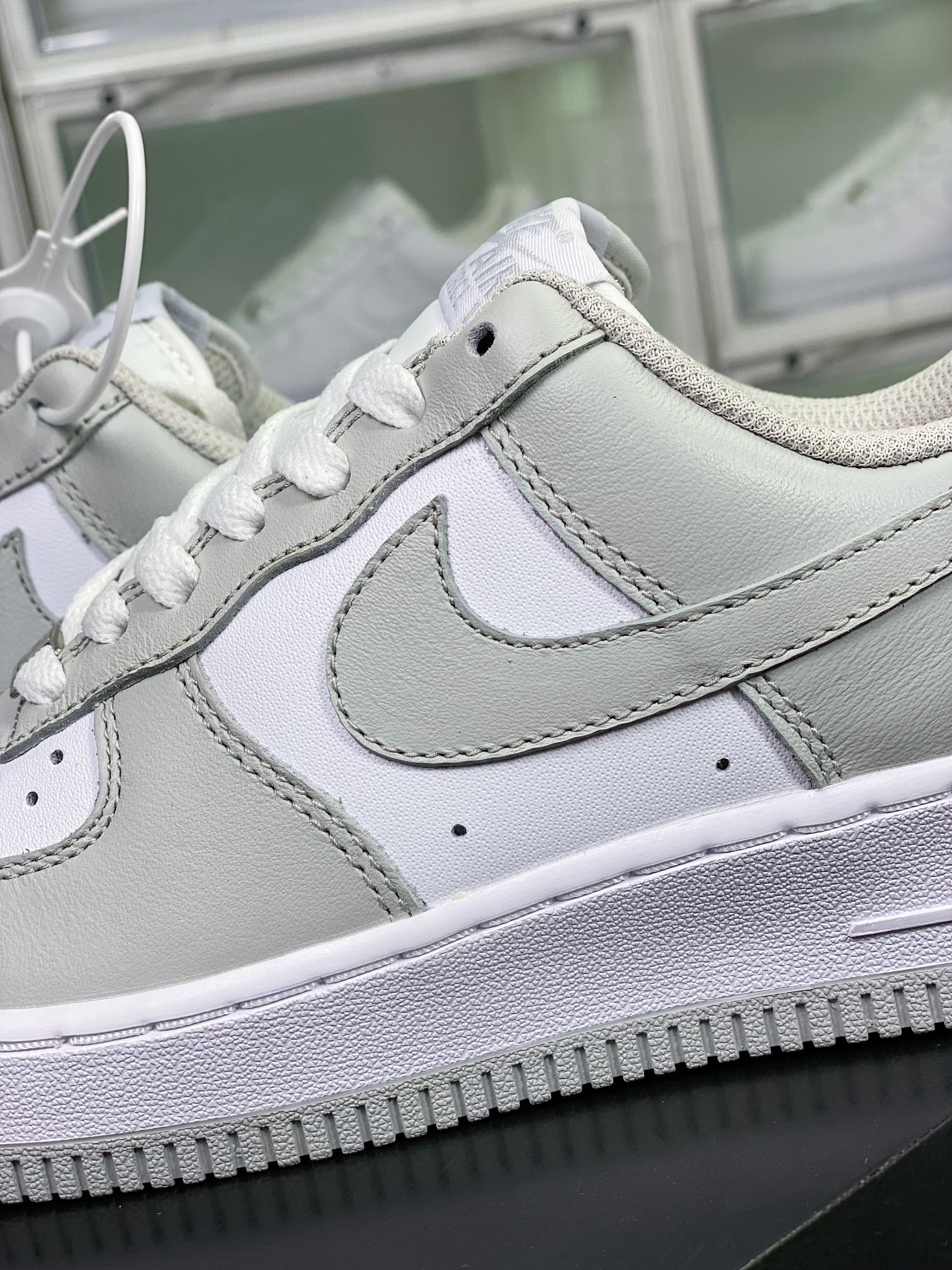 G0 男女鞋真标带半码原楦原纸版数据开发版型采用软质荔枝纹头层皮革鞋面材质内置全掌Air Sole气垫夏季百搭利器,耐克Nike Air Force 1’07 LV8″Photon Dust”空军一号经典低帮百搭休闲运动板鞋“皮革白灰烟雾霾灰”AA1726-201