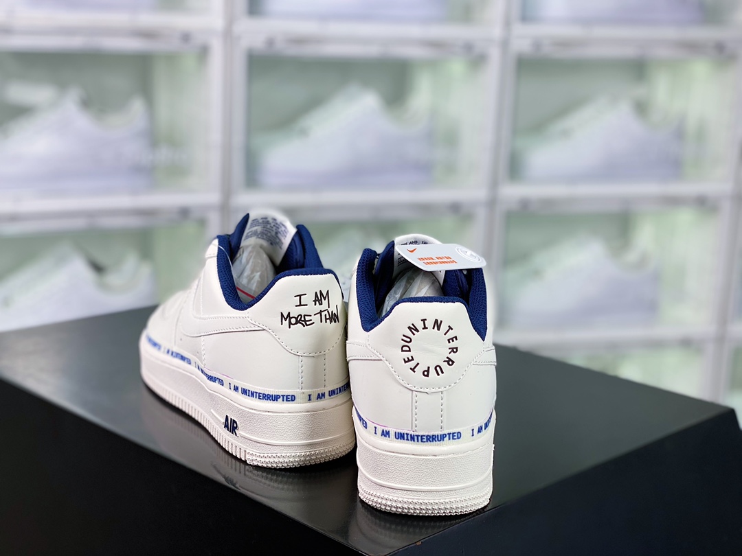 H0 升级版男女鞋真标半码制升级原楦开发版型纸版采用正确硬质荔枝纹牛培皮革材质内置全掌air sole气垫詹皇公司联名款Uninterrupted x Air Force 1 Low QS”More Than____”空军一号经典百搭休闲运动板鞋