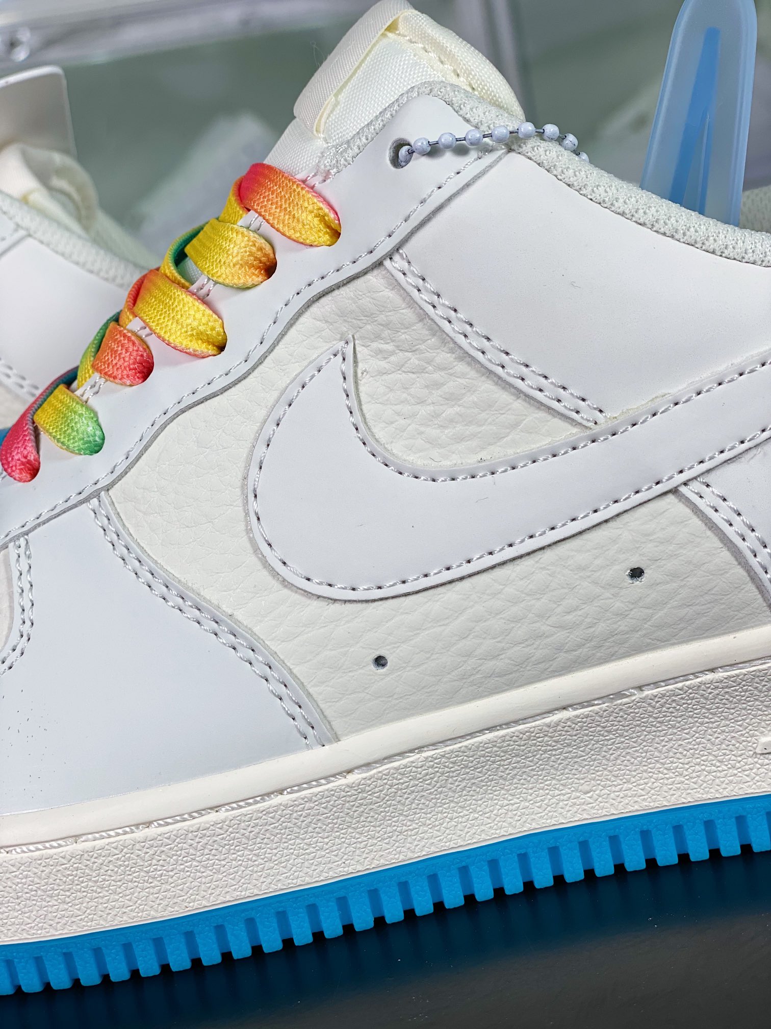 H0 男女鞋真标带半码升级原楦原纸版数据开发版型全面鞋身均采用热感应超纤物料内置全掌air sole气垫第二代紫外线敏感,耐克Nike Wmns Air Force 1 ’07 Low”UV Sail White/University Blue Pack”空军一号经典低帮百搭休闲运动板鞋“米白蓝粉满面热感应”DD3396-131