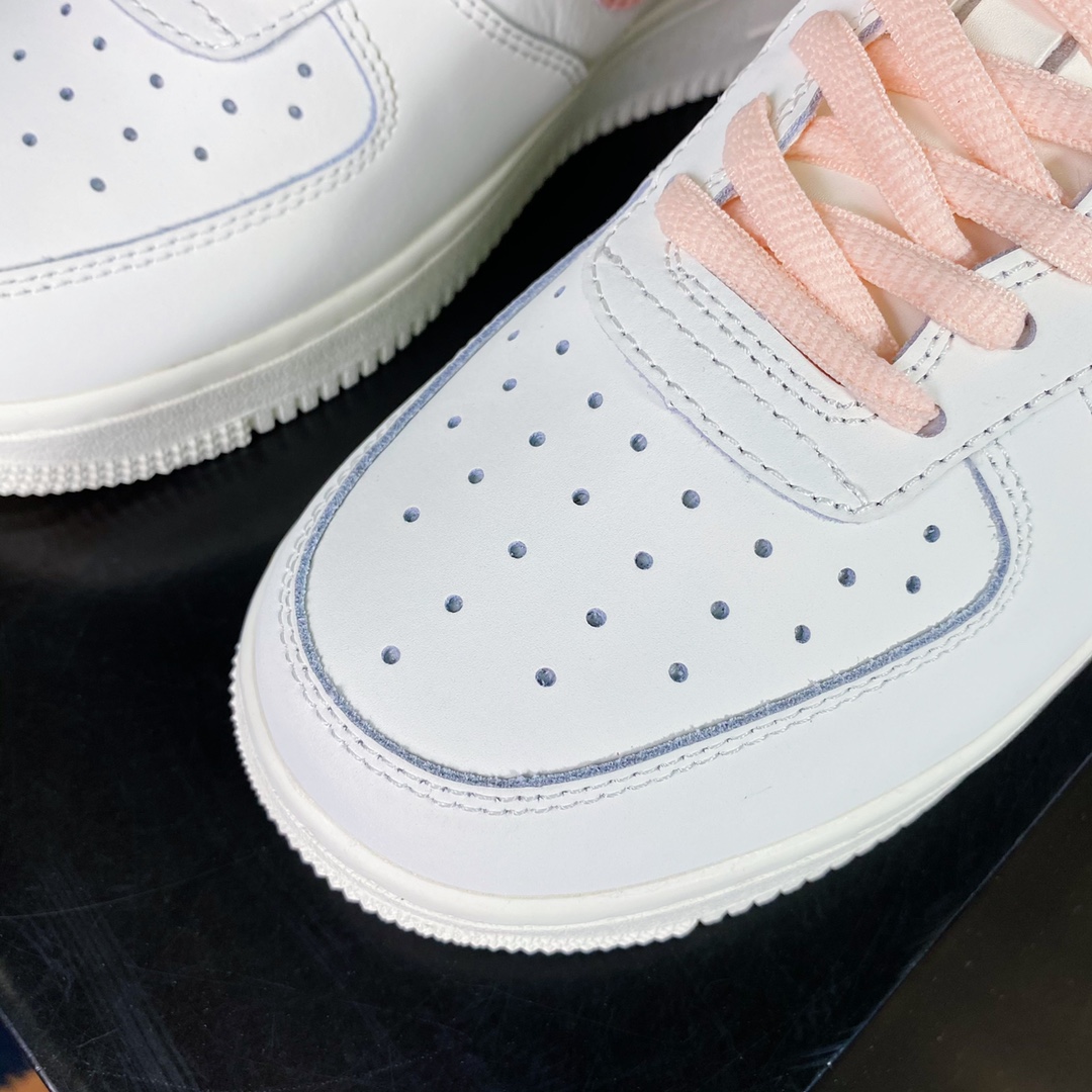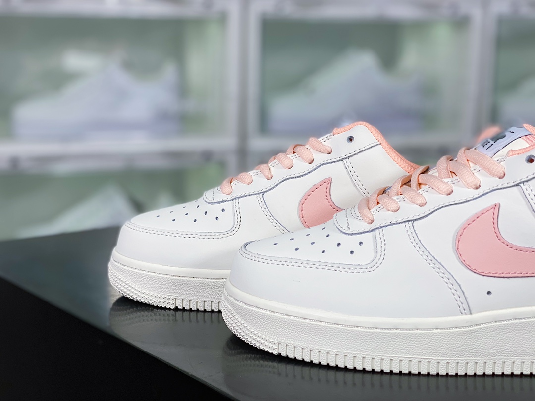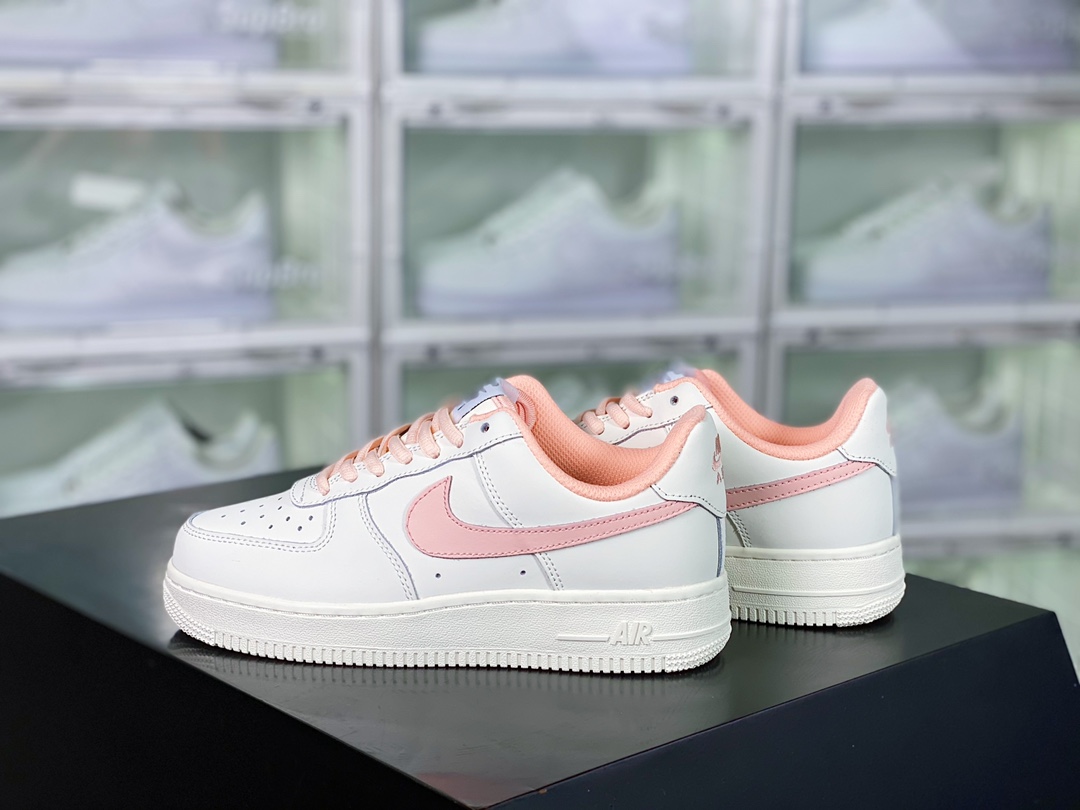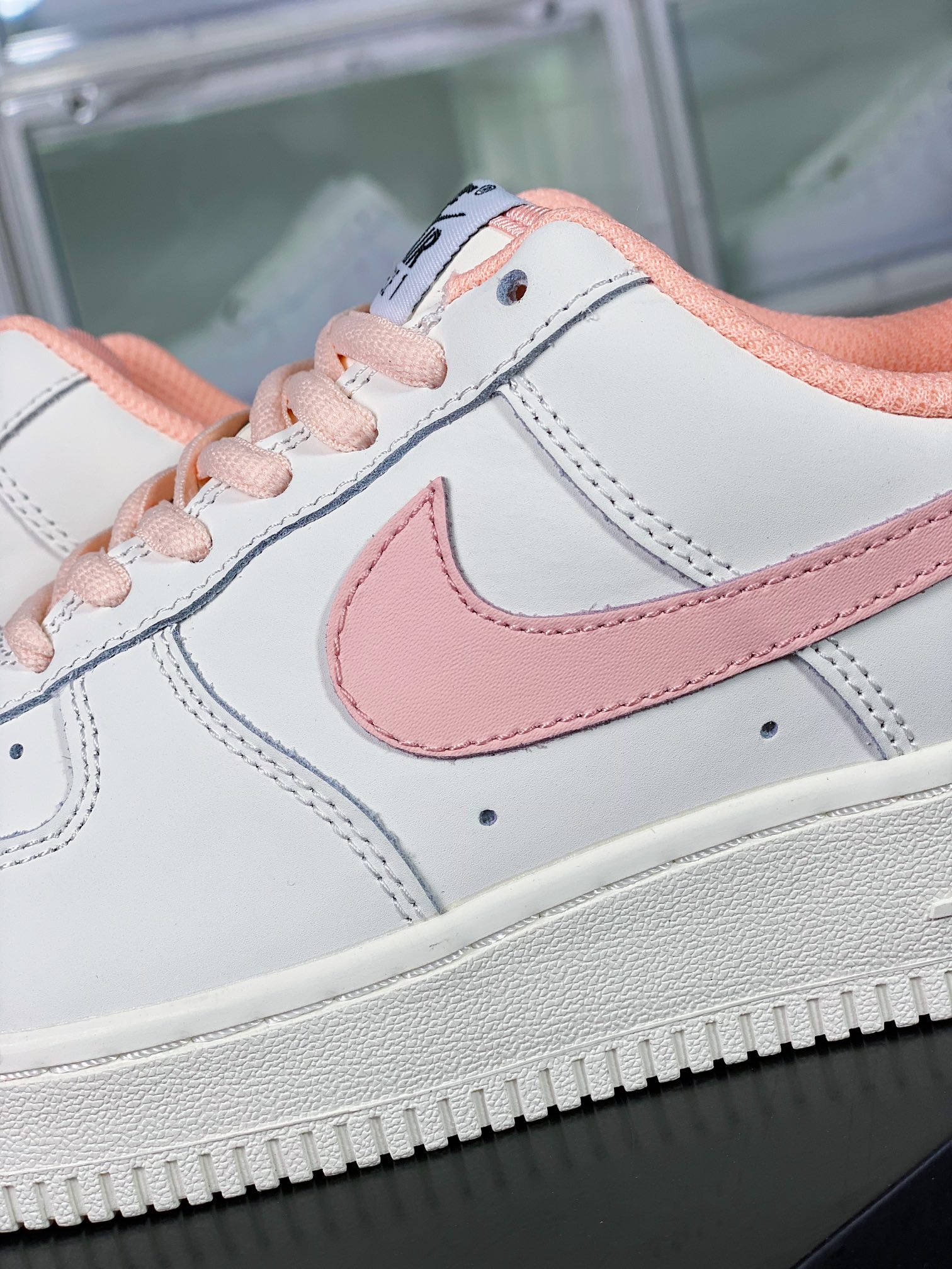 H0 男女鞋真标带半码升级原楦数据开发版型采用软质荔枝纹牛剖皮革鞋面材质内置全掌air sole气垫夏季穿搭神器,耐克Nike Wmns Air Force 1’07 Low”White/Cherry Blosso Pink”空军一号经典低帮百搭休闲运动板鞋“米白白樱花浅粉”CQ5059-106