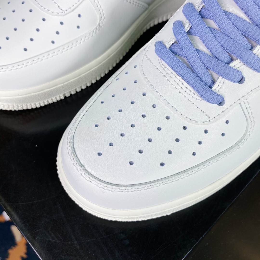 H0 男女鞋真标带半码原楦原纸版数据开发版型采用硬质荔枝纹牛培皮革鞋面材质内置全掌air sole气垫官方新色,耐克Nike Air Force 1’07 Low GS”White/Lnk Lavender”空军一号经典低帮百搭休闲运动板鞋“皮革米白淡薰衣草蓝”CQ5059-108尺码:36 36.5 37.5 38 38.5 39 40 40.5 41 42 42.5 43 44 44.5 45条码编码:
