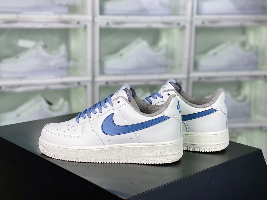 H0 男女鞋真标带半码原楦原纸版数据开发版型采用硬质荔枝纹牛培皮革鞋面材质内置全掌air sole气垫官方新色,耐克Nike Air Force 1’07 Low GS”White/Lnk Lavender”空军一号经典低帮百搭休闲运动板鞋“皮革米白淡薰衣草蓝”CQ5059-108