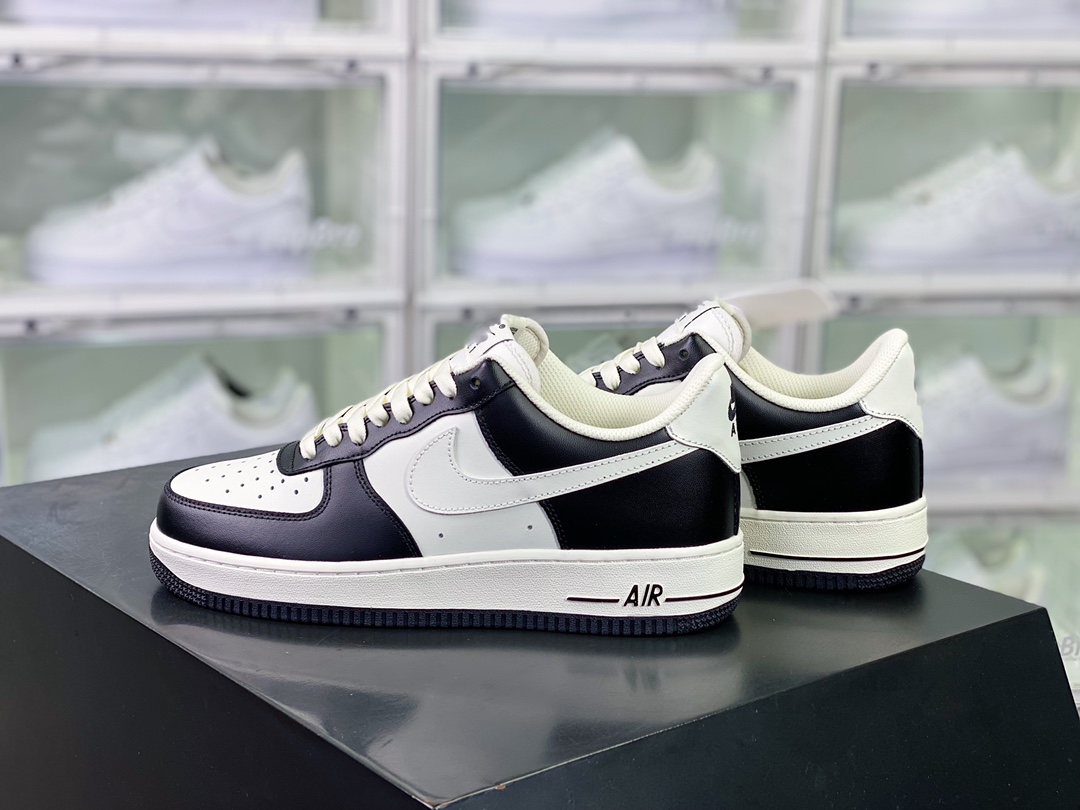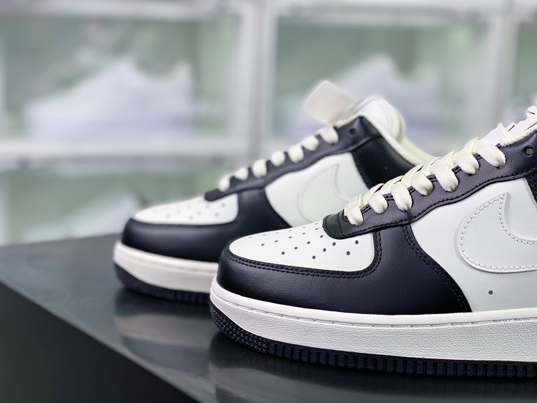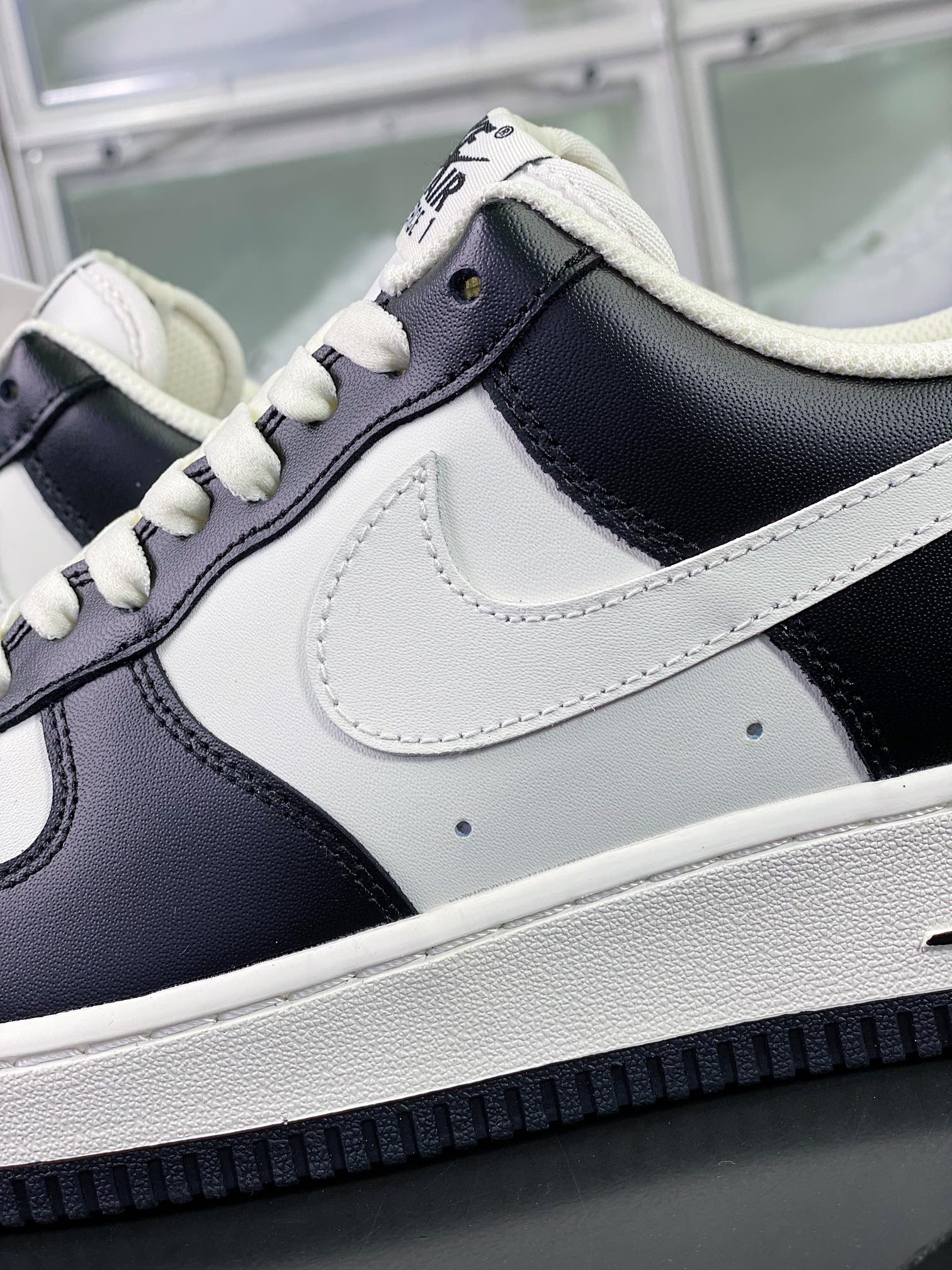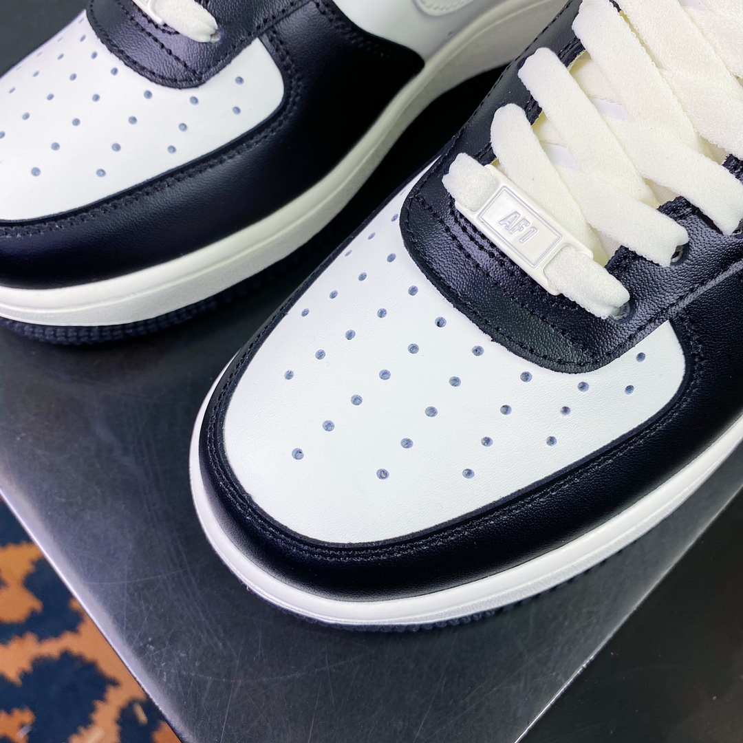 H0 男女鞋真标带半码采用硬质粒面牛剖皮革鞋面材质内置全掌air sole气垫自由自造,By You专属定制个性鞋款,耐克Nike By You Air Force 1’07 Low Retro SP空军一号低帮经典百搭休闲运动板鞋“皮革黑奶白熊猫”FG5969- F5 6