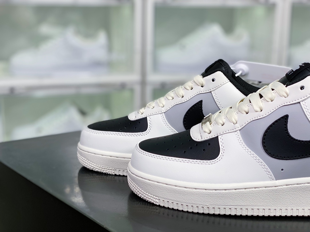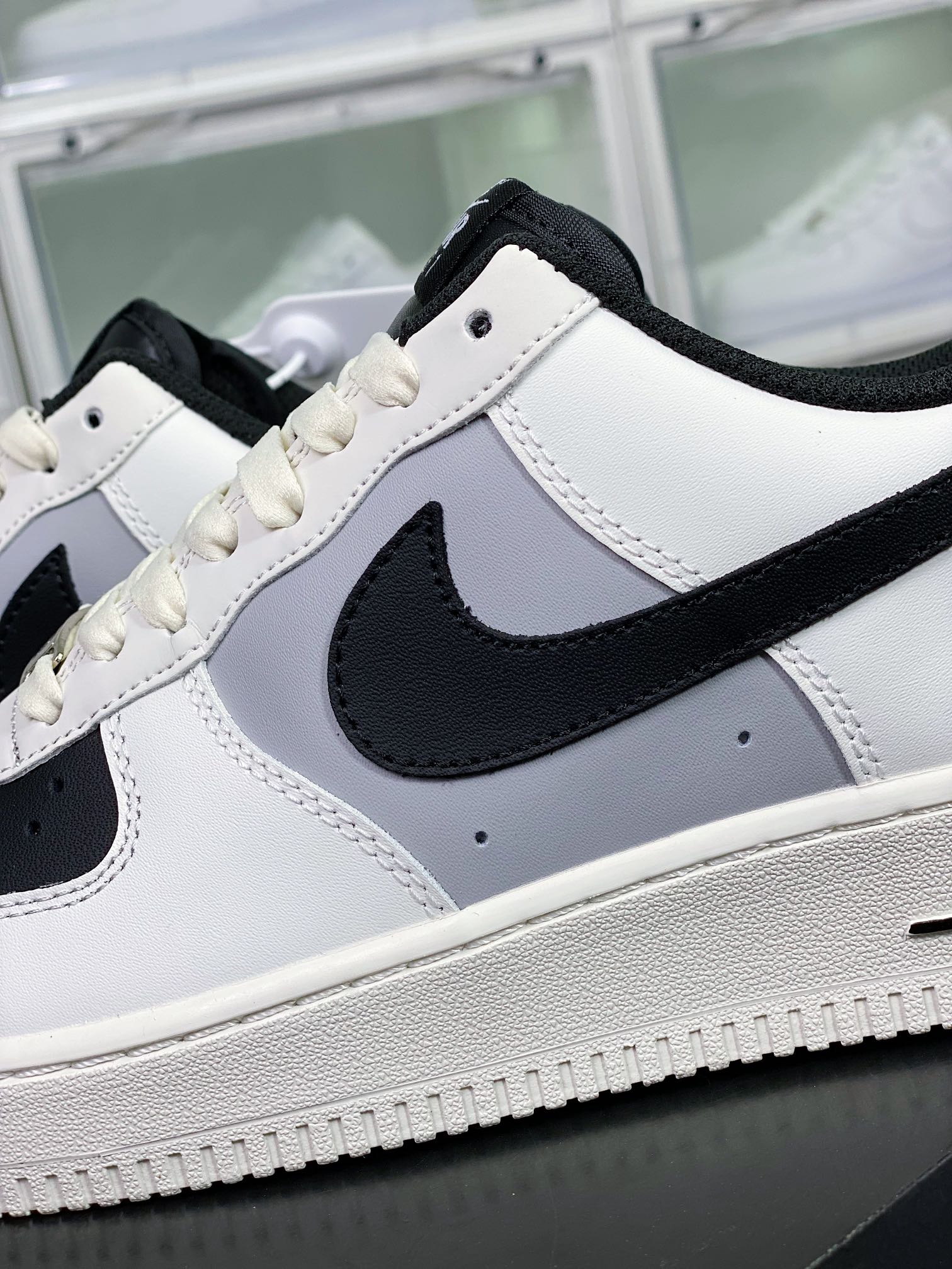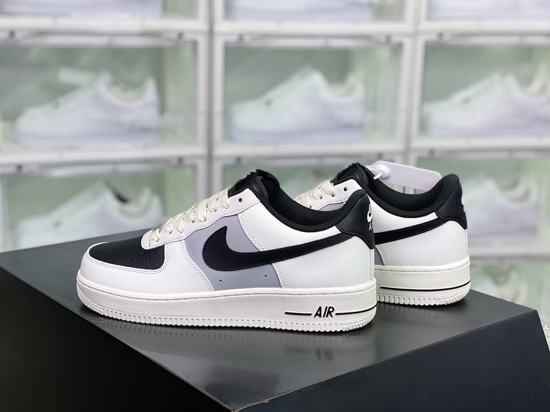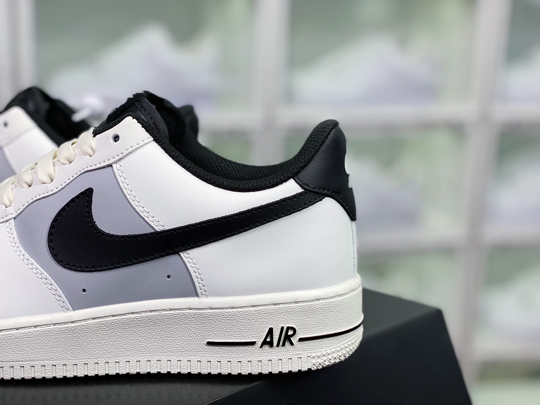 H0 男女鞋真标带半码采用硬质粒面牛剖革鞋面材质内置全掌Air Sole气垫耐克Nike Air Force 1 ’07 Low”Pale White/Grey/White”空军一号经典低帮百搭休闲运动板鞋“皮革拼接米白浅灰黑”RS2696-112