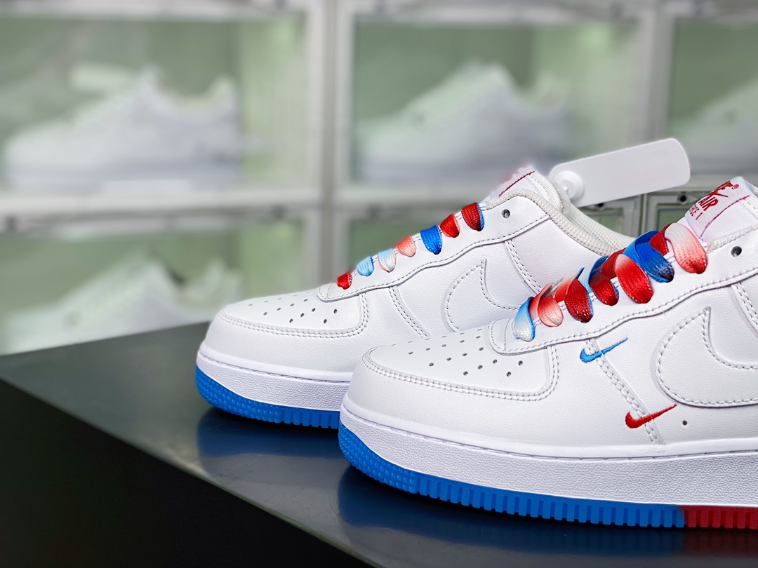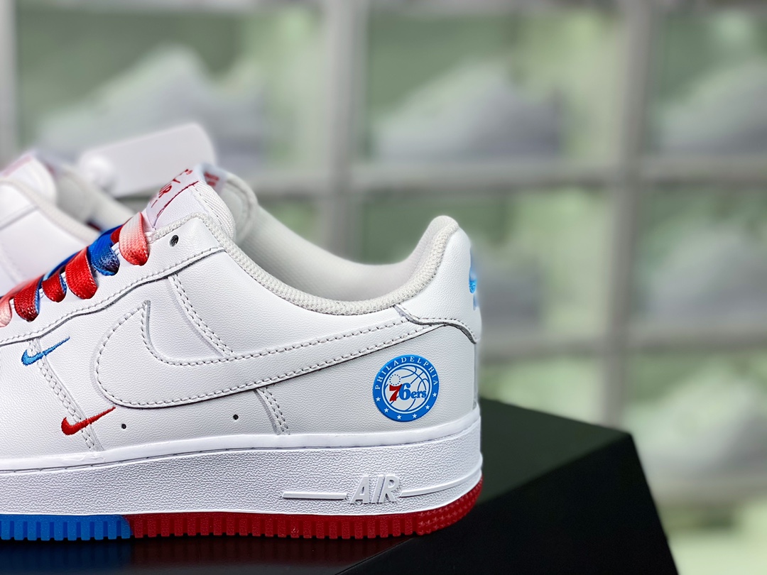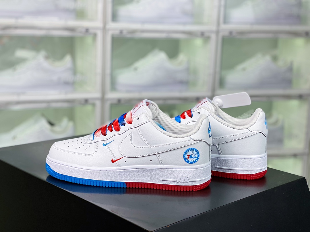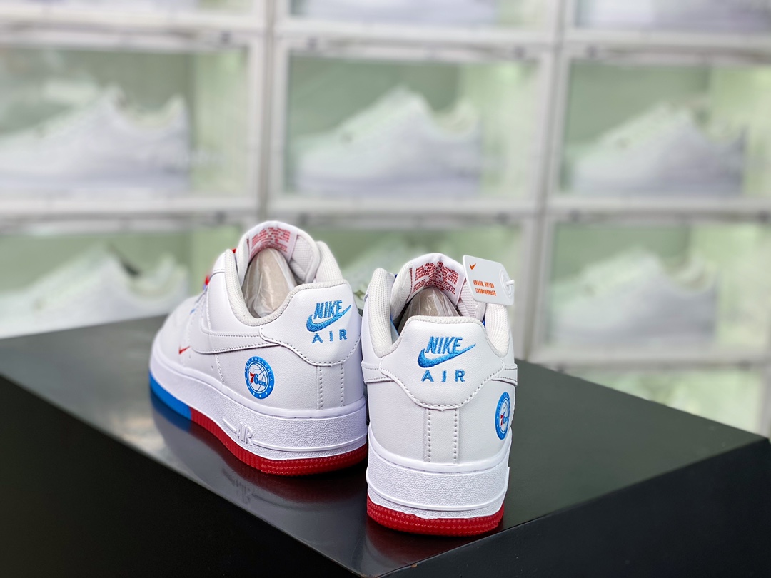 H0 男女鞋真标带半码采用软质粒面牛剖皮革鞋面材质内置全掌air sole气垫NBA费城76人队Philadelphia 76ers限定配色,耐克Nike Air Force 1’07 Low QS”White/Sky Blue/Red/Philadelphia 76ers”空军一号经典低帮百搭休闲运动板鞋“白天蓝红迷你双钩子”AI5958- I5
