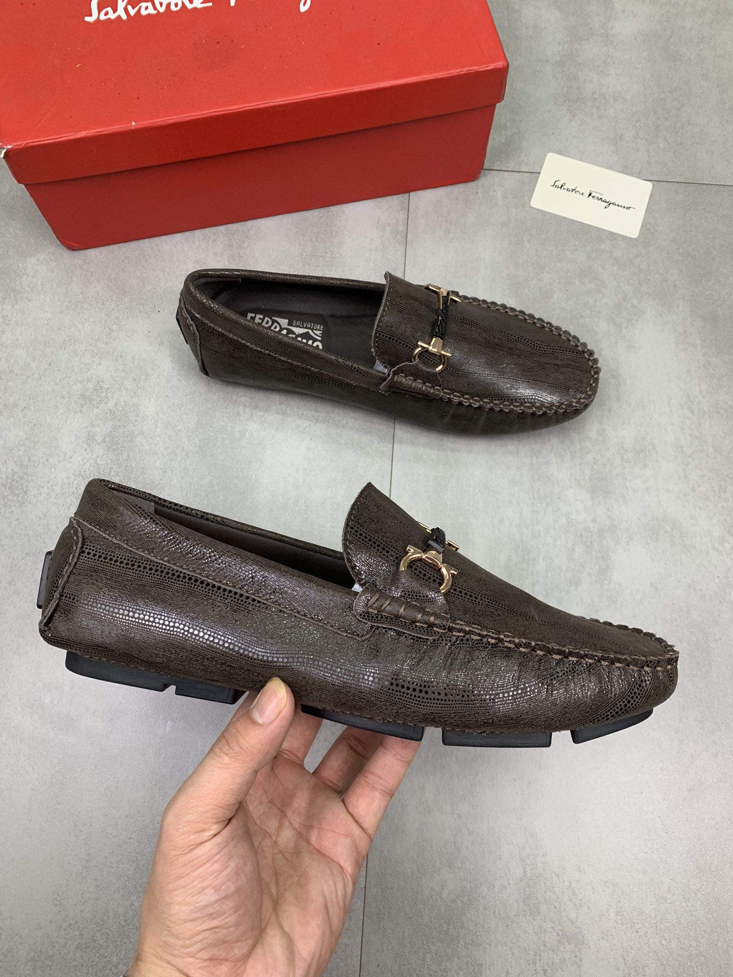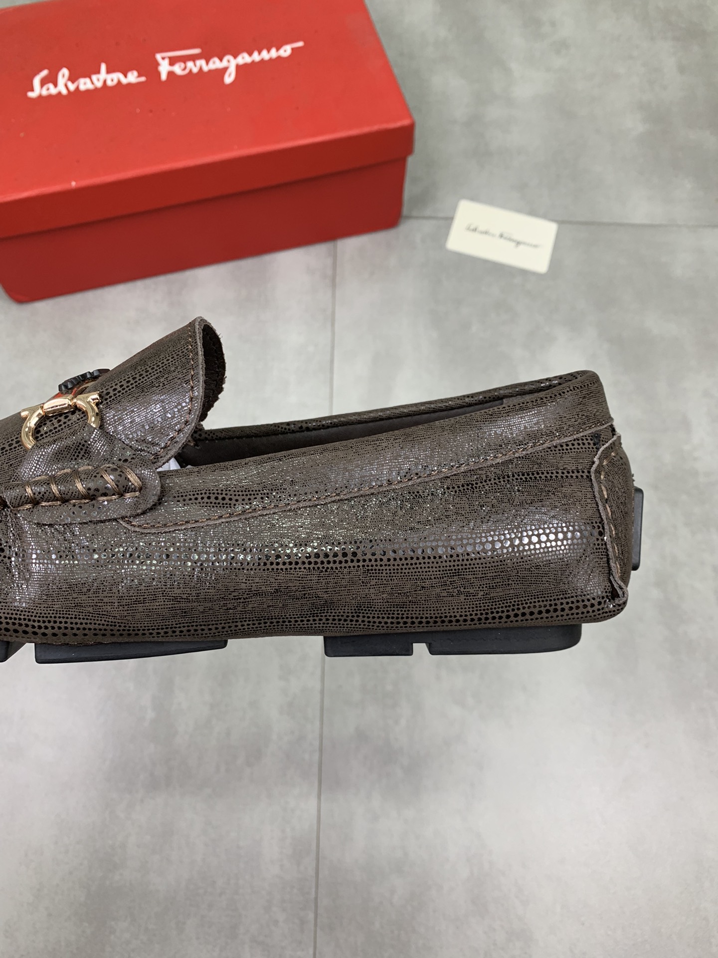 I0 牛里 Ferragamo菲拉格慕香港高品质豆豆鞋。懒人套脚乐福款 此款面料采用进口顶级意大利头层牛皮配原版五金全头层牛皮内里 里更为高档 原版防滑耐磨橡胶大底驾车唯一选择,