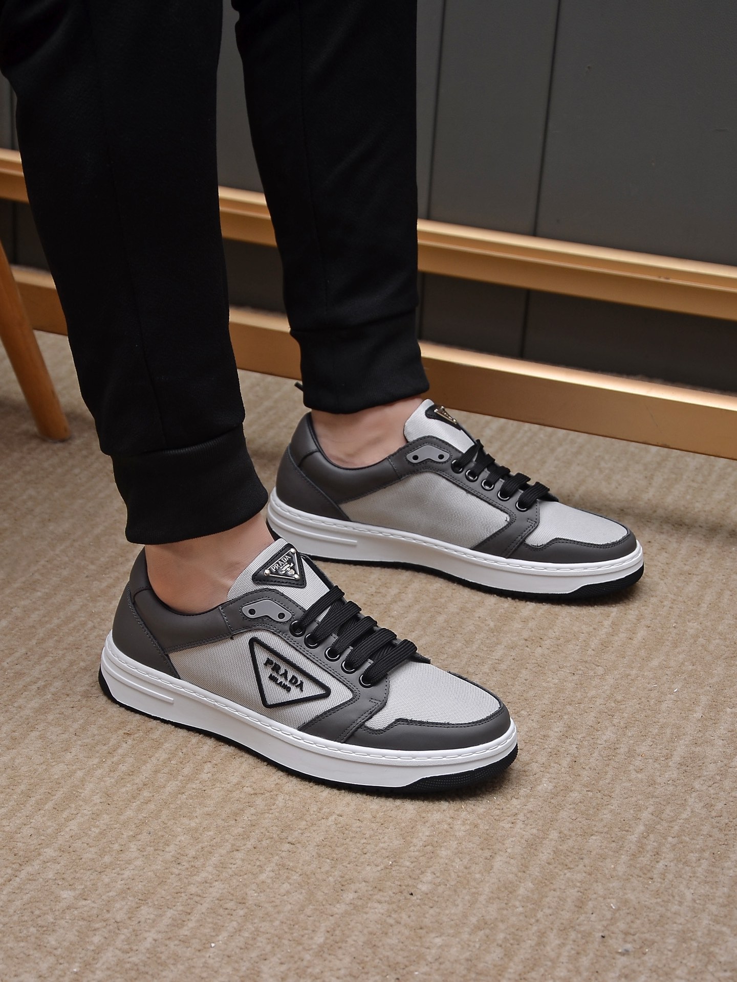 I0 Prada普拉达 男士最新休闲鞋全进口头层小牛皮配防水布料,内里采用透气羊里;绝对的奢华打造,橡胶耐磨大底,舒适感爆棚。独特的设计理念,引领时尚新概念。配码:38-4445定做