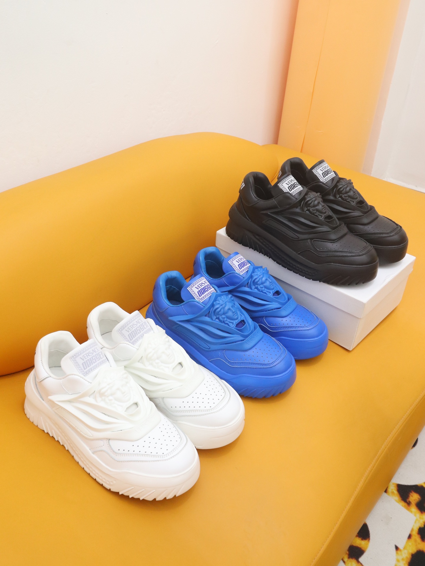 I5 全球抢购中 市场领先款 最高品质Versace 范思哲VERSACE~独领风骚2022经典低帮懒人款,瓦莎琪压花纹 鞋面LOGO更是重金精心打造 材料:进口头层小牛皮,羊皮内里 欧美大师独特版面设计 完美打造专柜品质 耐磨仿滑原版大底 青年乐福款 休闲运动板鞋超级舒服。Versace 范思哲原版复刻 适合司机驾车外出 .男鞋