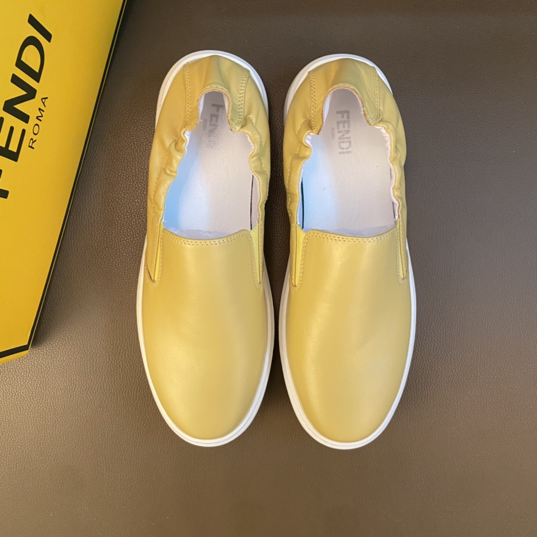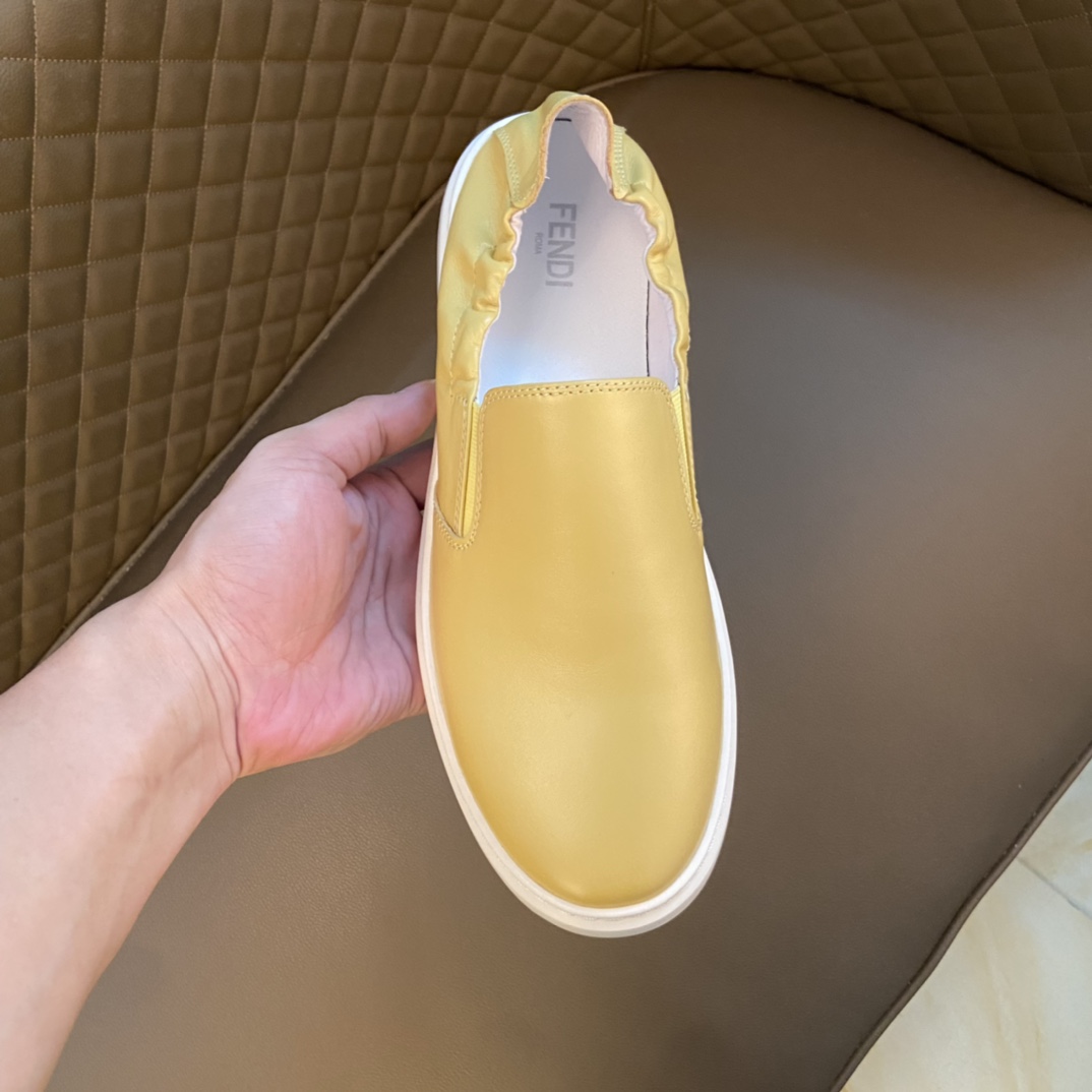 I5 原单 Fendi 芬迪 意大利进口头层牛皮鞋面细腻厚实看得到头层水染羊皮内里鞋垫logo清晰、立体磨砂后跟原厂特供 Fendi 芬迪 大底户外司机驾车鞋 可随意进出专柜、码数Size:38-44 45码定制 黑色 黄色白色 可选 供实体店长期补货