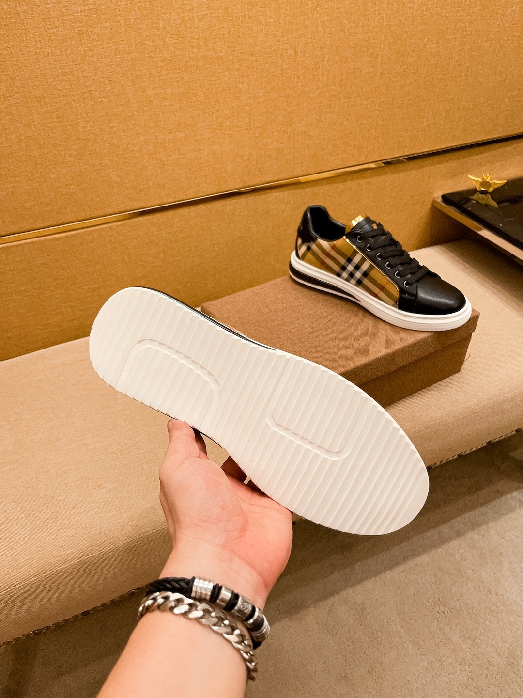 I5 巴宝莉 Burberry 男鞋高端品牌 官网1:1最新力作:鞋面采用意大利进口头层牛皮搭配布料舒适透气内里原版防滑耐磨大底制作,让行走更加便捷舒适,惊世之作,与官方的质量相比美的1:1复刻[色]打造时尚个性衬托你的与众不同潮男必备!经典