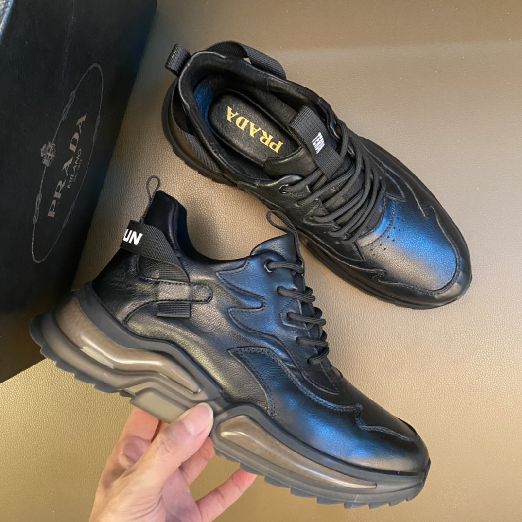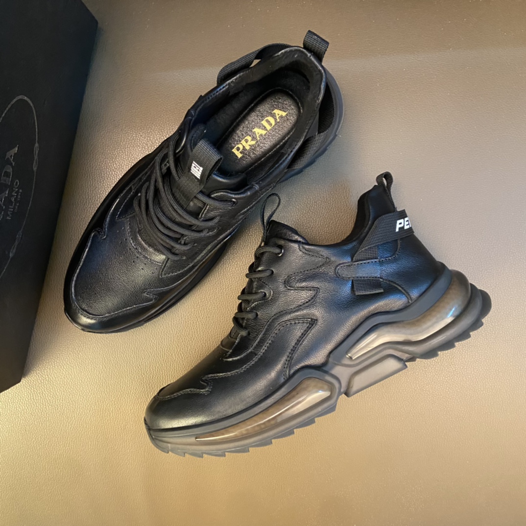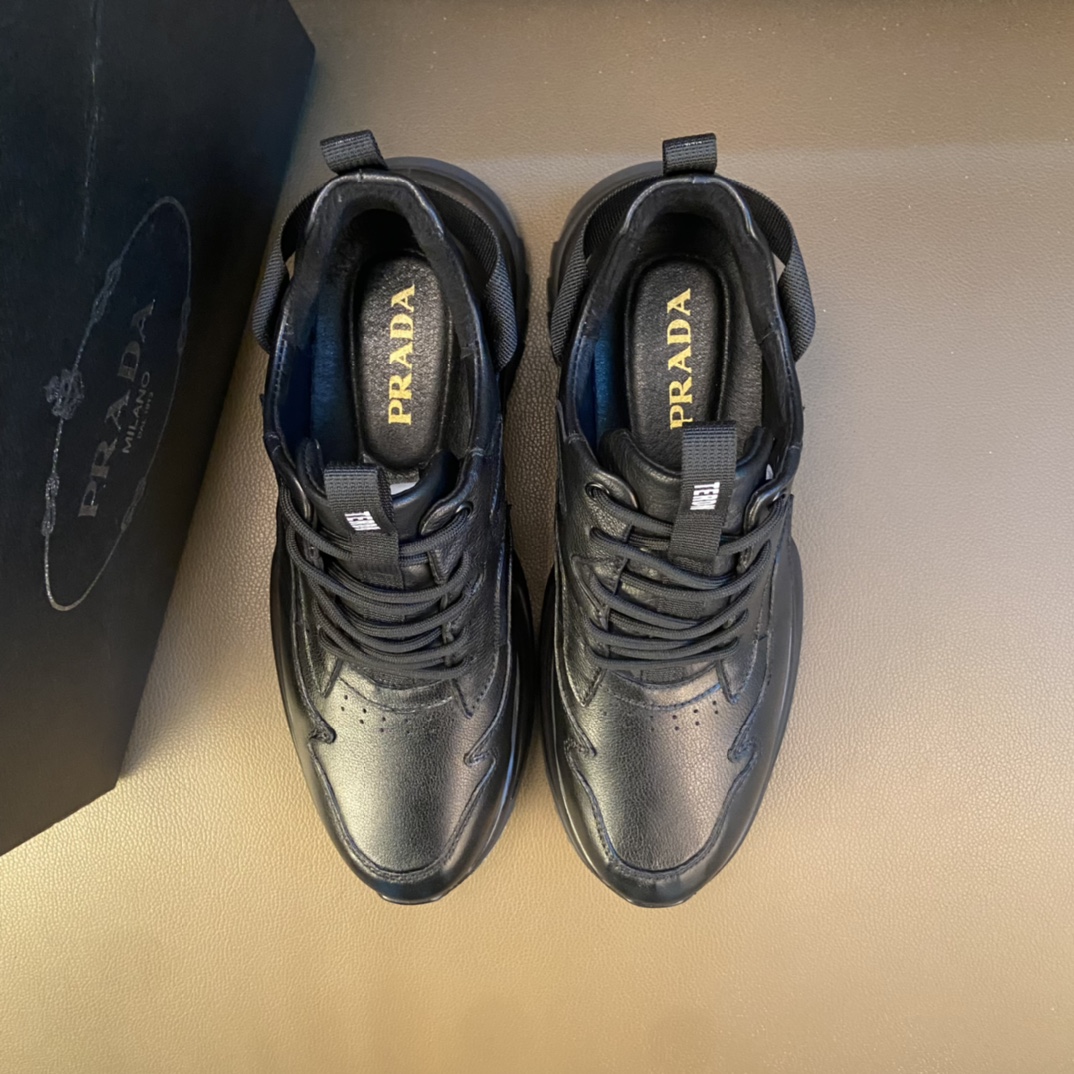 I5 普拉达~独特现代风运动鞋。专柜代购休闲鞋 男士2022专柜同步发售,意大利进口原版品牌精选头柔软牛皮原版材质制作而成,原版内里 拒绝脱色磨脚鞋底:原厂特供原版底, 超酷 法国懒人风格设计 懒人套脚套脚 原单品质 超舒服原版底 。 适合户外司机驾车完美男鞋码数:38-44 45码可定做黑色 选