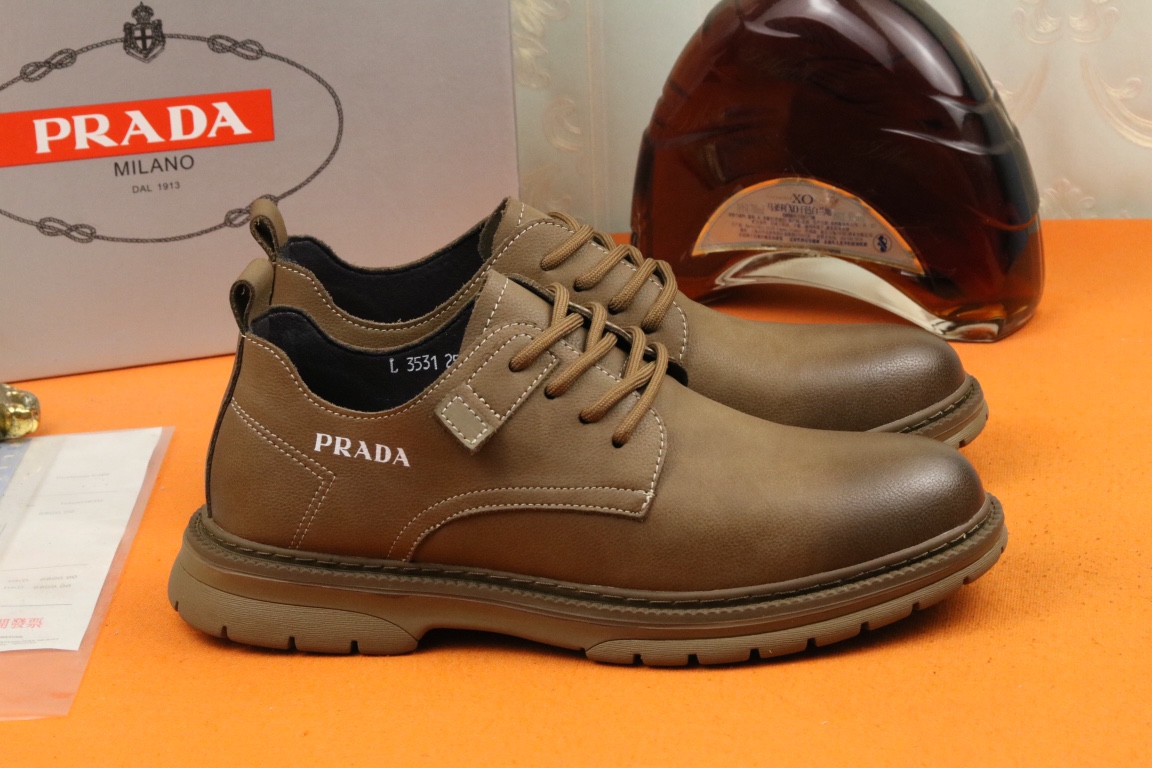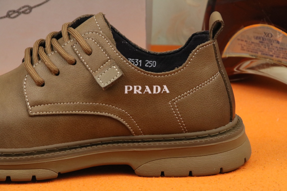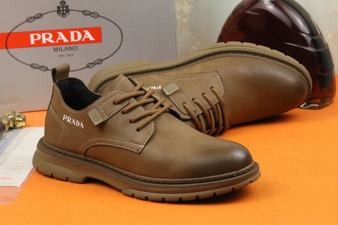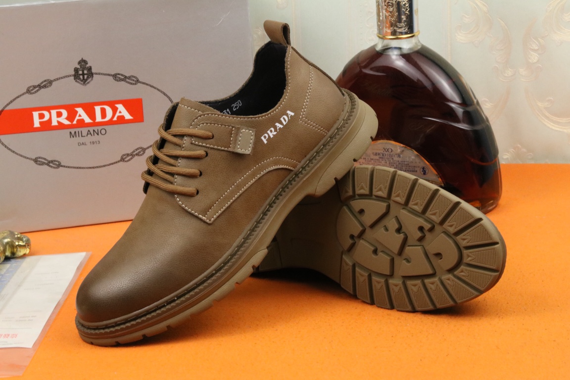 I5 高品质普拉达官网最新休闲皮鞋,顶级原单货, ,精心打造,潮流时尚,绅士格调,鞋面采用进口头层磨砂牛皮,透气猪皮里,防滑牛筋大底, 时尚舒适。