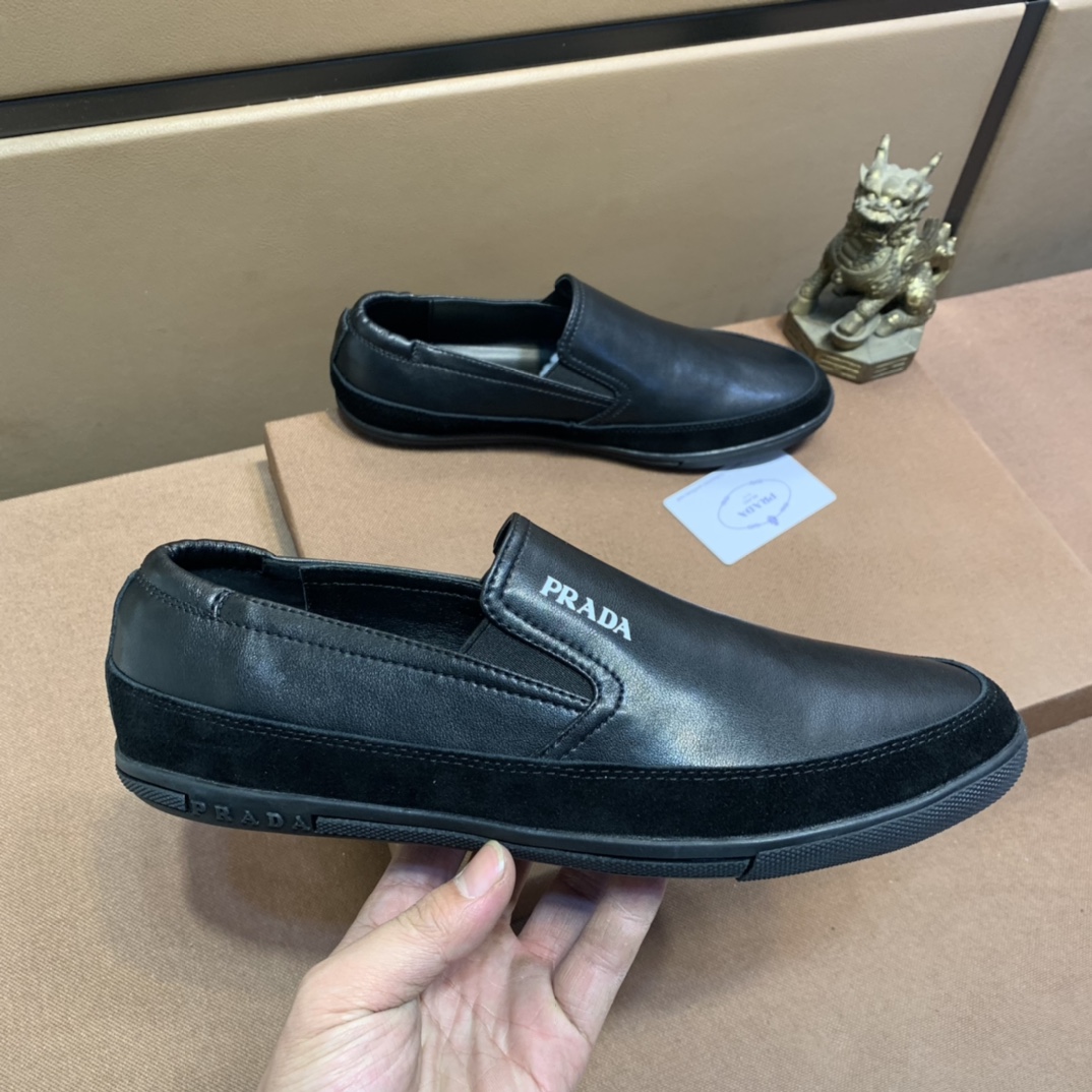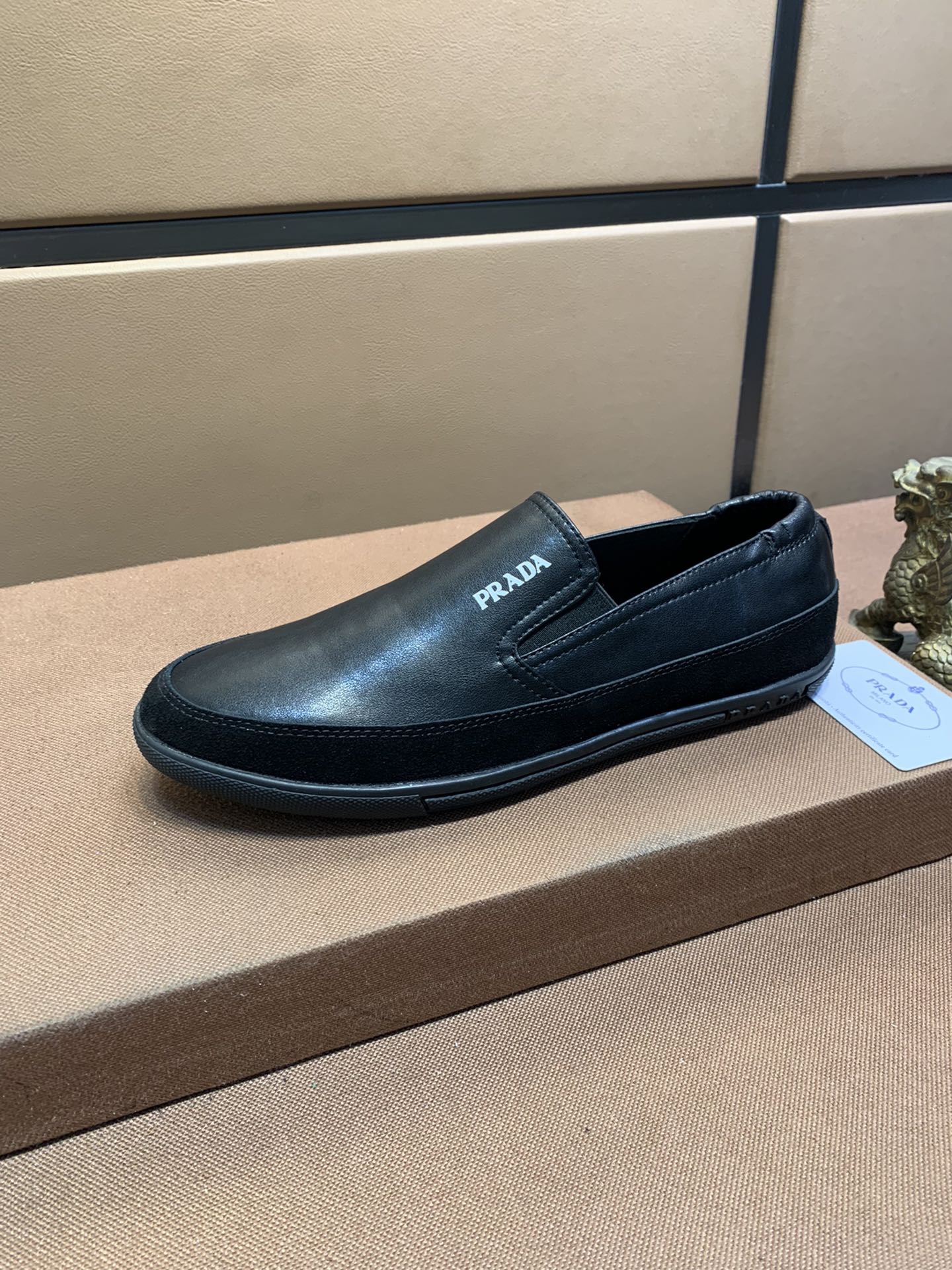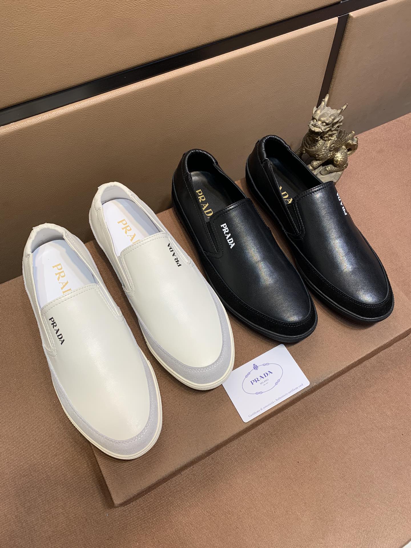 I5 高品质羊里PRADA普拉达2022男鞋官网经典最上市了1:1复制,香港专柜同步,走秀同台;全部采用小牛皮进口柔软舒适羊皮内里、橡胶大底原版1:1防滑耐磨;着脚舒适、款式耐看,做工精细,配以简洁利落的鞋楦,彰显男人的果敢和硬朗,码数38一44;黑色 白色颜色选