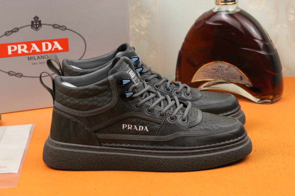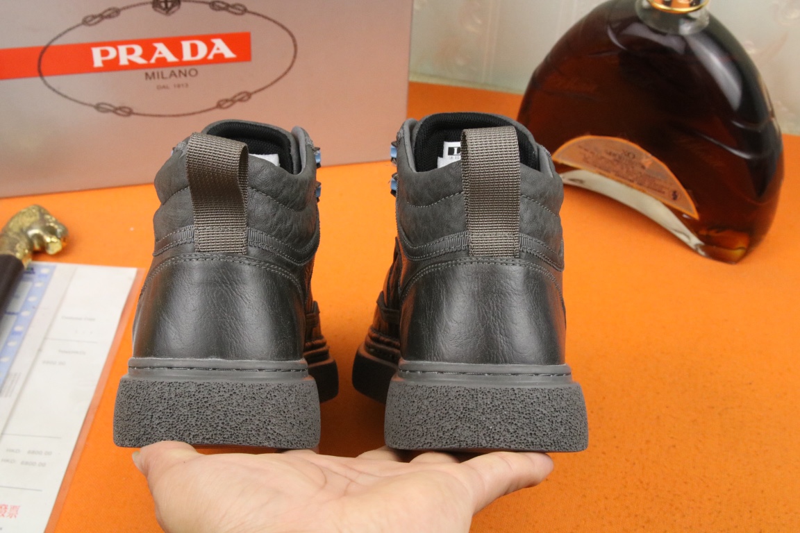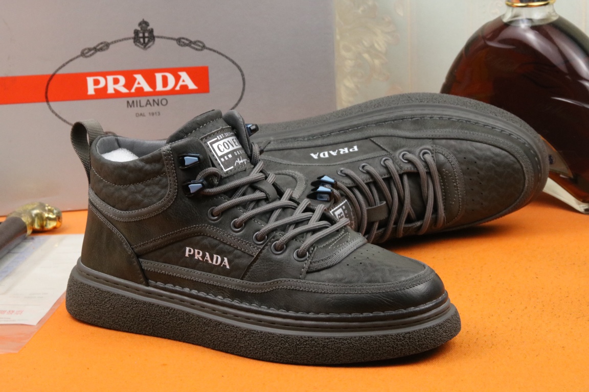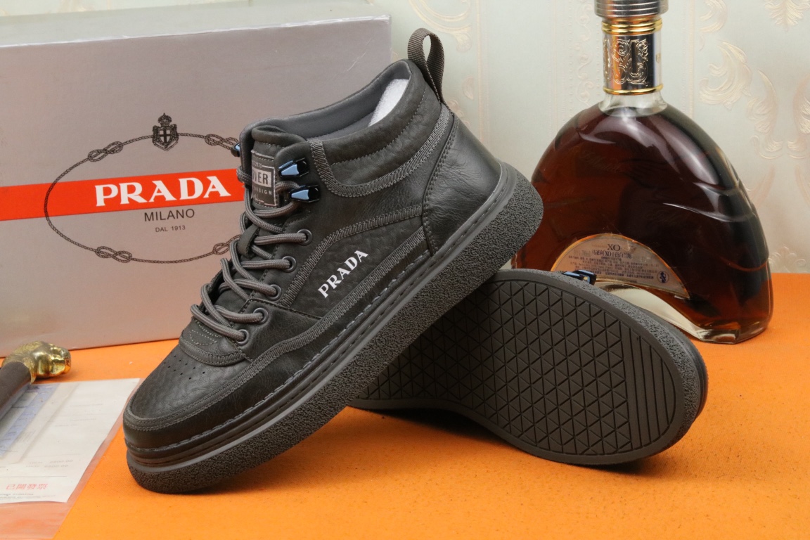 I5 高品质PRADA普拉达上市著名奢侈品牌,专柜同步更新,意大利男鞋时尚杂志季刊封面主推款鞋面采用意大利进口头层牛皮,舒适羊皮内里。原版防滑橡胶大底,上脚舒适有型。 细节无可挑剔。码数38-43