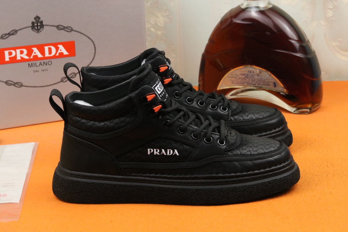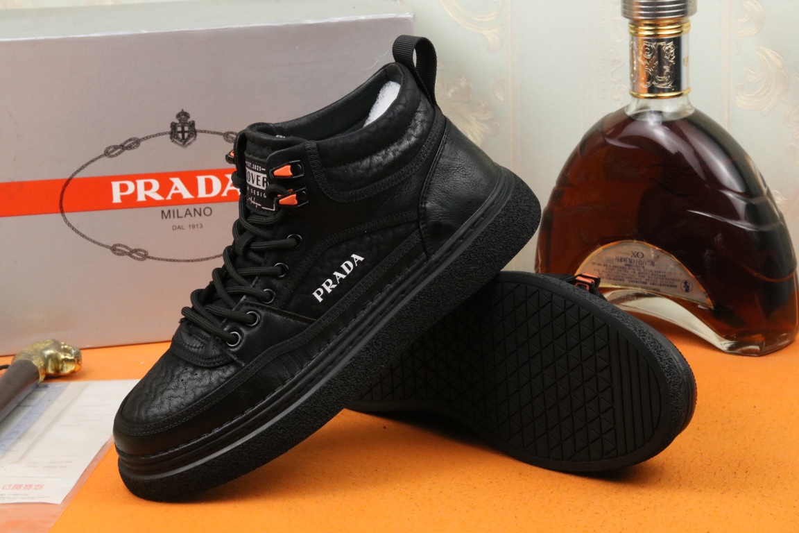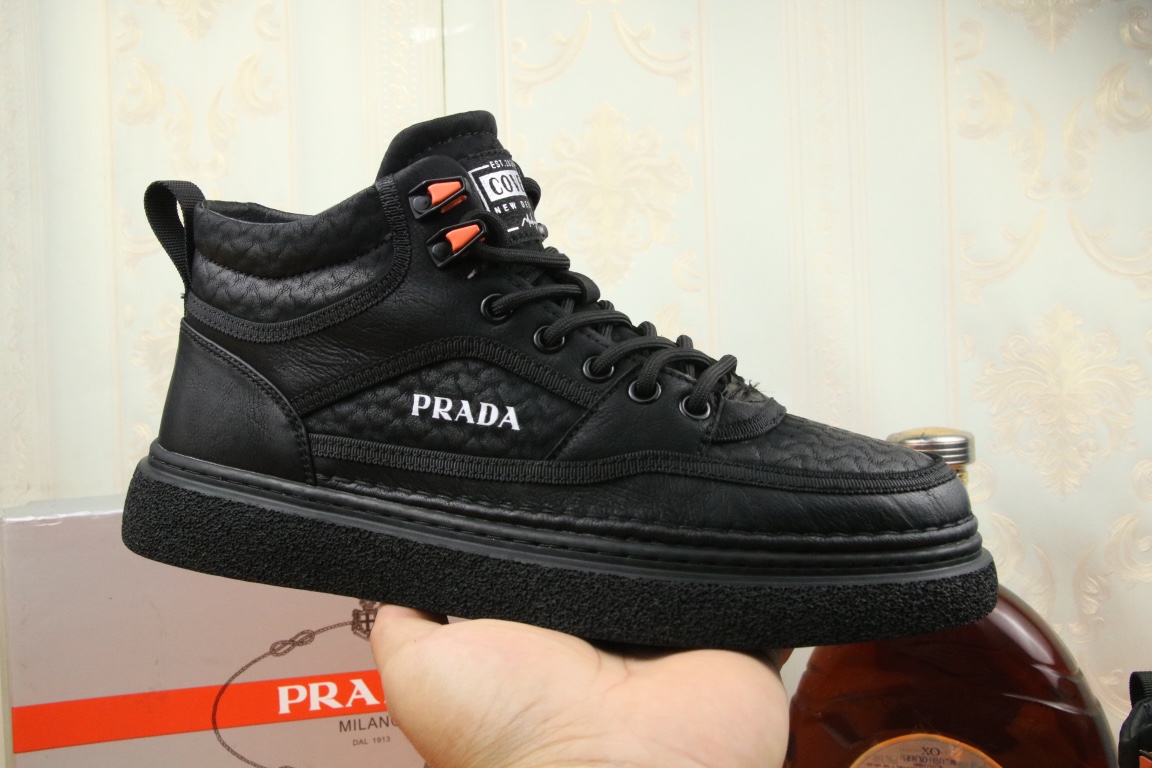 I5 高品质PRADA普拉达上市著名奢侈品牌,专柜同步更新,意大利男鞋时尚杂志季刊封面主推款鞋面采用意大利进口头层牛皮,舒适羊皮内里。原版防滑橡胶大底,上脚舒适有型。 细节无可挑剔。码数38-43