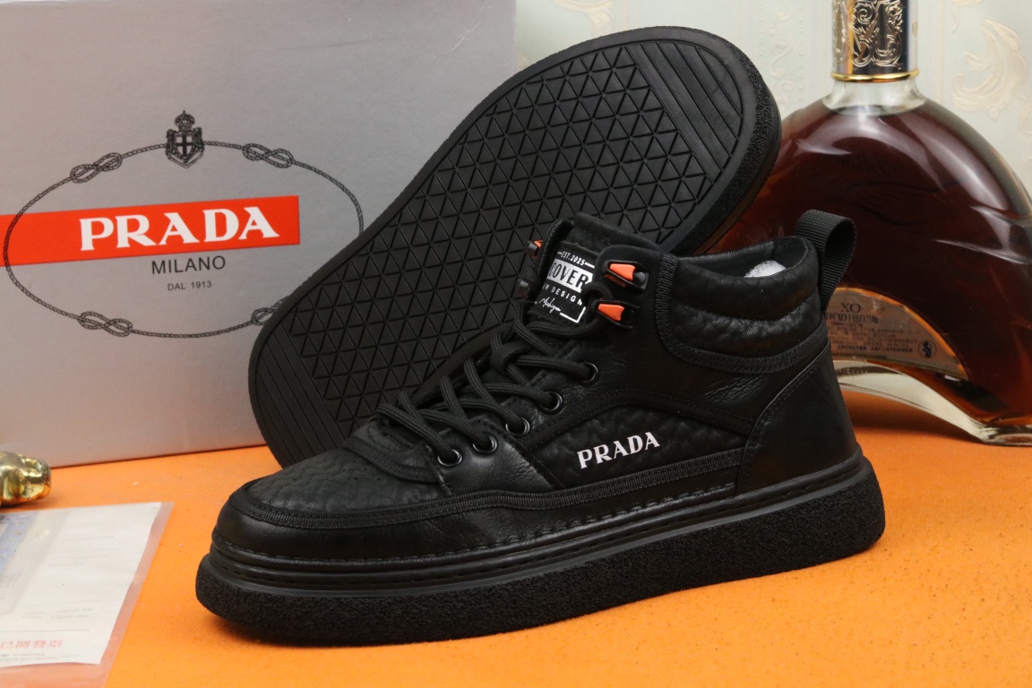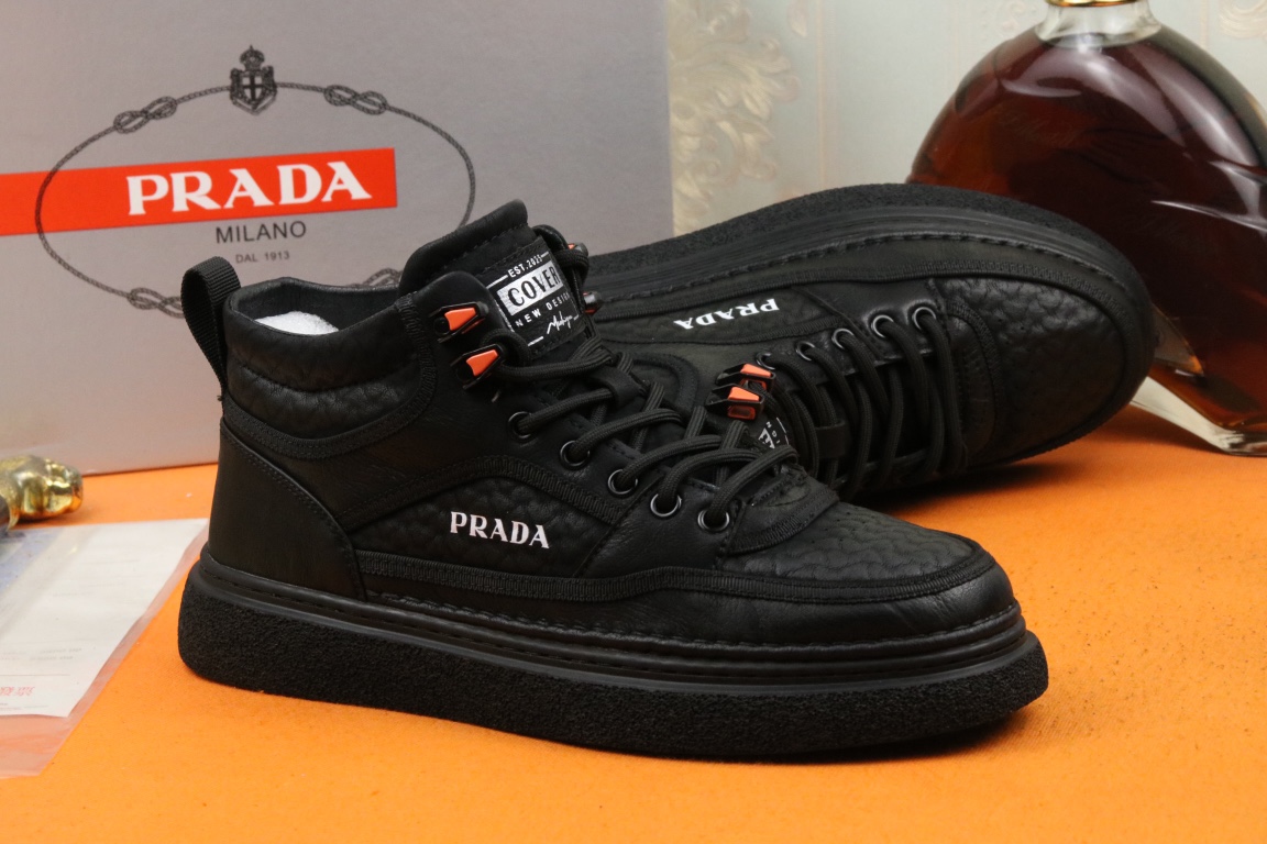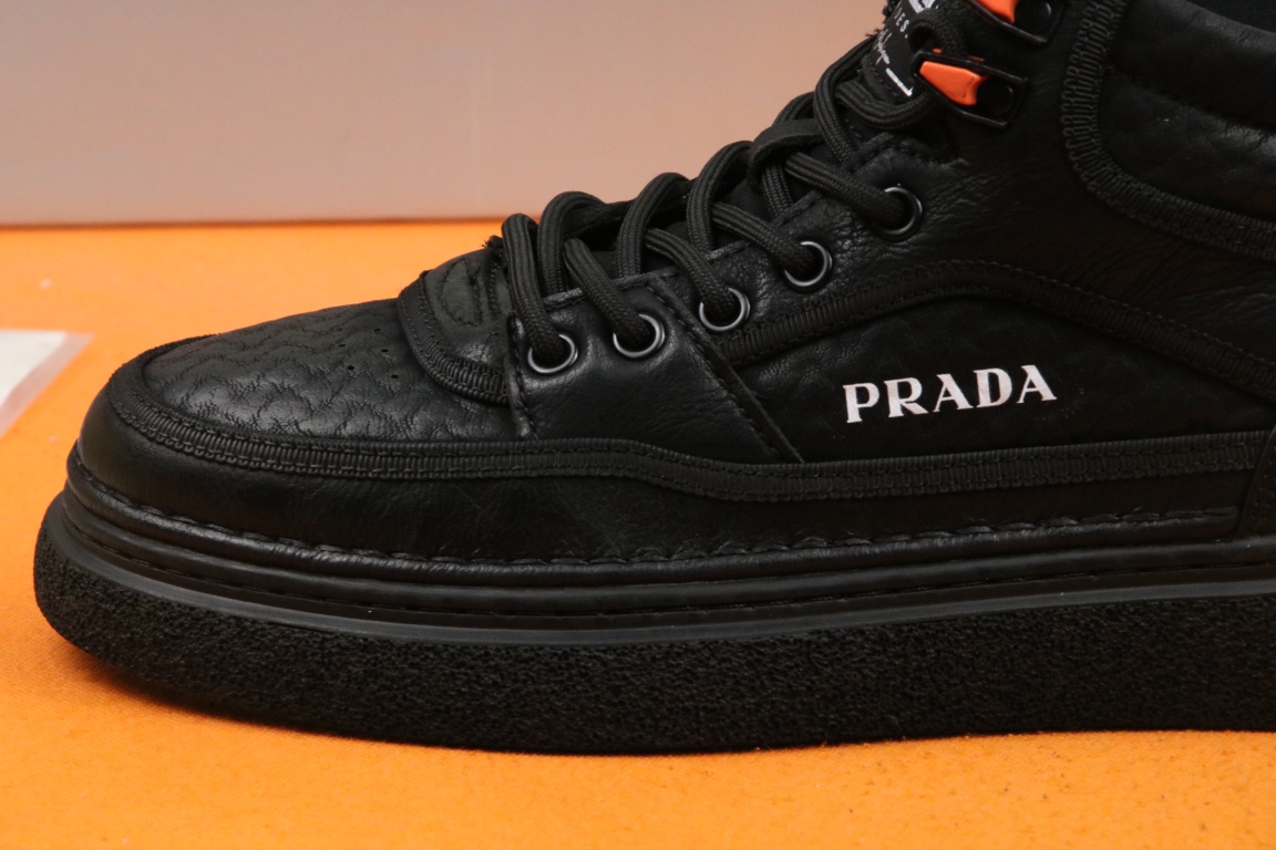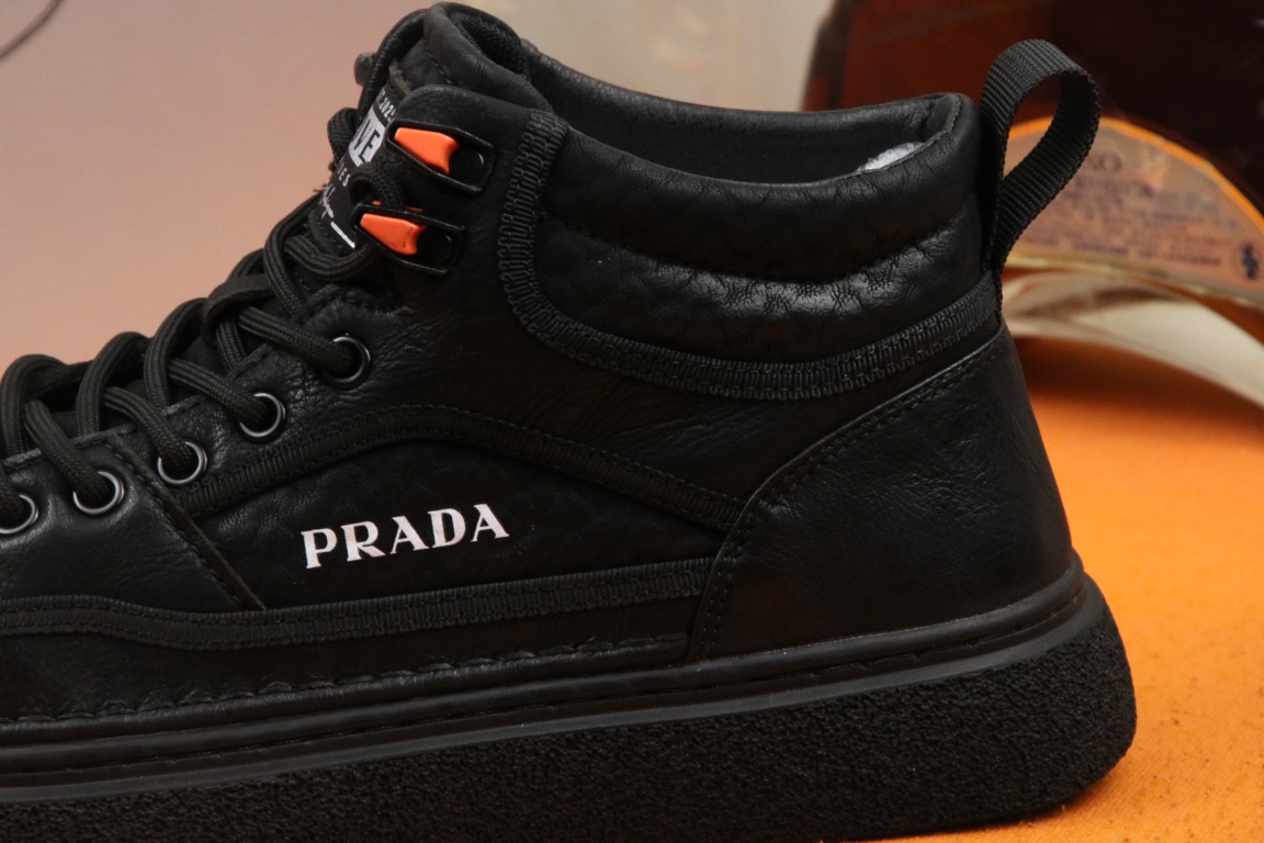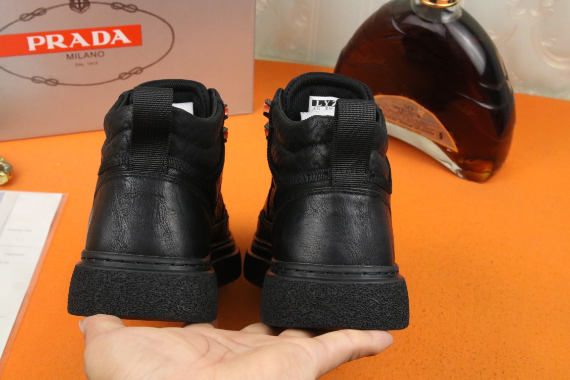 I5 高品质PRADA普拉达上市著名奢侈品牌,专柜同步更新,意大利男鞋时尚杂志季刊封面主推款鞋面采用意大利进口头层牛皮,舒适羊皮内里。原版防滑橡胶大底,上脚舒适有型。 细节无可挑剔。