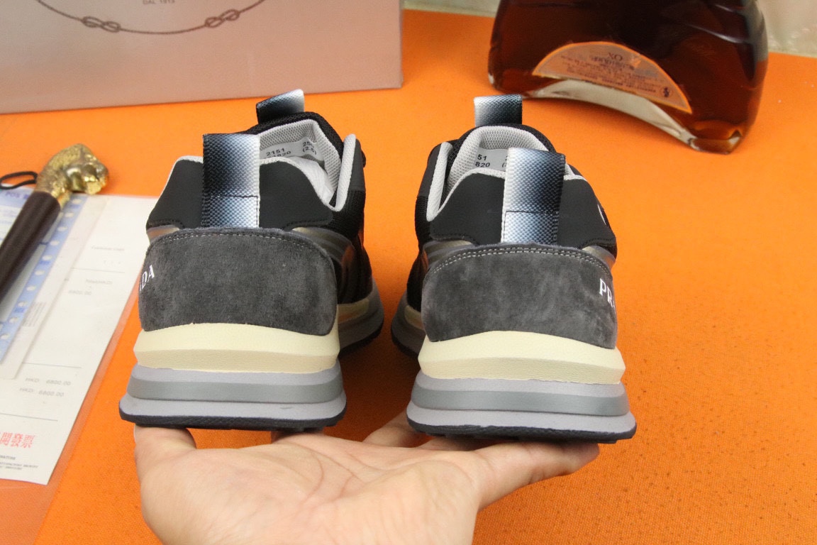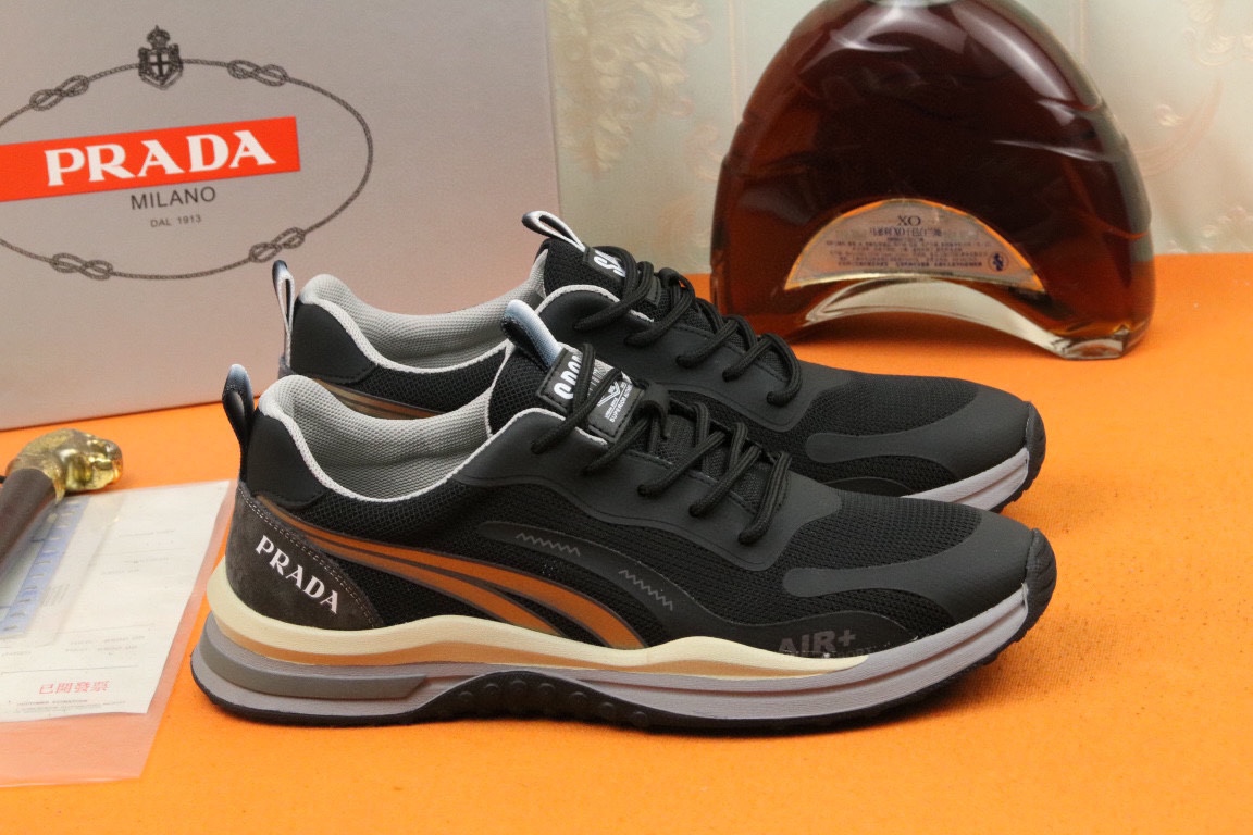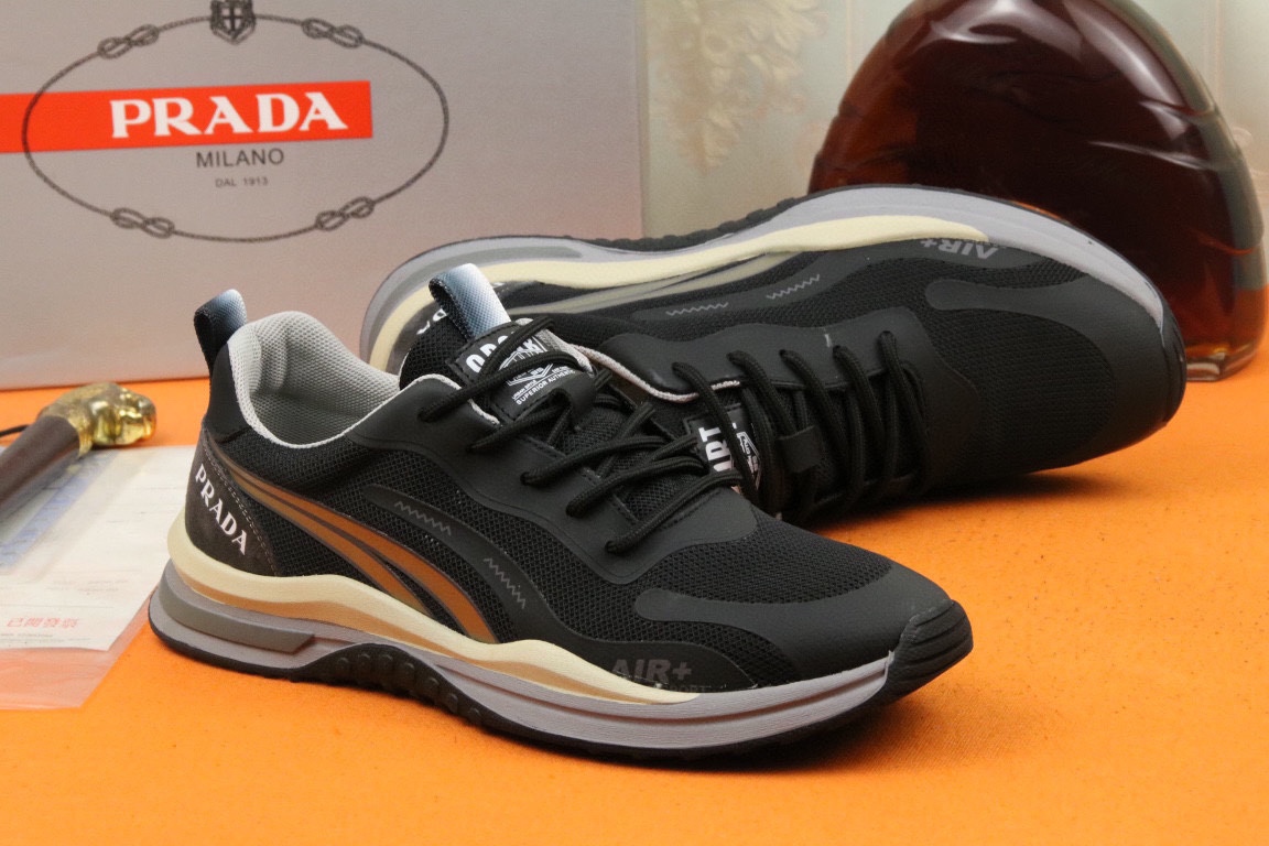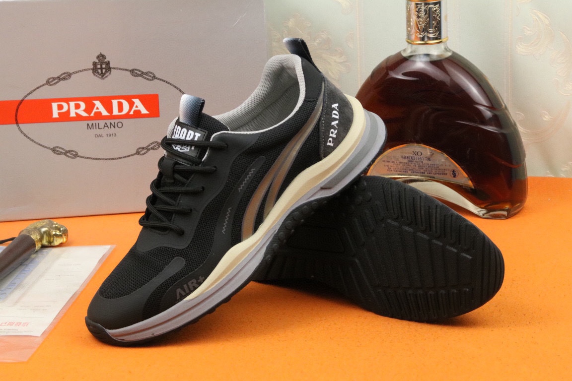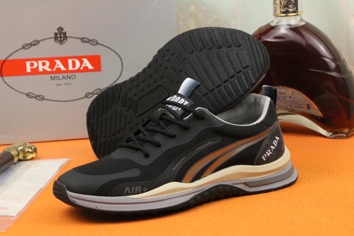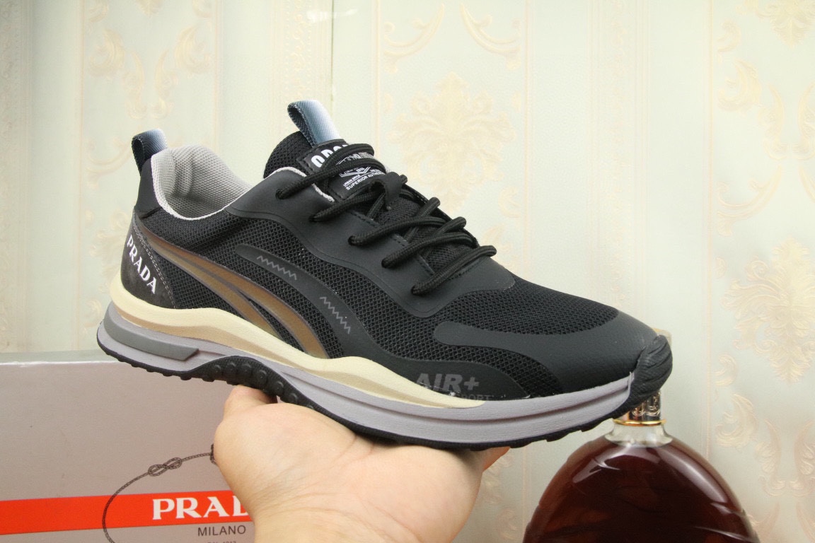 I5 高品质PRADA普拉达上市著名奢侈品牌,专柜同步更新,意大利男鞋时尚杂志季刊封面主推款鞋面采用意大利进口头层牛皮拼接网布制作,舒适透气内里。原版防滑橡胶大底,上脚舒适有型。 细节无可挑剔。码数38-43
