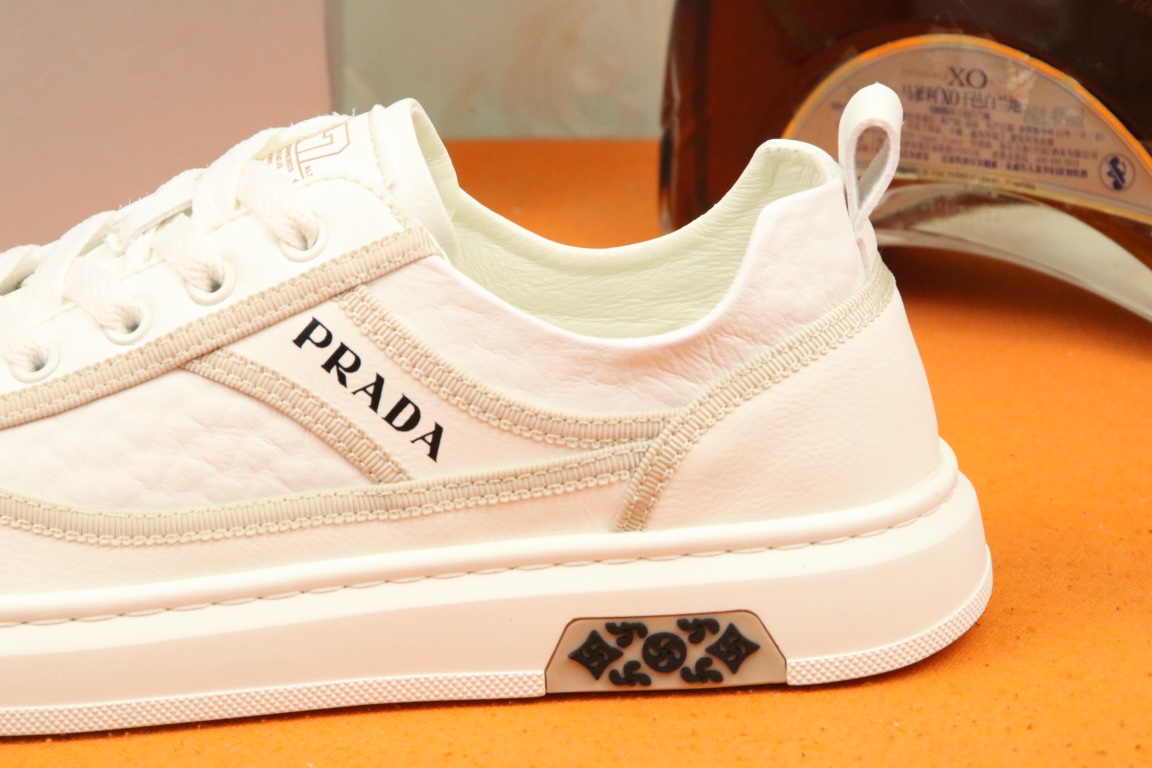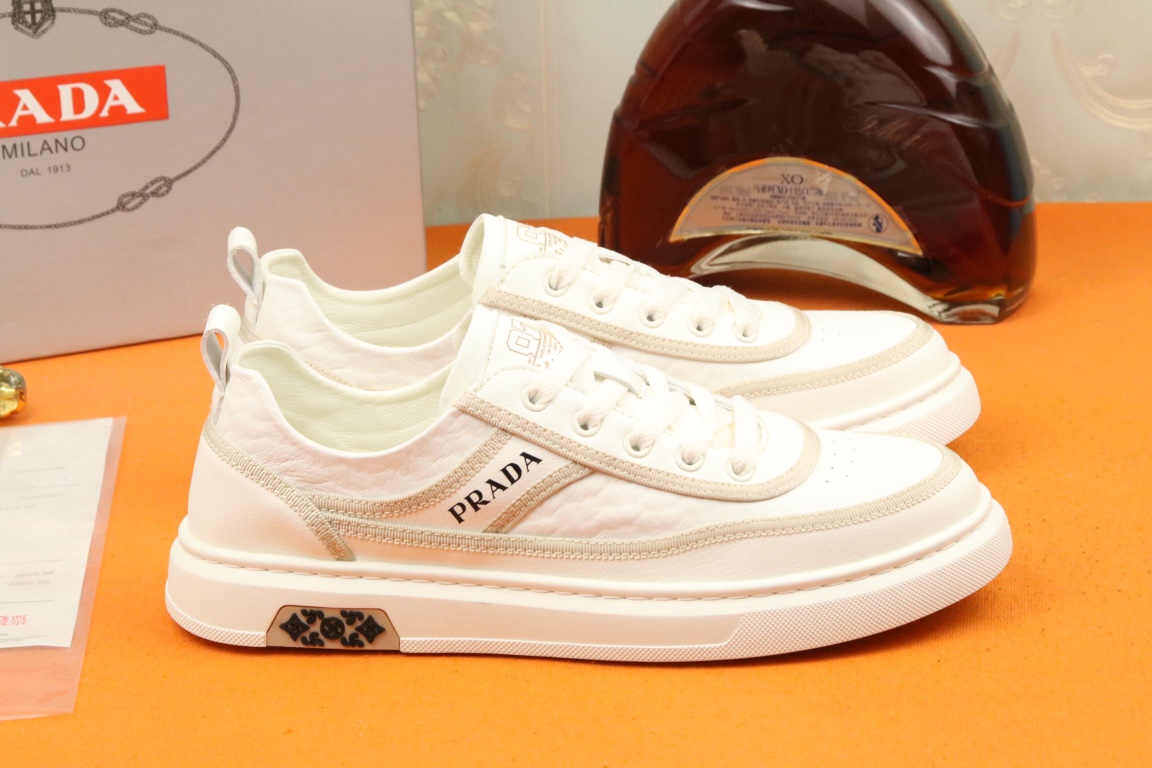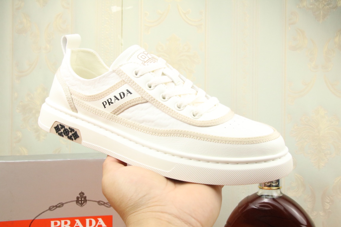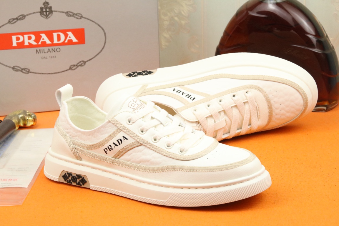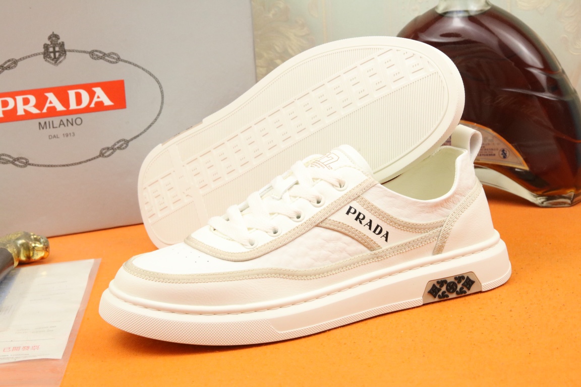 I5 高品质PRADA普拉达上市著名奢侈品牌,专柜同步更新,意大利男鞋时尚杂志季刊封面主推款鞋面采用意大利进口小牛皮,羊皮内里。原版防滑橡胶大底,上脚舒适有型。 细节无可挑剔。码数38-43