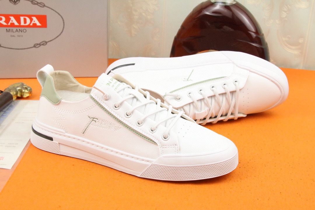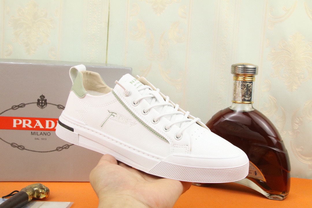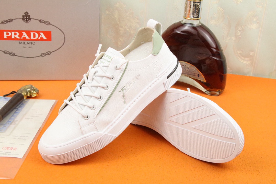 I5 高品质PRADA普拉达上市著名奢侈品牌,专柜同步更新,意大利男鞋时尚杂志季刊封面主推款鞋面采用意大利进口小牛皮,羊皮内里。原版防滑橡胶大底,上脚舒适有型。 细节无可挑剔。码数38-43