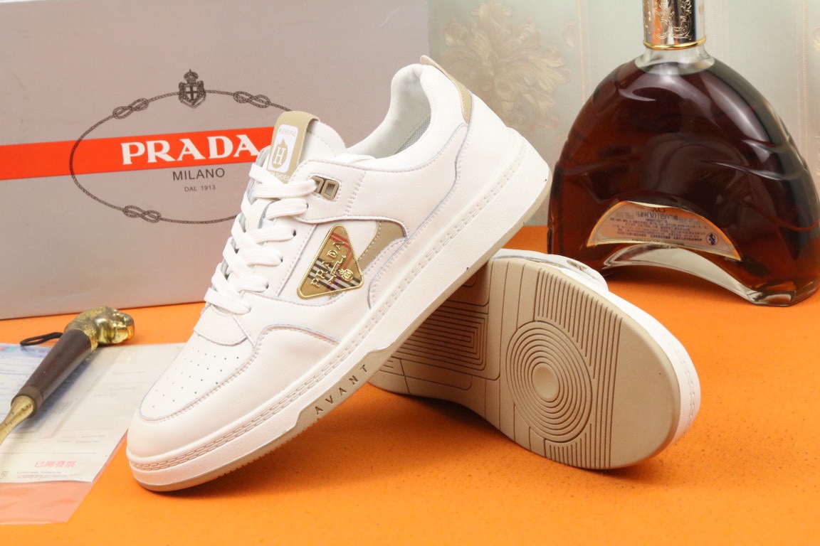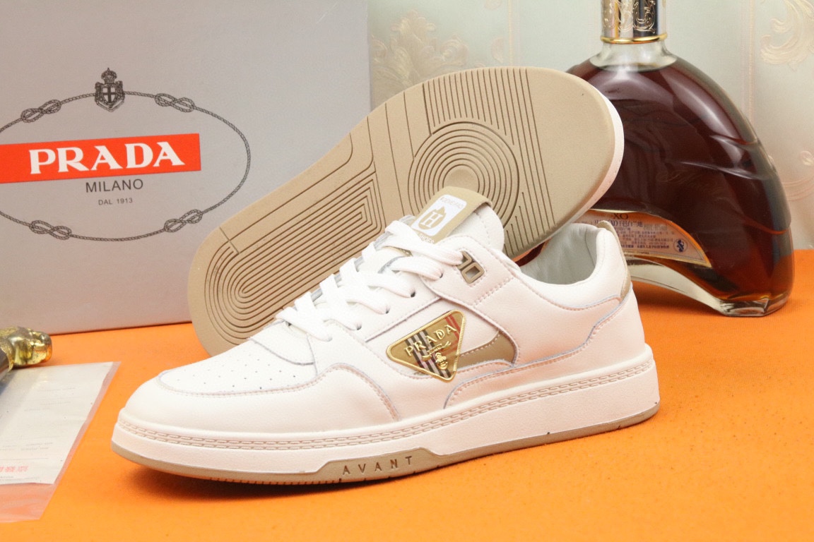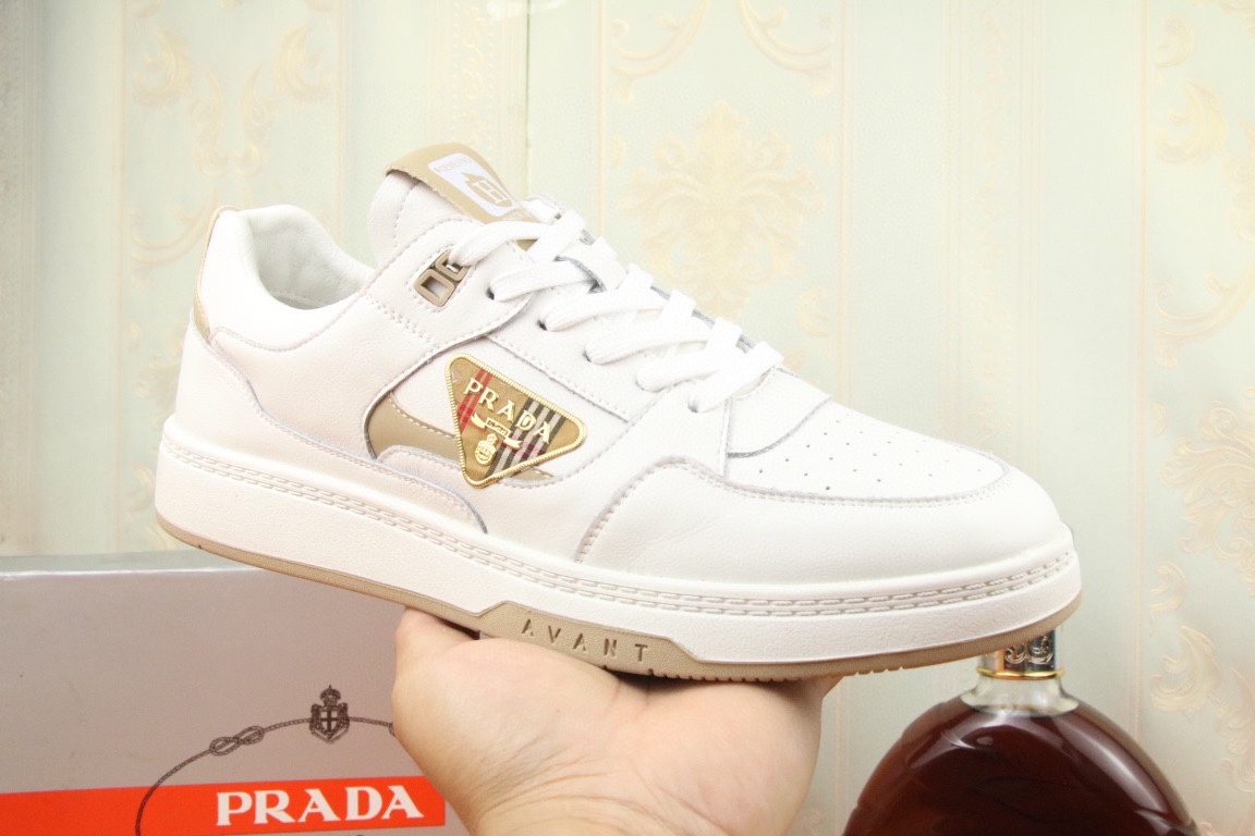 I5 高品质PRADA普拉达上市著名奢侈品牌,专柜同步更新,意大利男鞋时尚杂志季刊封面主推款鞋面采用意大利进口牛皮,透气网布内里。原版橡胶大底,上脚舒适有型。 细节无可挑剔。码数38-44