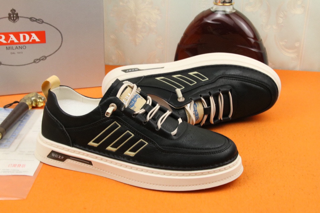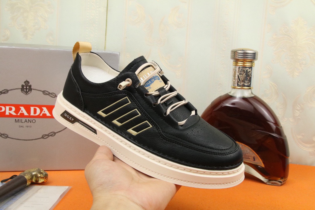 I5 高品质PRADA普拉达上市著名奢侈品牌,专柜同步更新,意大利男鞋时尚杂志季刊封面主推款鞋面采用意大利进口头层牛皮,舒适羊皮内里。原版防滑橡胶大底,上脚舒适有型。 细节无可挑剔。码数38-43