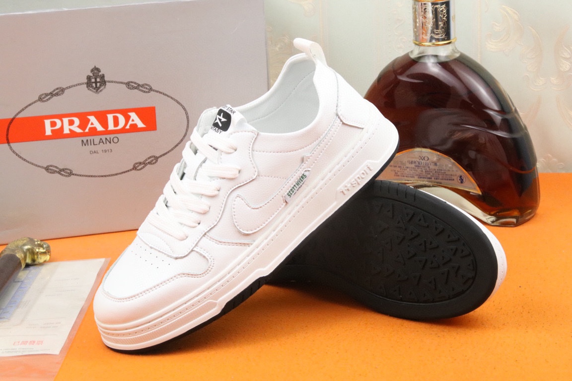 I5 高品质PRADA普拉达上市著名奢侈品牌,专柜同步更新,意大利男鞋时尚杂志季刊封面主推款鞋面采用意大利进口小牛皮,羊皮内里。原版防滑橡胶大底,上脚舒适有型。 细节无可挑剔。码数38-43