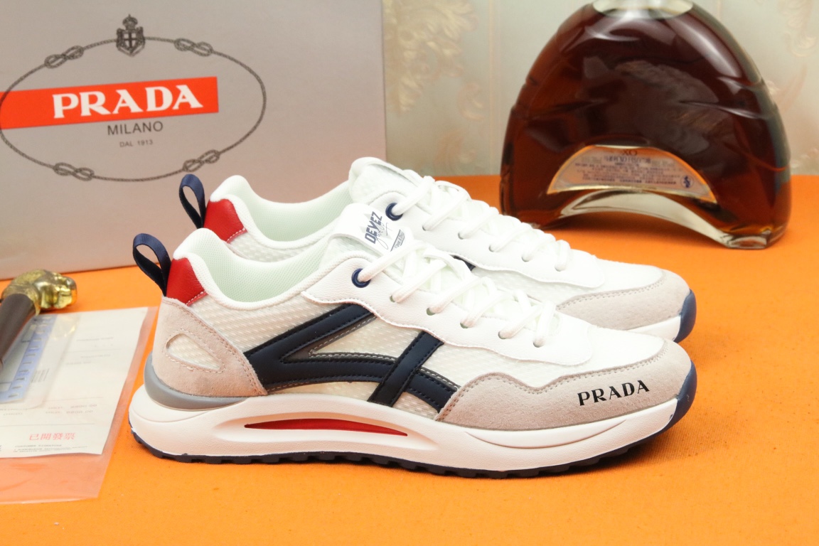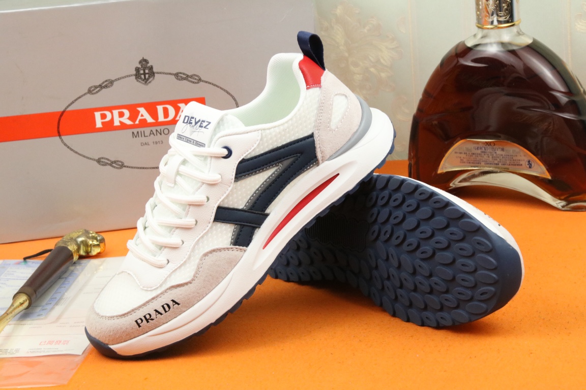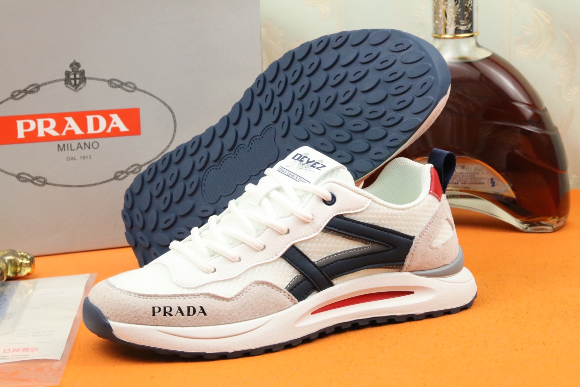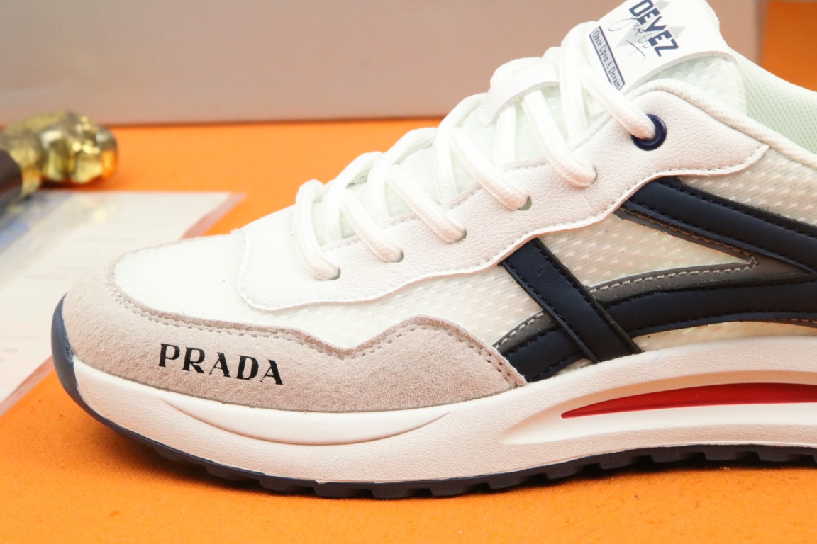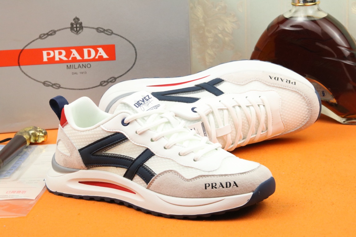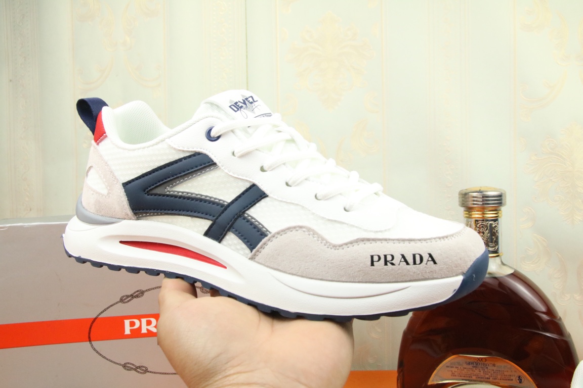 I5 高品质PRADA普拉达上市著名奢侈品牌,专柜同步更新,意大利男鞋时尚杂志季刊封面主推款鞋面采用意大利进口头层牛皮拼接网布制作,舒适透气内里。原版防滑橡胶大底,上脚舒适有型。 细节无可挑剔。码数38-43