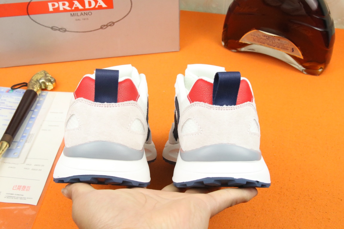 I5 高品质PRADA普拉达上市著名奢侈品牌,专柜同步更新,意大利男鞋时尚杂志季刊封面主推款鞋面采用意大利进口头层牛皮拼接网布制作,舒适透气内里。原版防滑橡胶大底,上脚舒适有型。 细节无可挑剔。