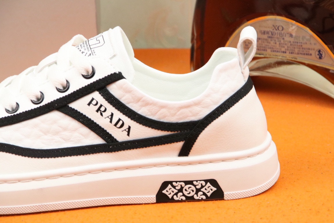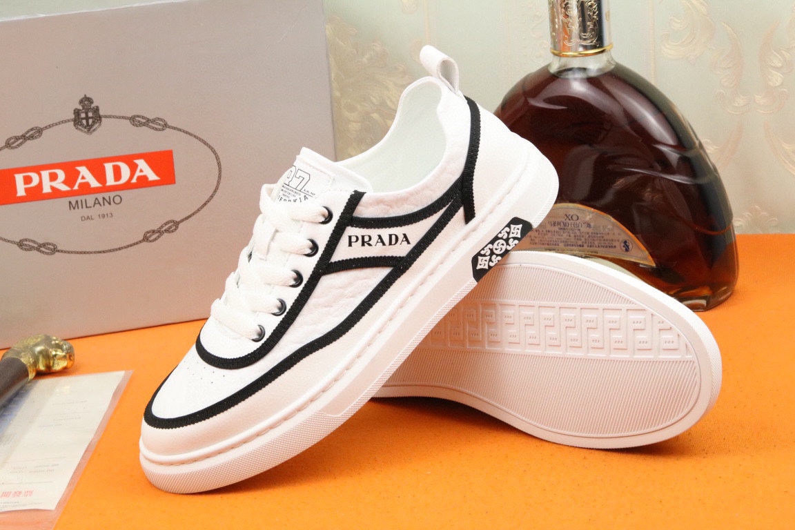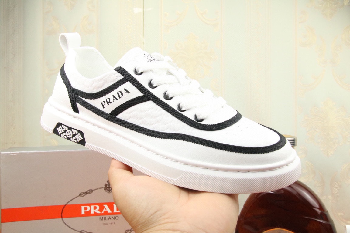 I5 高品质PRADA普拉达上市著名奢侈品牌,专柜同步更新,意大利男鞋时尚杂志季刊封面主推款鞋面采用意大利进口小牛皮,羊皮内里。原版防滑橡胶大底,上脚舒适有型。 细节无可挑剔。码数38-43
