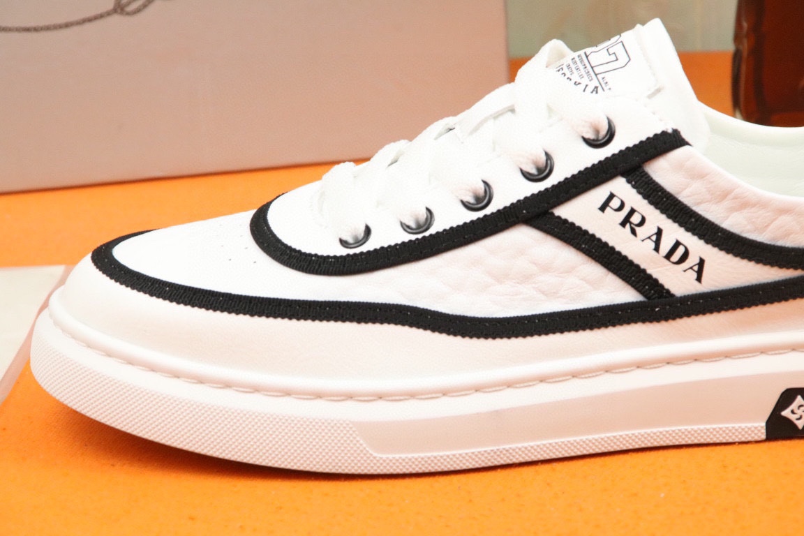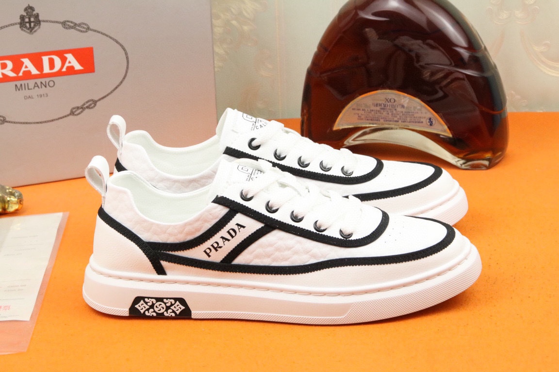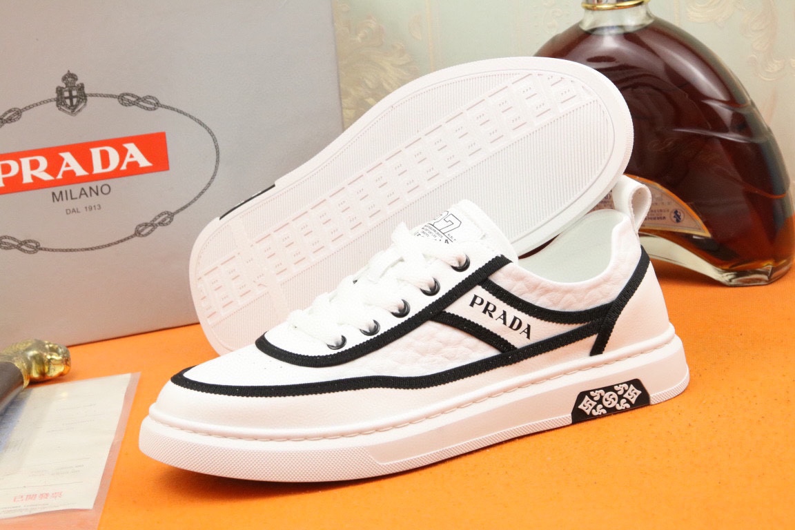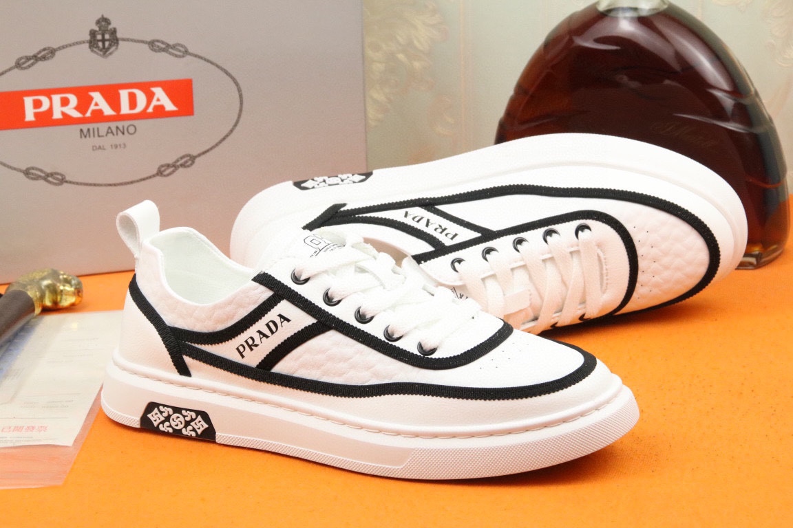 I5 高品质PRADA普拉达上市著名奢侈品牌,专柜同步更新,意大利男鞋时尚杂志季刊封面主推款鞋面采用意大利进口小牛皮,羊皮内里。原版防滑橡胶大底,上脚舒适有型。 细节无可挑剔。码数38-43