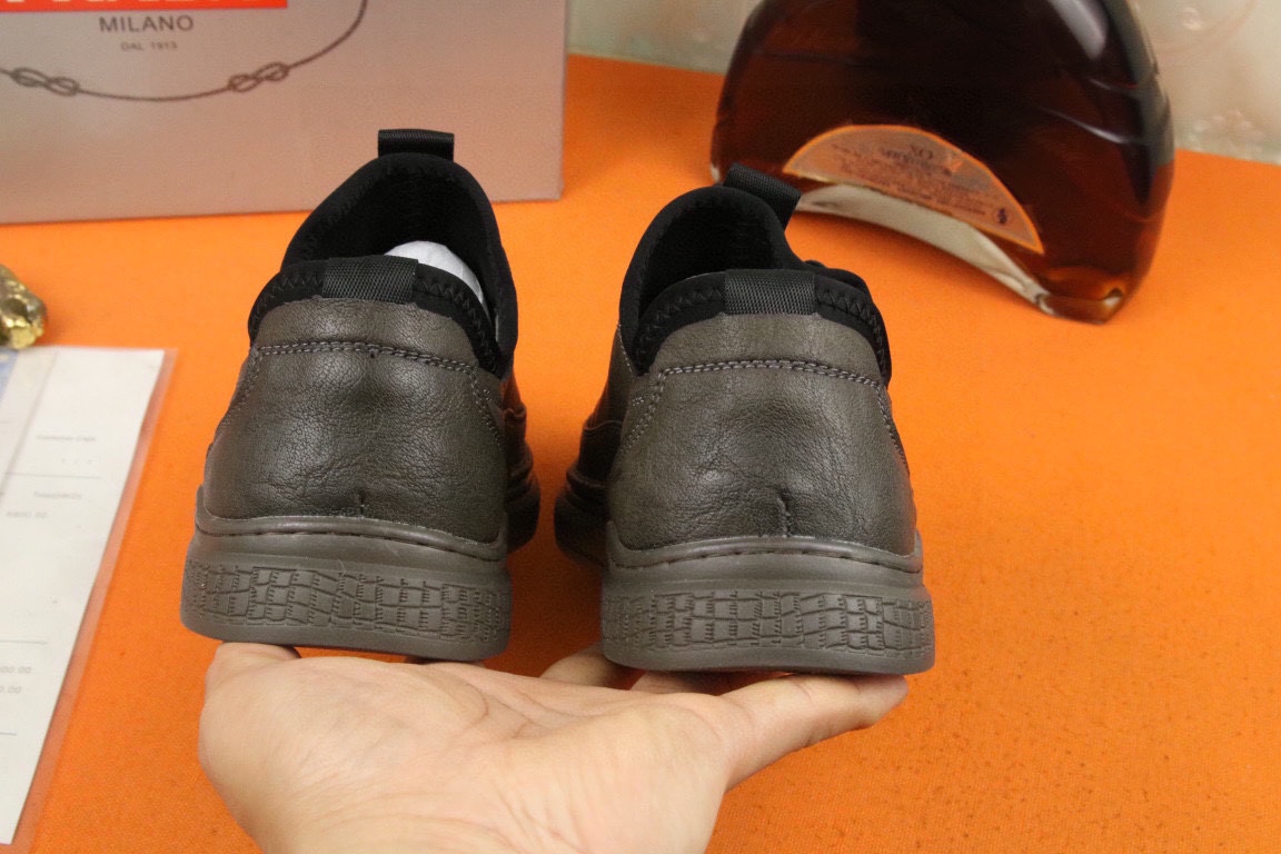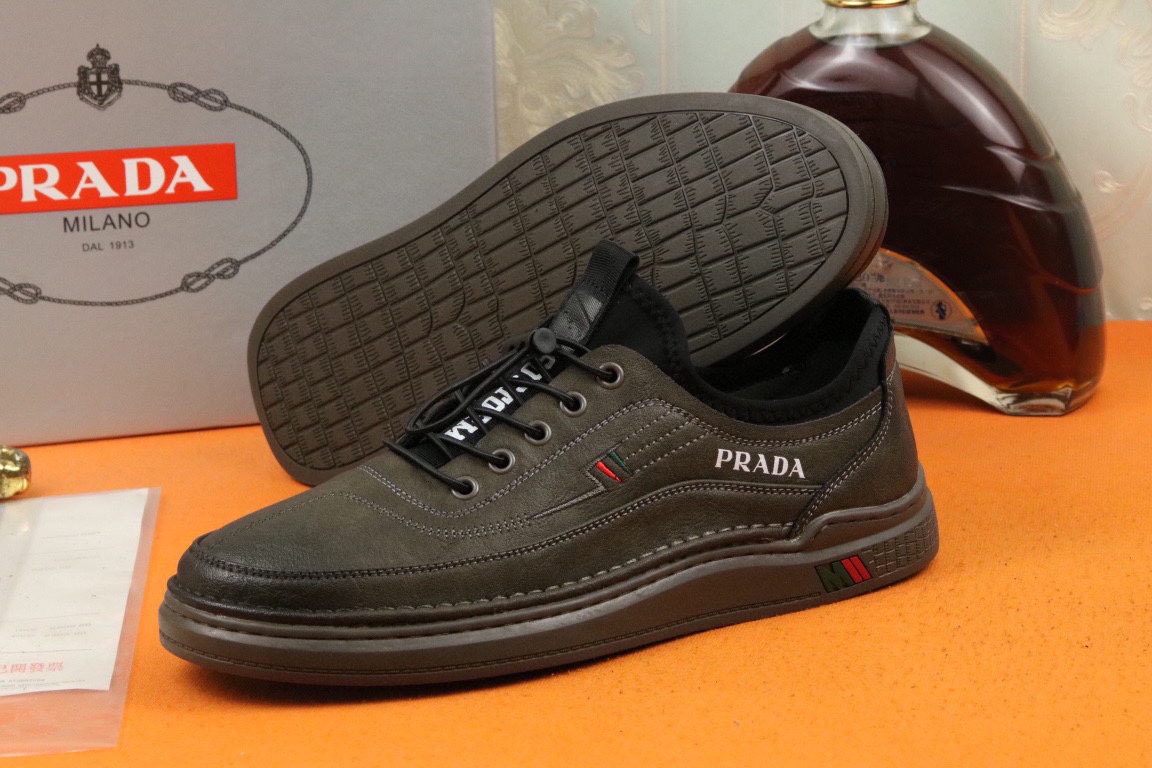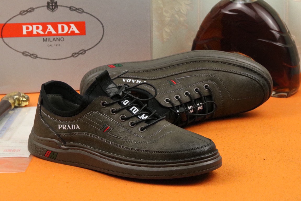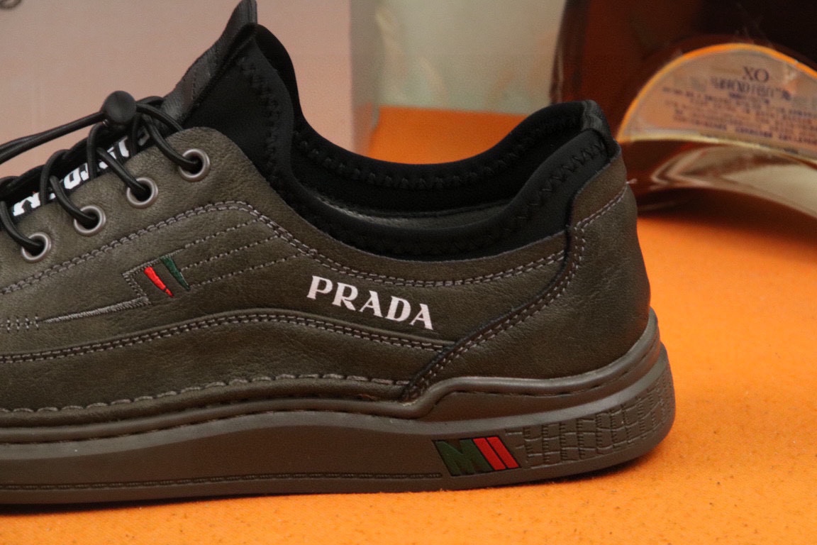 I5 高品质PRADA普拉达上市著名奢侈品牌,专柜同步更新,意大利男鞋时尚杂志季刊封面主推款鞋面采用意大利进口磨砂牛皮,猪皮内里。原版橡胶大底,上脚舒适有型。 细节无可挑剔。