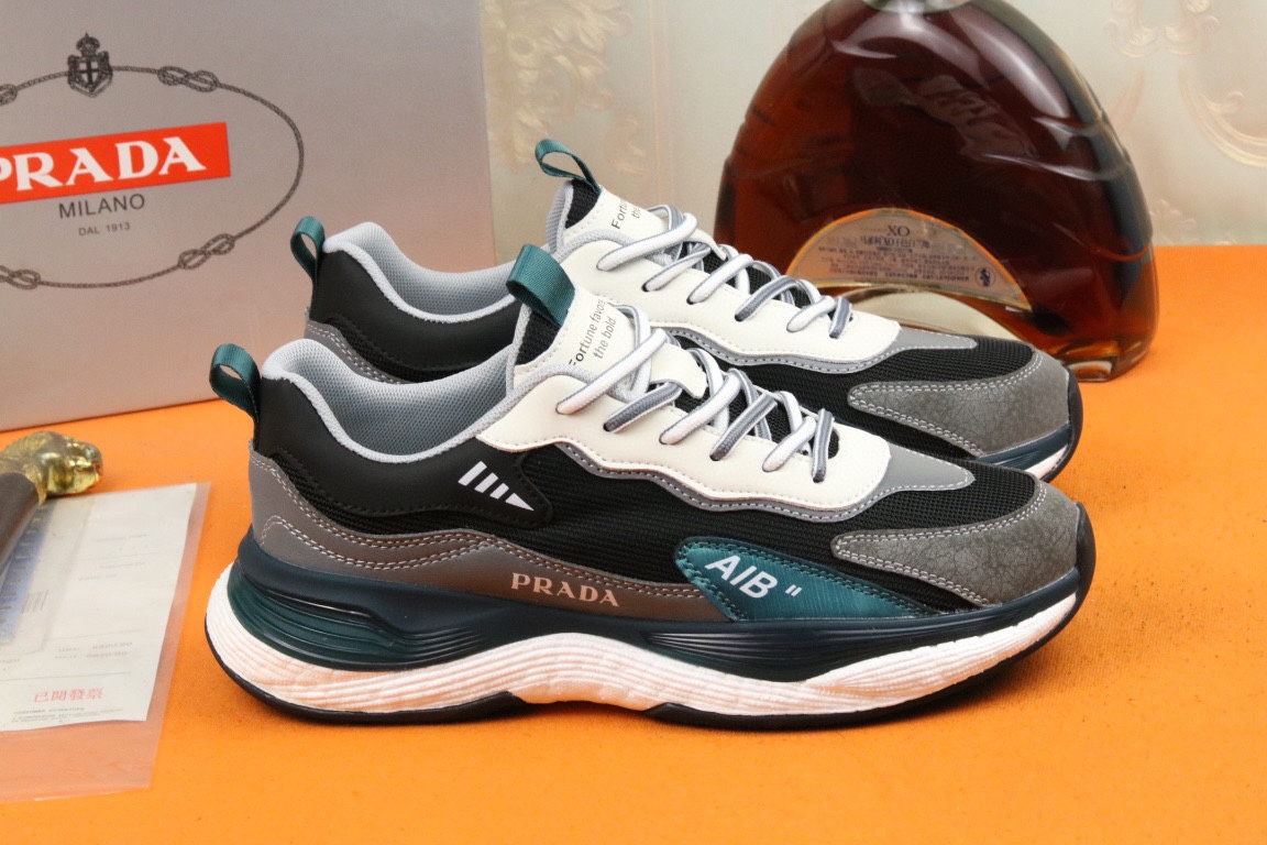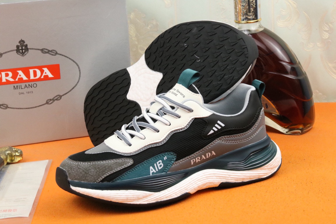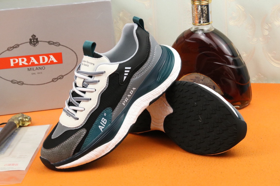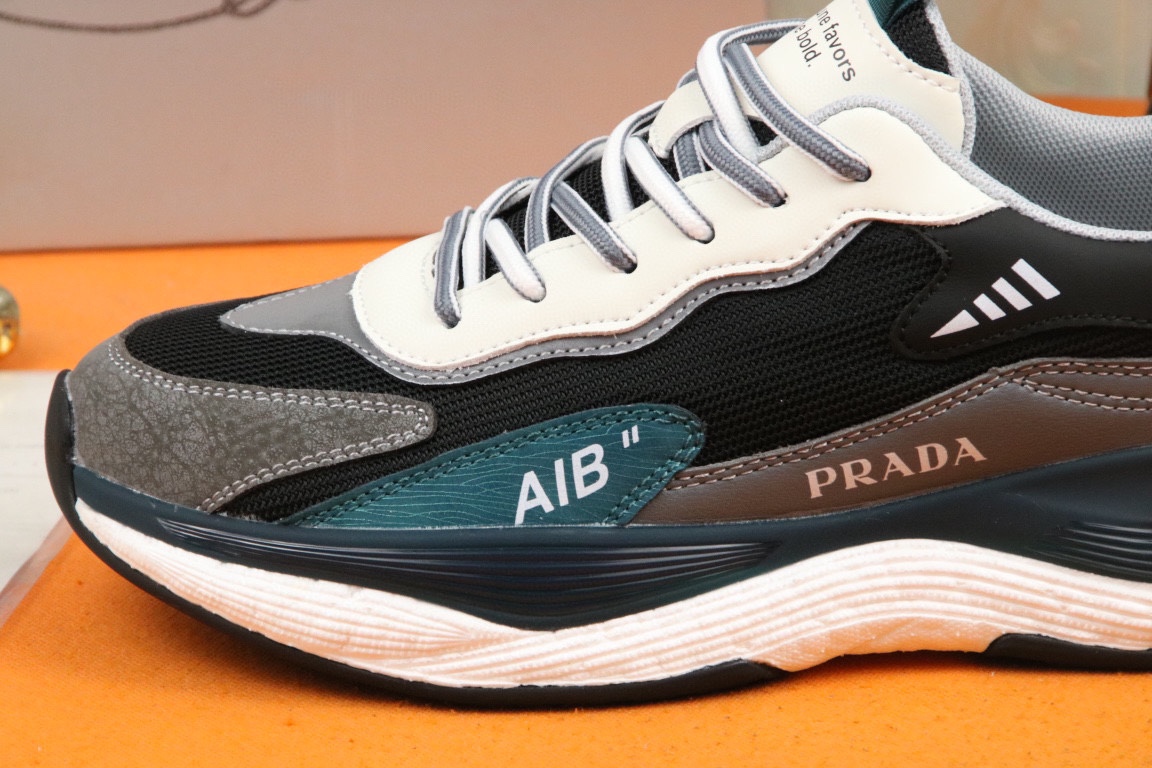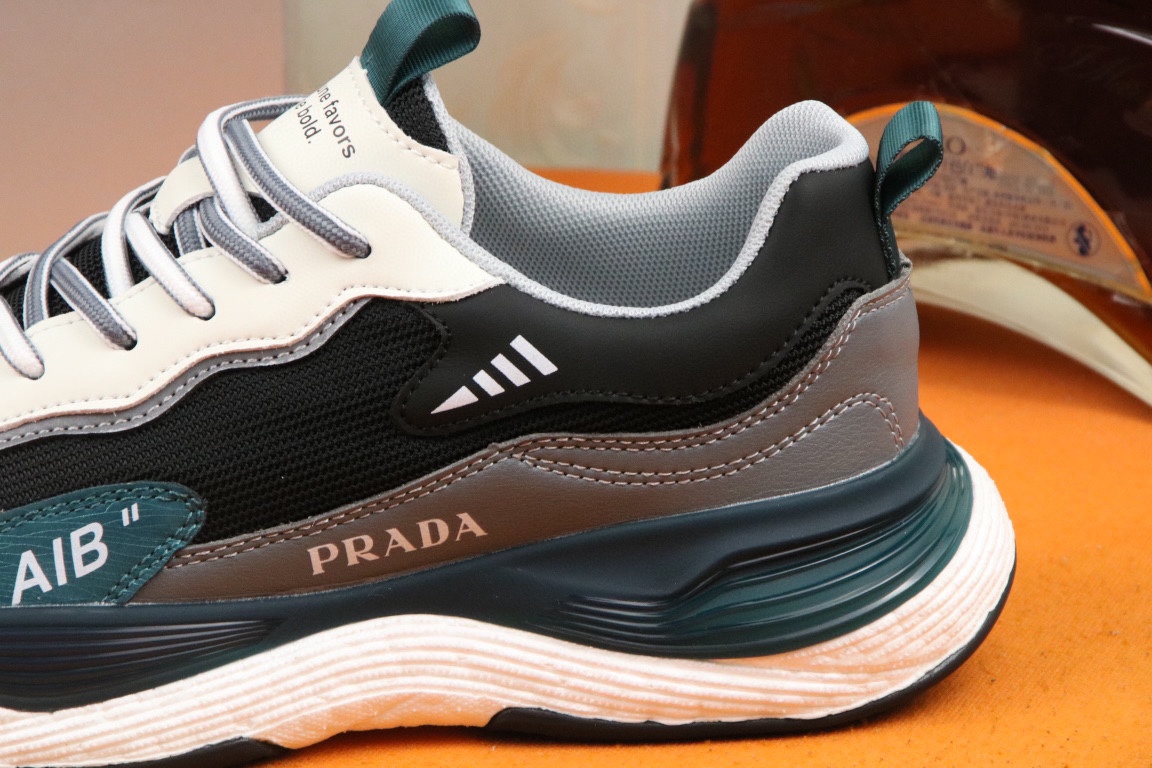 I5 高品质PRADA普拉达上市著名奢侈品牌,专柜同步更新,意大利男鞋时尚杂志季刊封面主推款鞋面采用意大利进口头层牛皮拼接网布制作,舒适透气内里。原版轻质发泡弹力大底,上脚舒适有型。 细节无可挑剔。