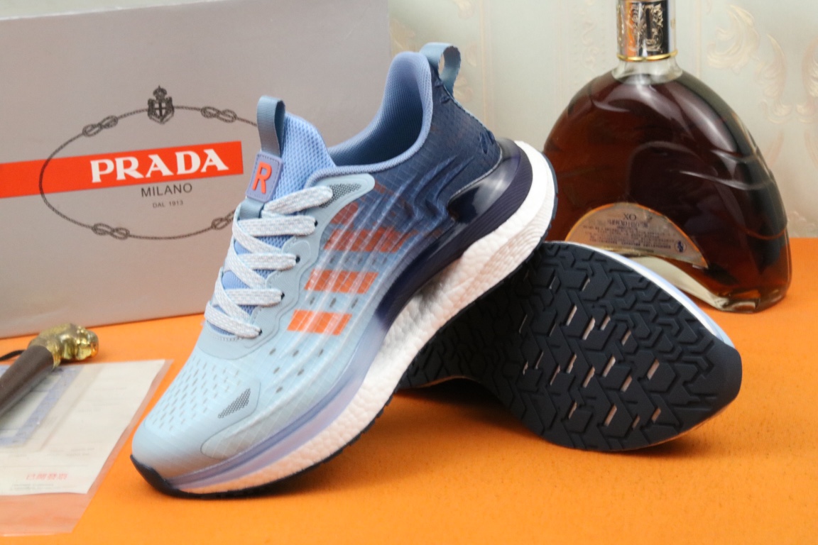 I5 高品质PRADA普拉达上市著名奢侈品牌,专柜同步更新,意大利男鞋时尚杂志季刊封面主推款鞋面采用意大利进口头层牛皮拼接冰丝网布面料制作,舒适透气内里。原版防滑运动大底,上脚舒适有型。 细节无可挑剔。