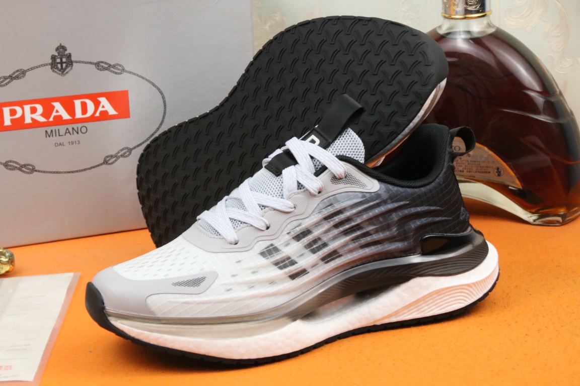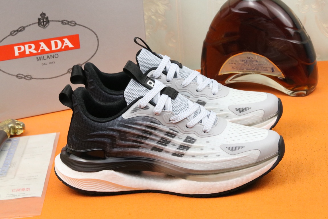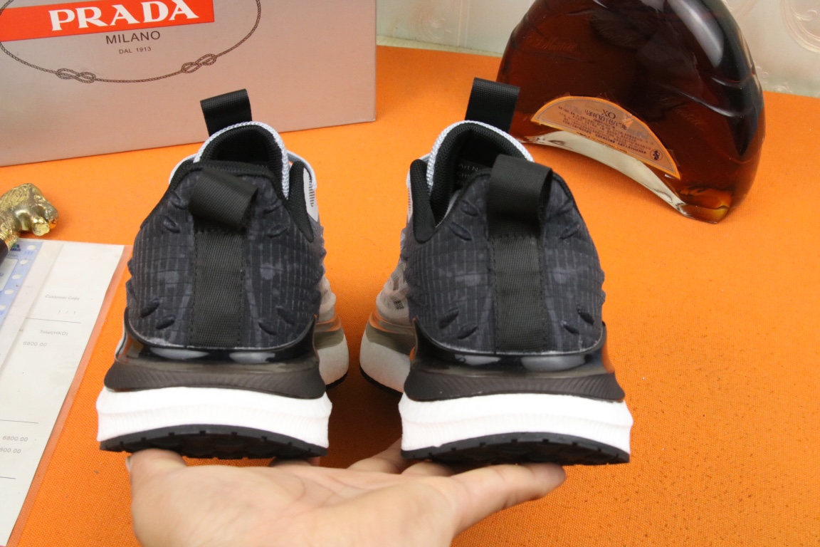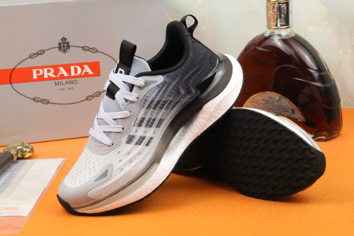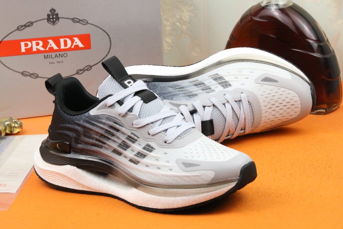 I5 高品质PRADA普拉达上市著名奢侈品牌,专柜同步更新,意大利男鞋时尚杂志季刊封面主推款鞋面采用意大利进口头层牛皮拼接冰丝网布面料制作,舒适透气内里。原版防滑运动大底,上脚舒适有型。 细节无可挑剔。码数38-43