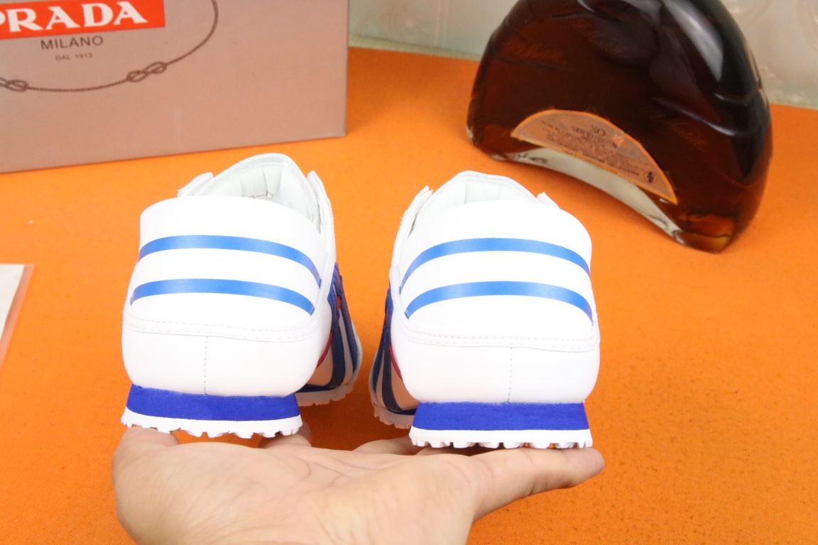 I5 高品质PRADA普拉达上市著名奢侈品牌,专柜同步更新,意大利男鞋时尚杂志季刊封面主推款鞋面采用意大利进口小牛皮,羊皮内里。原版防滑橡胶大底,上脚舒适有型。 细节无可挑剔。码数38-43